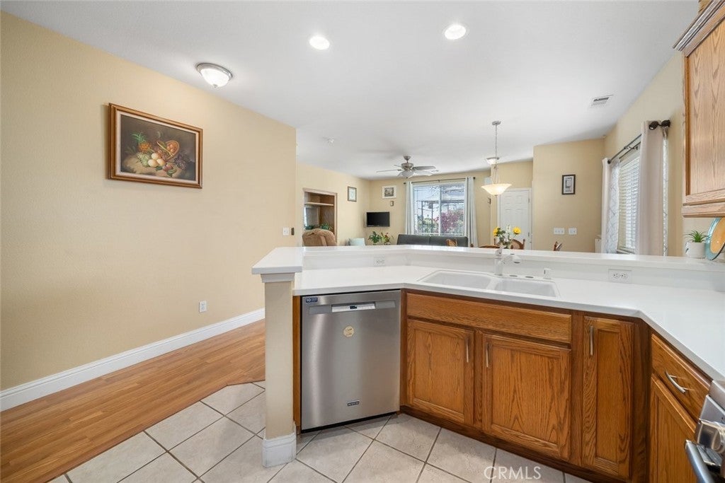 Breakfast Bar, Ceiling Fan(s), Recessed Lighting, Solid Surface Counters