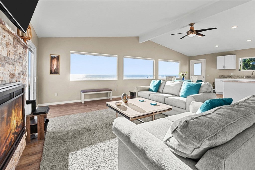 Discover the ultimate coastal lifestyle in this exclusive 'Front Row' home located on Morro Bay’s sought-after Beachcomber Drive. Perfectly positioned on a corner lot, this rare and exceptional 1,320 sq. ft. coastal retreat offers unobstructed, panoramic views of the Pacific Ocean and Morro Rock that will never be built out. Whether you are seeking a dream beach house, a low-maintenance second home, or a high-performing vacation rental, this property delivers the ultimate California lifestyle. Completely reimagined and updated in 2020, the home features a bright, open interior designed to maximize the stunning ocean scenery. Step inside to find durable, stylish ceramic tile flooring throughout, perfect for sandy toes and easy beach living. The layout includes two spacious bedrooms, and a bonus room for office or guests, with 1.75 beautifully appointed baths, offering both comfort and privacy for residents and guests alike. The outdoor living space is a true showstopper. Situated on a generous 7,405 sq. ft. lot, the property boasts professional hardscape and landscaping designed for relaxation and entertainment. Enjoy your morning coffee or evening sunsets from the expansive front patio, where the ocean breeze and crashing waves provide the perfect backdrop. The large backyard is an ultra-private haven extending your outdoor living possibilities. featuring high-quality synthetic grass for year-round greenery without the maintenance. Also features a two car garage and is future-proofed for efficiency and peace of mind, the home is equipped with a modern solar system and backup battery, ensuring energy independence and resilience.