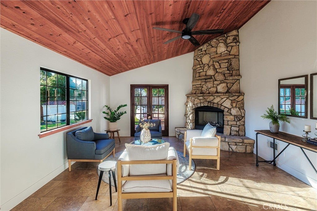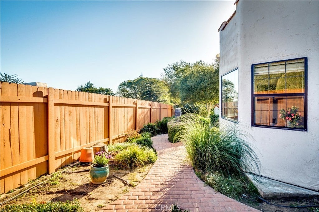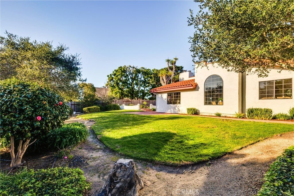 Experience the pinnacle of Santa Barbara Mission-style elegance in this stunning single-level estate, perfectly positioned on a rare, usable 1/2-acre corner lot. Boasting over 2,300 sq. ft. of sun-drenched living space, this home is situated in a highly desirable neighborhood near the prestigious Cypress Ridge Golf Course, offering a serene country feel with modern convenience and no HOA fees. The versatile floor plan features formal living and family rooms anchored by soaring vaulted wood ceilings and custom oversized windows. Abundant natural light pours through multiple skylights, beautifully illuminating the rich character of the Old World Fir wood flooring throughout. The updated kitchen is a chef’s delight, featuring a brand-new cooktop and a dedicated wine refrigerator. With three spacious bedrooms, two bathrooms, and a private office retreat, the home offers a seamless balance of work and relaxation. The exterior is a true private oasis, featuring an expansive level yard, manicured landscaping, and multiple functional outbuildings. After a day on the nearby greens, unwind in your own private sauna. This property represents a rare opportunity to own a sophisticated, light-filled retreat that perfectly blends architectural grandeur with a quiet, coastal-country lifestyle.