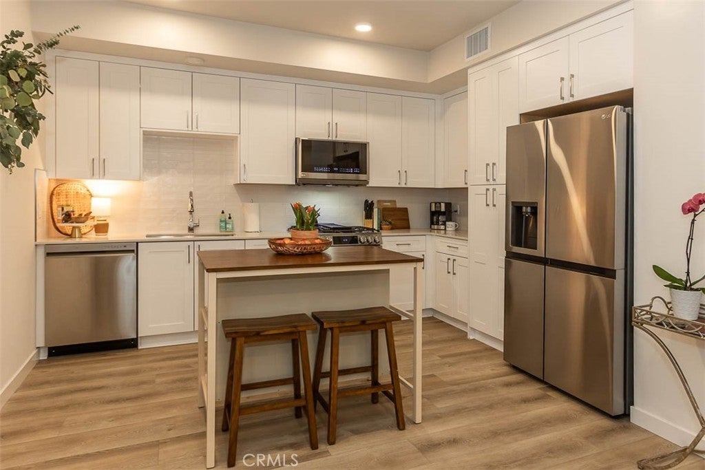 Experience elevated living in this stunning, modern 2-bedroom, 2-bathroom loft in the highly sought-after Victoria Crossing, perfectly situated in the heart of San Luis Obispo. This almost-new condo offers over 1,200 square feet of thoughtfully designed living space, featuring an open-concept layout with 9-foot ceilings, recessed lighting, built- in cabinetry, and beautiful wood-plank flooring throughout. The sleek, contemporary kitchen is a standout, complete with quartz countertops, high-end stainless steel appliances, soft-close cabinetry, a stainless undermount sink, and an island with bar seating. The kitchen flows seamlessly into the generous dining and living areas—ideal for entertaining or relaxing in style. Both bedrooms are generously sized. The primary suite features dual closets and a private en-suite bathroom with a designer tile shower, while the large guest bedroom opens to a deck showcasing beautiful views of the city and surrounding mountains. Additional highlights include a stackable washer/dryer closet, designated parking space, and the option to purchase the home fully furnished with nearly new modern furnishings featuring subtle mid-century modern style. Located just a few blocks from downtown, this home places you steps away from restaurants, coffee shops, shopping, hiking trails, and walking paths, offering the perfect balance of urban convenience and outdoor lifestyle. This is San Luis Obispo living at its finest—an exceptional opportunity to own an almost-new, beautifully designed condo in one of the Central Coast’s most desirable locations.