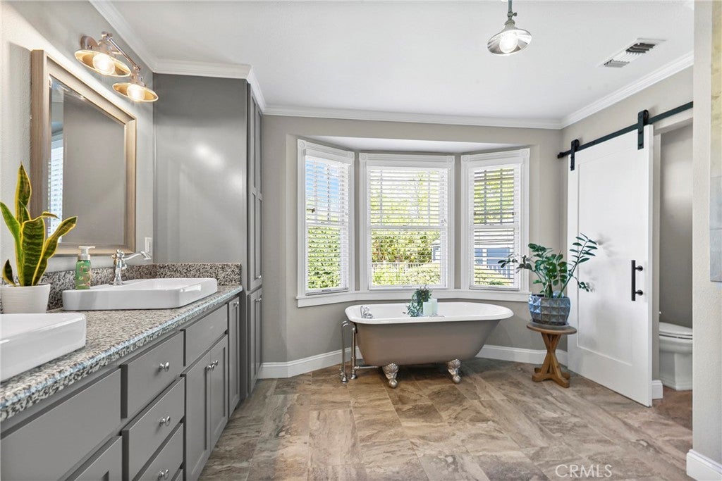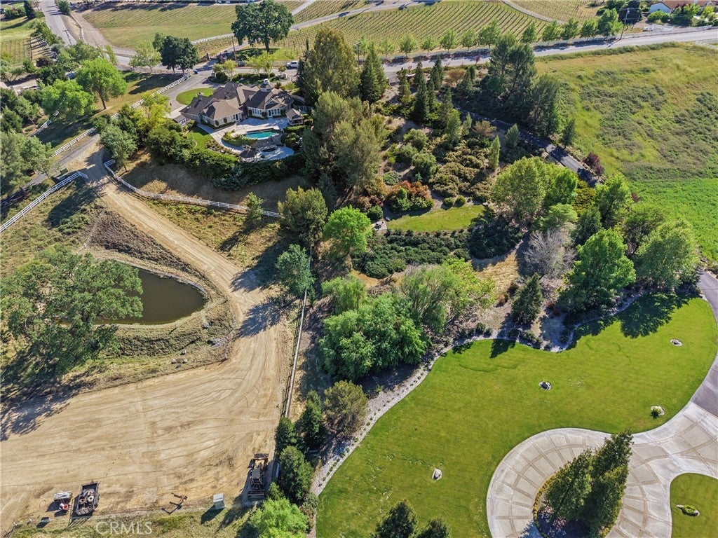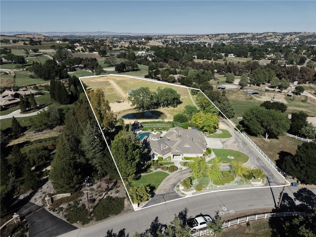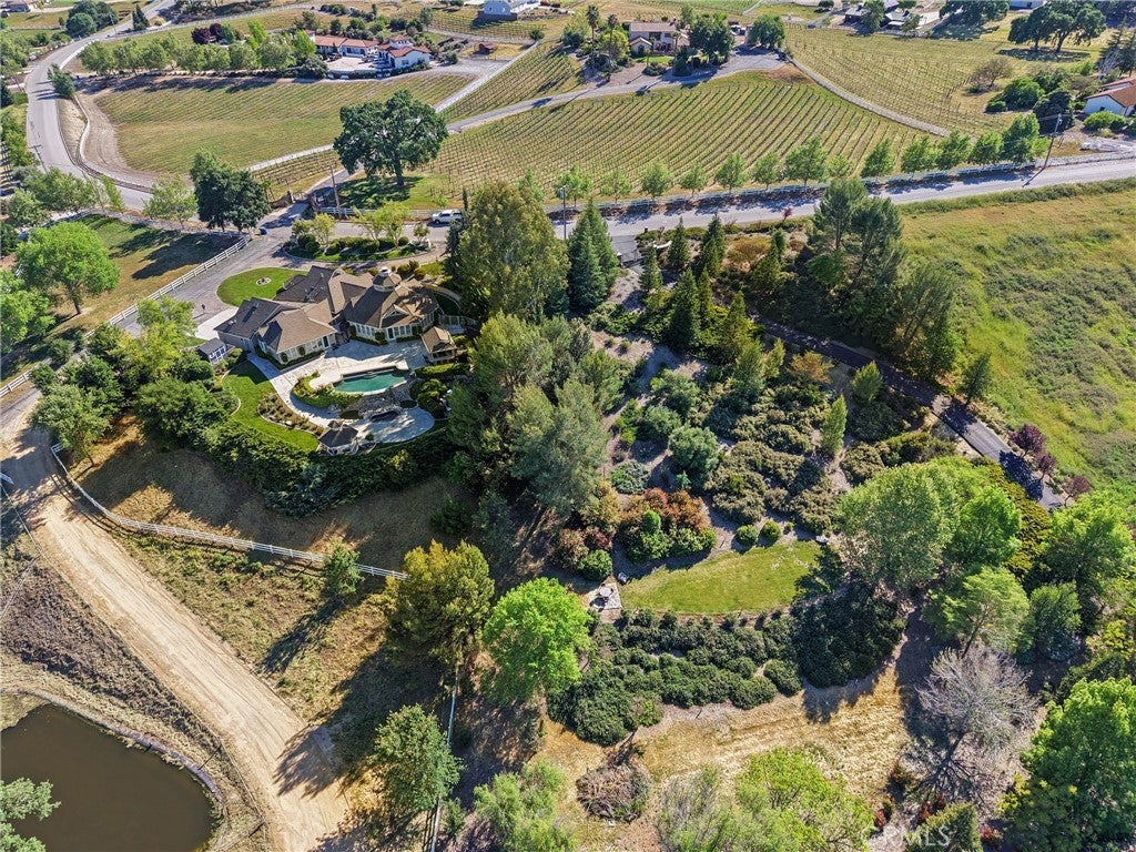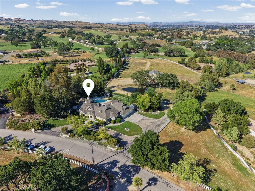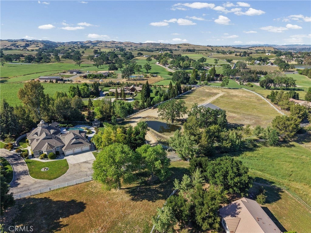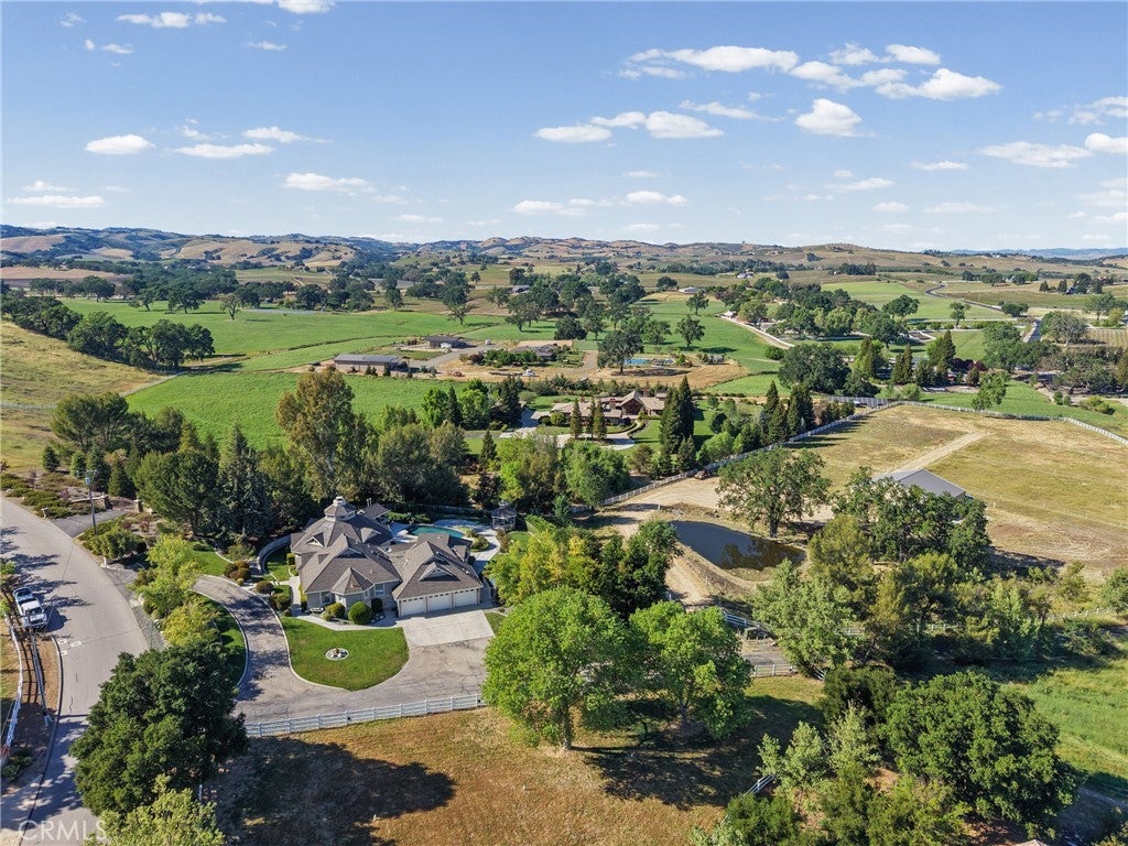 Located in the highly sought-after Peterson Ranch community of west Templeton, this exceptional 5.5 acre estate offers a rare blend of privacy, scale, and sweeping vineyard-studded views. The beautifully newly remodeled 3,390± sq ft custom home features 4 bedrooms and 5 bathrooms, with an open, light-filled design that captures the surrounding landscape from nearly every room. A dramatic rotunda-style great room with soaring wood-beamed ceilings and a statement fireplace anchors the home, seamlessly connecting formal living and dining spaces to the gourmet kitchen; perfect for both everyday living and entertaining. The luxurious primary suite offers a private retreat with a sitting area/home office, dual walk-in closets, and a spa-inspired ensuite bath complete with a freestanding clawfoot soaking tub and dual vanities. Additional amenities include a wine cellar/butler's pantry, indoor laundry room, three-car garage, and a versatile loft space ideal as a private retreat, lounge, creative studio, or additional storage. Designed for true indoor-outdoor living, the property features a resort-style pool and spa with vanishing edge waterfall, a 150 sq ft pool house with outdoor cooking area and gazebo, and expansive entertaining spaces set against breathtaking Central Coast views. The lower acreage offers exceptional versatility with a man-made irrigation pond, a new 3,000 sq ft barn/shop built in 2022 with A/C, plumbing and electricity ideal for hobbyists, and ample room for agricultural or equestrian use. Served by TCSD water plus a private well for irrigation, and surrounded by landscaped, fenced grounds, this property embodies refined wine country living along the Templeton Gap. This stunning custom home is an absolute must see!