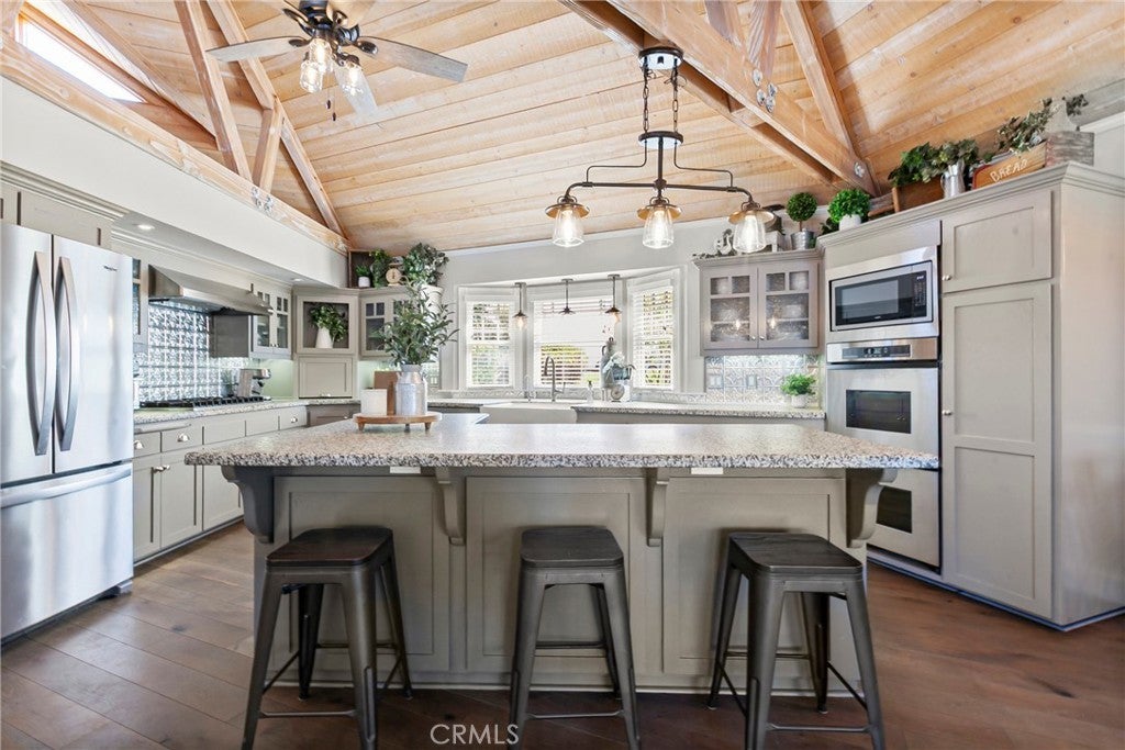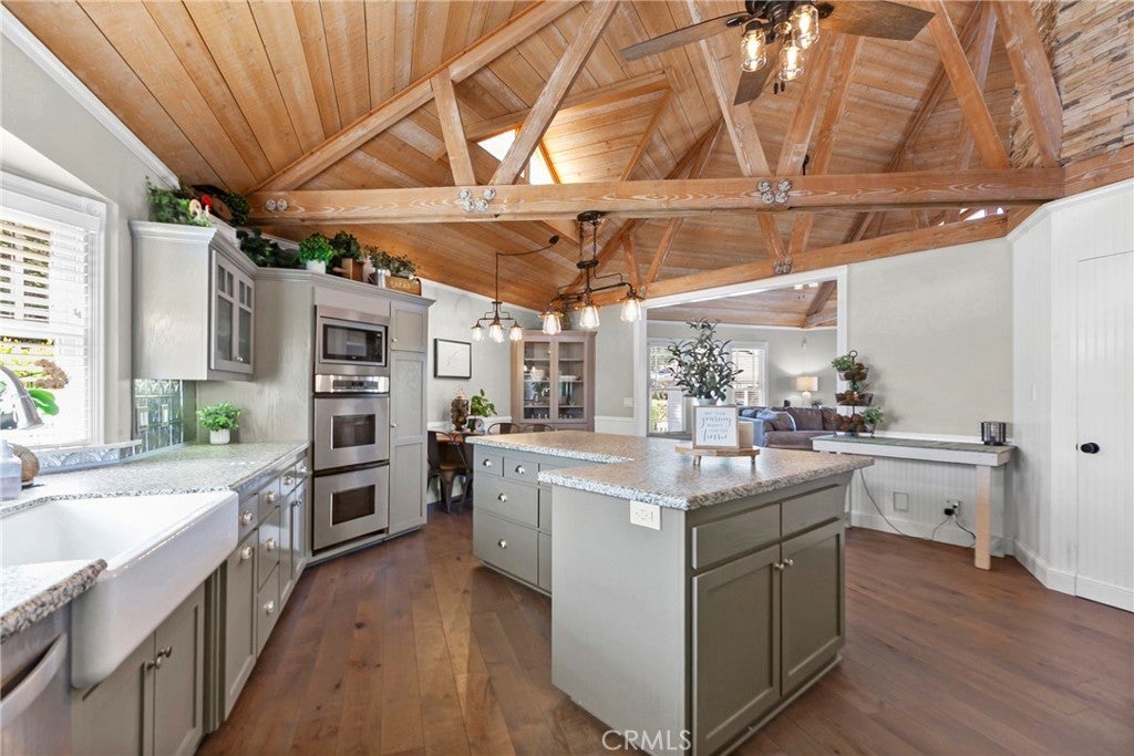 Beamed Ceilings, Breakfast Area, Ceiling Fan(s), Cathedral Ceiling(s), Separate/Formal Dining Room, Eat-in Kitchen, Granite Counters, High Ceilings, Pantry, Recessed Lighting, Storage, All Bedrooms Down, Bedroom on Main Level, Loft, Main Level Primary, Primary Suite, Utility Room, Walk-In Pantry, Wine Cellar, Country Kitchen, Entrance Foyer