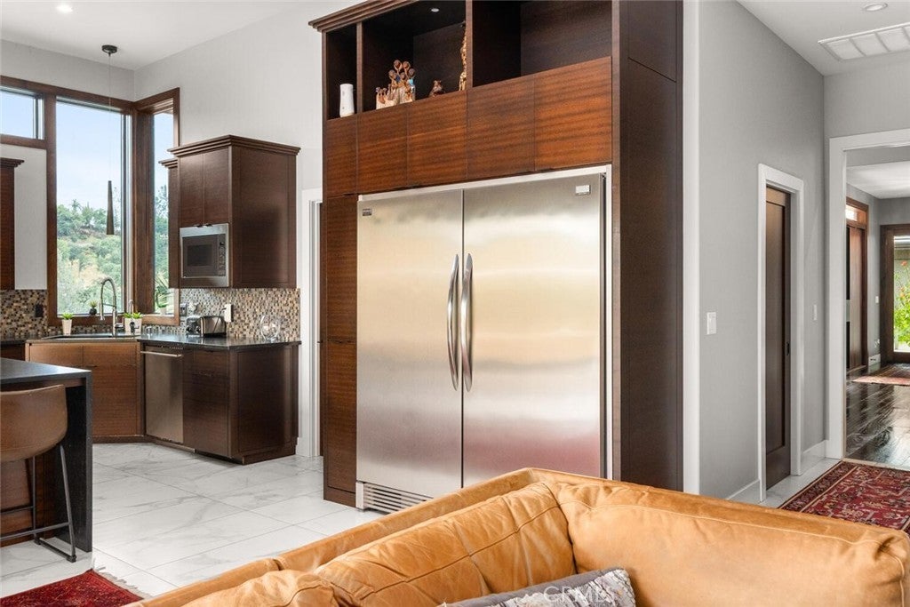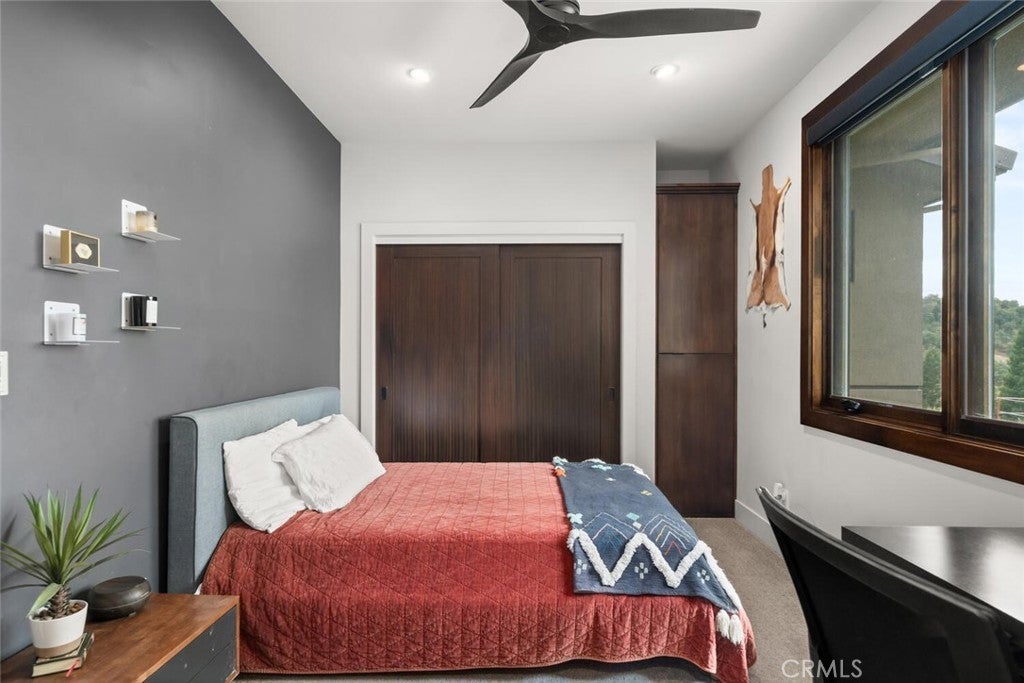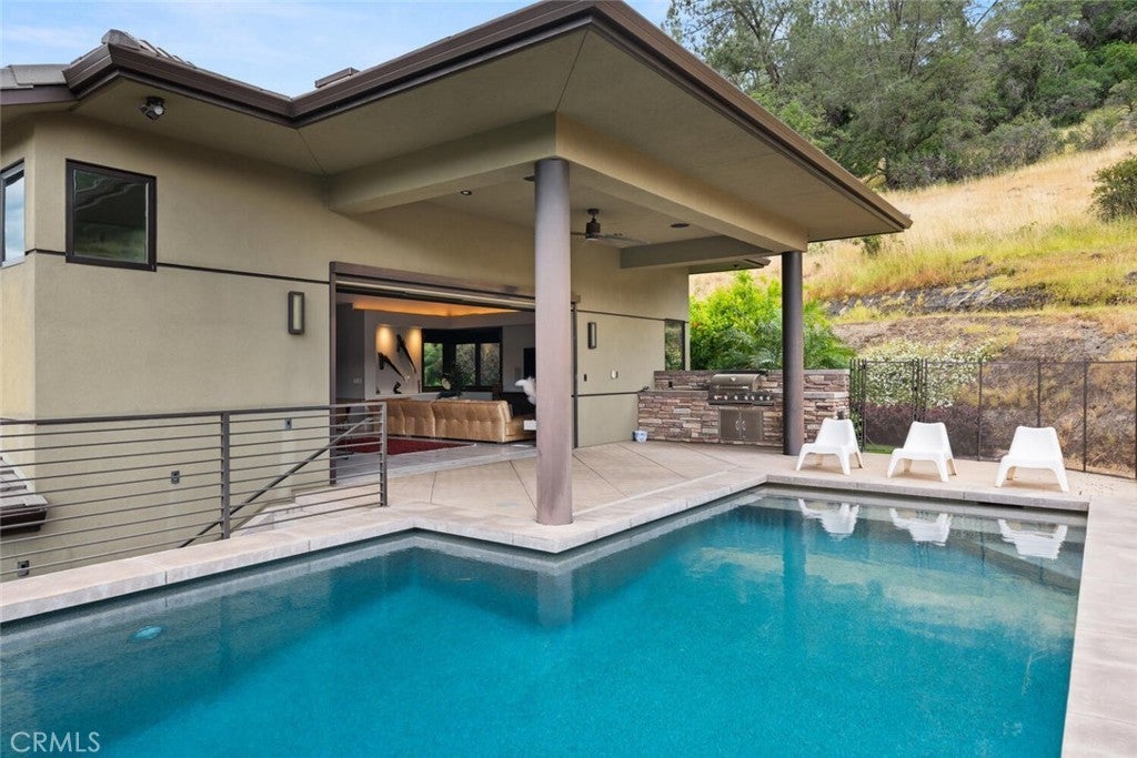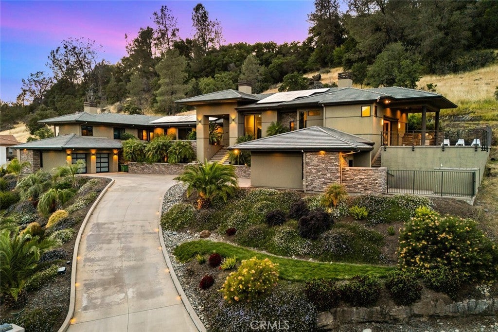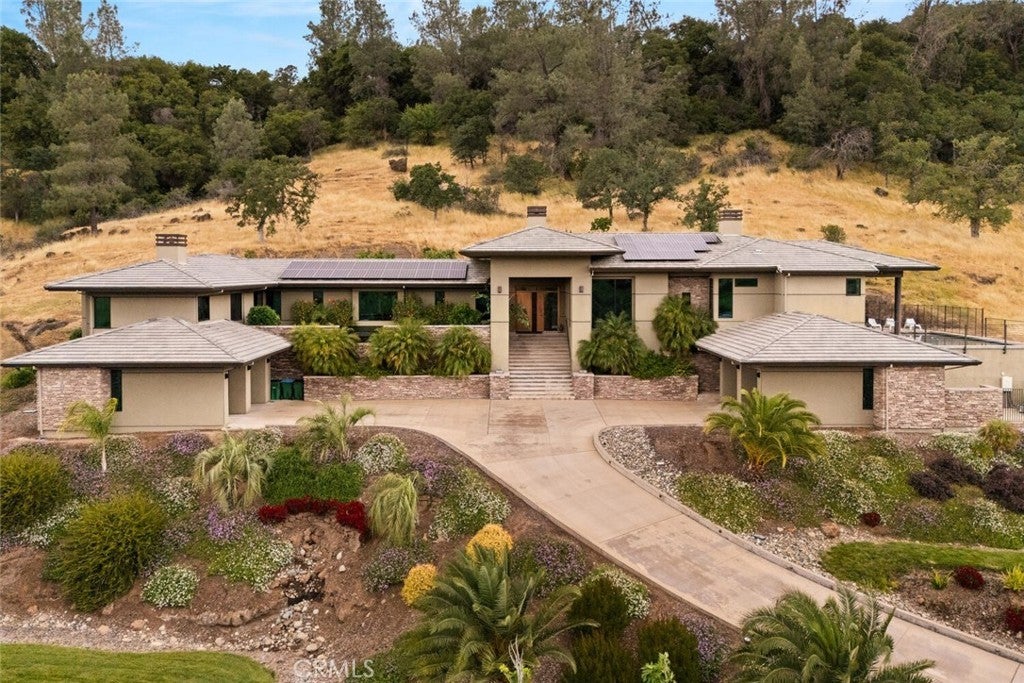 Modern luxury, intentional design, and unmatched views—welcome to 3386 Canyon Oaks Terrace, one of the most spectacular homes in Chico and Canyon Oaks Country Club. Step through the striking pivot front door and into a thoughtfully designed interior featuring walnut kitchen cabinetry, high-end stainless appliances, and Sierra Pacific wood-clad windows that flood the home with natural light. The centerpiece of the living space is a sleek, cold-rolled steel fireplace facade with a precast white concrete hearth—modern yet warm. An entertainer’s dream, the home boasts an outdoor kitchen just steps from the pool, a Weiland lift-and-slide door for seamless indoor-outdoor flow, and a front-facing electronic ignition fire pit where you can take in show-stopping sunsets over the course. Inside, let the guests pamper themselves in the spa-like hall bathroom with a dramatic backlit onyx vanity with access into the guest room or hallway. The private primary suite is its own retreat, complete with a two-way fireplace and a flexible second room perfect for a home office, gym, or library. Custom built with purpose and precision, this residence was thoughtfully designed by the sellers to raise their family of five. A completely separate wing of the home offers privacy and functionality, featuring three bedrooms, two bathrooms, and a shared common room—ideal for kids, guests, or multigenerational living. Additional highlights include an elevator with basement storage and rotating closet carousel, four-car garage with electric vehicle charger, owned solar (with just a $5,000 annual true-up), and solar pool heating. Adjacent to the home, the expansive open space is permanently protected and will never be built on—ensuring unobstructed, panoramic views and lasting privacy with no direct neighbors. This is more than a home—it’s a legacy property designed for living, entertaining, and enjoying the best of Canyon Oaks Country Club.