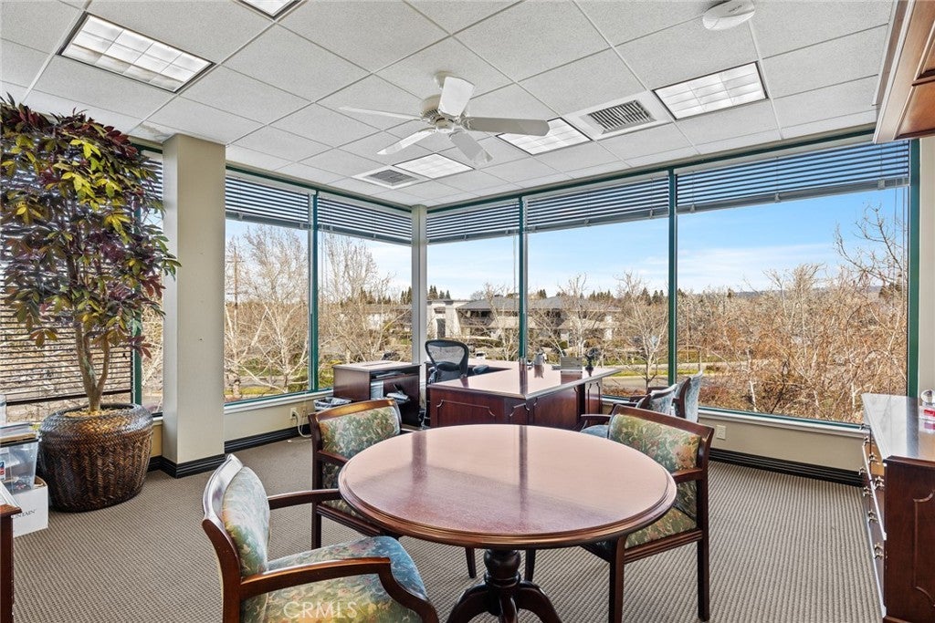 Class A professional office space, in the beautiful WatersEdge Building, located on the lake at Cal Park. This second floor suite, with elevator access, includes; a built in reception desk with waiting area, a conference room, two large private offices, with a built in work station, plus a huge executive corner office with 2 walls of glass, a storage/IT room, and secondary workstation area that could potentially be a converted into a break room, if needed. The suite also Includes the use of two under ground/building secured garage parking spaces! The Water's Edge building is truly one of the nicest office buildings north of Sacramento, with its grand entry, elevator access to the underground garage, beautiful mature tress/landscaping, and spacious grounds with ample parking.