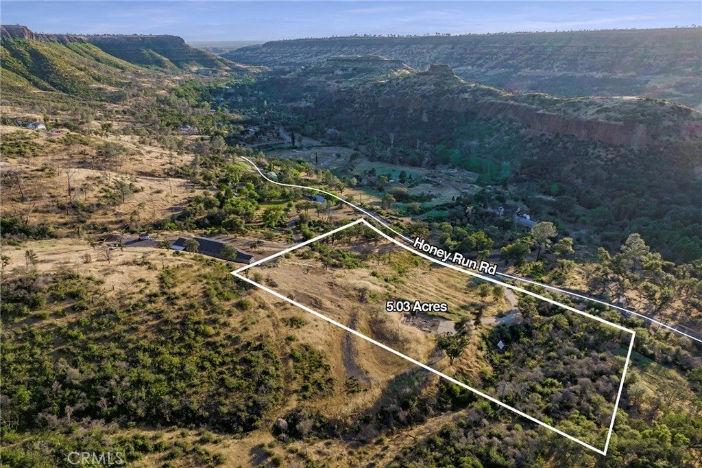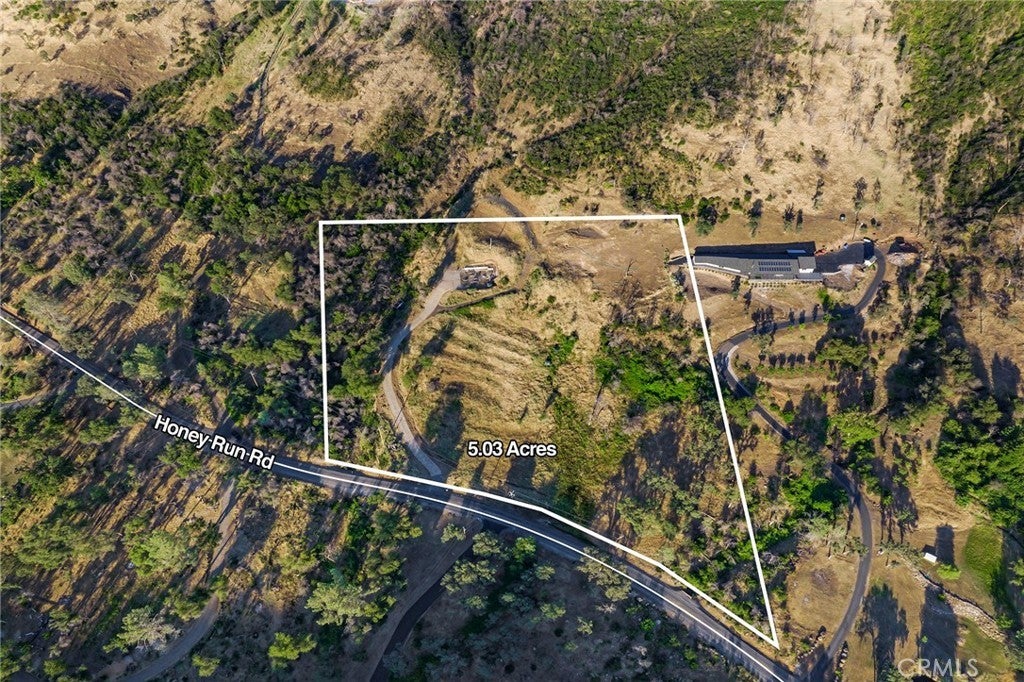 AWESOME CLEARED 5.03 ACRE LOT WITH STUNNING VIEWS OVER LOOKING BUTTE CREEK CANYON AND THE VALLEY. PROPERTY HAD 2 HOMES TOTALLing 4151 SQFT, TWO SEPTIC TANKS. HAS A WELL AS WELL AS A NATURAL SPRING TOWARDS TOP OF PROPERTY WAS USED AS A GRAVITY FEED WATER SYSTEM BY PRIOR OWNER. HOLDING TANKS HAVE BEEN REMOVED AS PART OF DEBRIS CLEAN UP BUT CONCRETE PADS FOR WATER TANKS ARE STILL IN PLACE. PAVED DRIVEWAY IS STILL IN PLACE. FOUNDATION FROM ONE HOME IS STILL IN PLACE. BEAUTIFUL AND PRIVATE YET CLOSE TO CHICO AND PARADISE. GRAPES and BERRIES LOVE THE SOIL AND IT'S SLOPES--HOBBY VINYARD PERHAPS? NO STRUCTURES REMAIN ON THE PROPERTY. THE SEPTIC AND WELL INSPECTION AND TEST ARE ON FILE FROM A YEAR OR SO AGO.