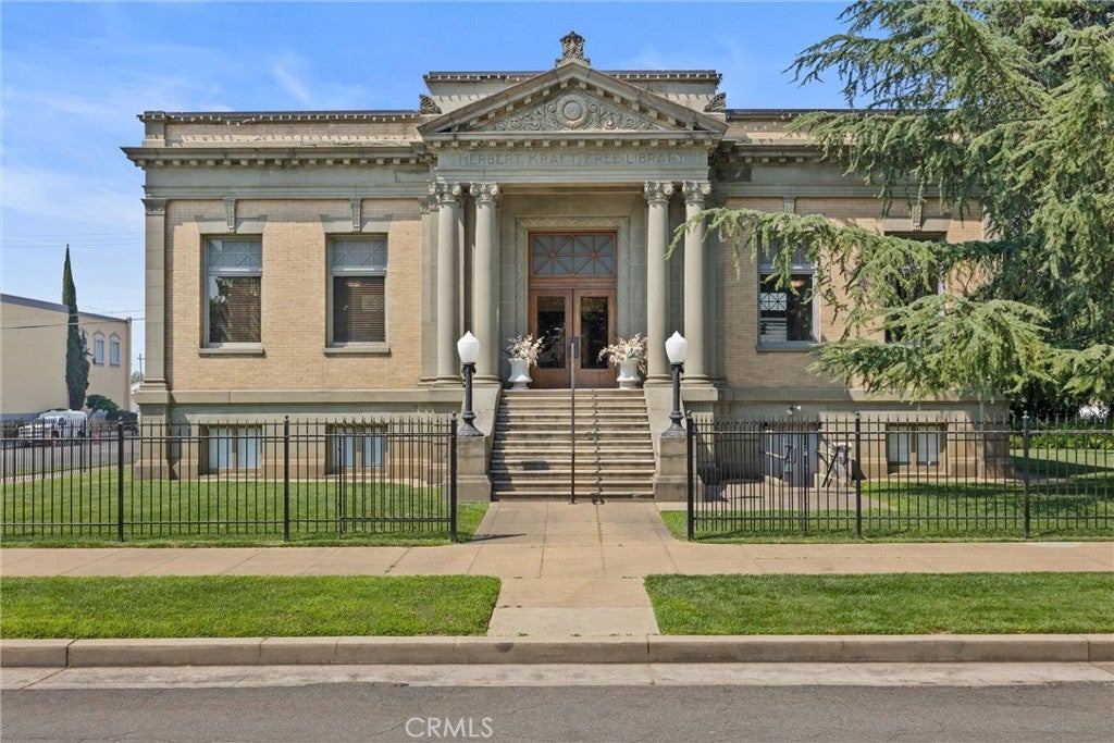 Discover an architectural gem nestled in the heart of Red Bluff: The Kraft Memorial Free Library building. This meticulously preserved building is not just a stunning wedding and event center, it's a symbol of the city’s commitment to history and community, cataloged on the National Register of Historic Places. Constructed in the resplendent Classic Revival Style in 1909, it showcases the timeless grace and elegant characteristics of the period. The grandeur of its design is highlighted by exquisite oak woodwork, an enormous stained-glass piece in the rotunda, and majestic fireplaces that whisper stories of the past. Visitors are greeted by an impressive grand staircase that sets the tone for the extraordinary design throughout. Gorgeous pillars and sophisticated crown molding showcase meticulous craftsmanship. The space is adorned with resplendent windows that allow natural light to flood in. The warmth of Douglas Fir flooring and the intricately carved stone details stand as a testament to the exceptional artistry of renowned architect Franklin Pierce Burnham, who envisioned this remarkable project from inception. The building is enveloped by historic gardens that feature a rich variety of flora. Centuries-old cedars, olive trees, and Douglas Firs create a natural canopy, providing an incredible, serene setting for photo shoots, receptions, and community gatherings. Rock paths meander through the under-plantings of Japanese Maples, hydrangeas, evergreens, and perennials, ensuring that visitors can appreciate vibrant seasonal changes. The Kraft Memorial Free Library stands as a cornerstone of the Victorian district, embodying a legacy of educational and cultural significance for Red Bluff. For those seeking not just a property but an opportunity to own a piece of history, this building represents a unique investment in the past, perfectly poised for a future filled with potential. The possibilities are as boundless as the storied history it encompasses. Don’t miss the chance to become a steward of this remarkable architectural treasure.
