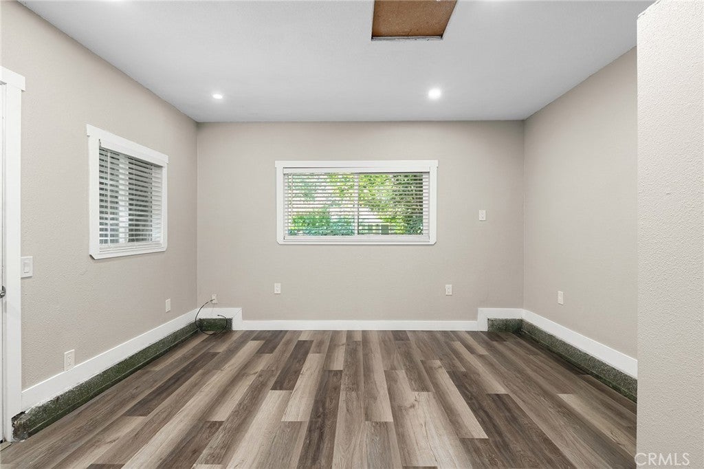 Beautifully Updated Home Near Chico State – Ideal for Investors who want a low maintenance property with appealing, high quality improvements! This charming 4-bedroom, 2-bathroom home sits on a spacious and private 0.3-acre lot just minutes from Chico State, making it an ideal choice for investors or anyone seeking to live near campus. The lot has potential for an easy lot spilt to create a second parcel with its own alley access - enjoy it as is or consider creating an ADU just like the next door neighbor did. In 2022, the home underwent a total remodel: Exterior updates included a new roof, cement fiber board siding, and fresh exterior paint, enhancing both curb appeal and long-term durability. Inside, the converted garage serves as the fourth bedroom with its own private entrance—perfect for guests, roommates, or generating additional rental income. Luxury vinyl plank flooring runs throughout the living areas and bedrooms, offering both modern style and easy maintenance. The inviting living room features a cozy seating area beneath a large picture window, creating the perfect space to relax. Adjacent to the living room, the dining area boasts a rustic wood plank accent wall that adds warmth and charm. The beautifully updated kitchen includes quartz countertops, a glass subway tile backsplash, white shaker-style cabinetry, and stainless steel appliances—everything you need in a functional and stylish space. The guest bathroom has been thoughtfully remodeled with tile flooring, a double-sink vanity topped with marble, stylish accent walls, and a tub/shower combo. Down the hall, you'll find two well-sized guest bedrooms and a lovely primary suite. The en-suite bathroom offers a newer walk-in tile shower, tile backsplash that matches the flooring, and a wood accent wall that adds character. Additional updates include new upgraded electrical wiring and windows. With designer touches, thoughtful improvements throughout, the potential for a lot split and/or ADU, and with its unbeatable location—just minutes from Chico State, shopping, restaurants, and more—this home is a rare find!