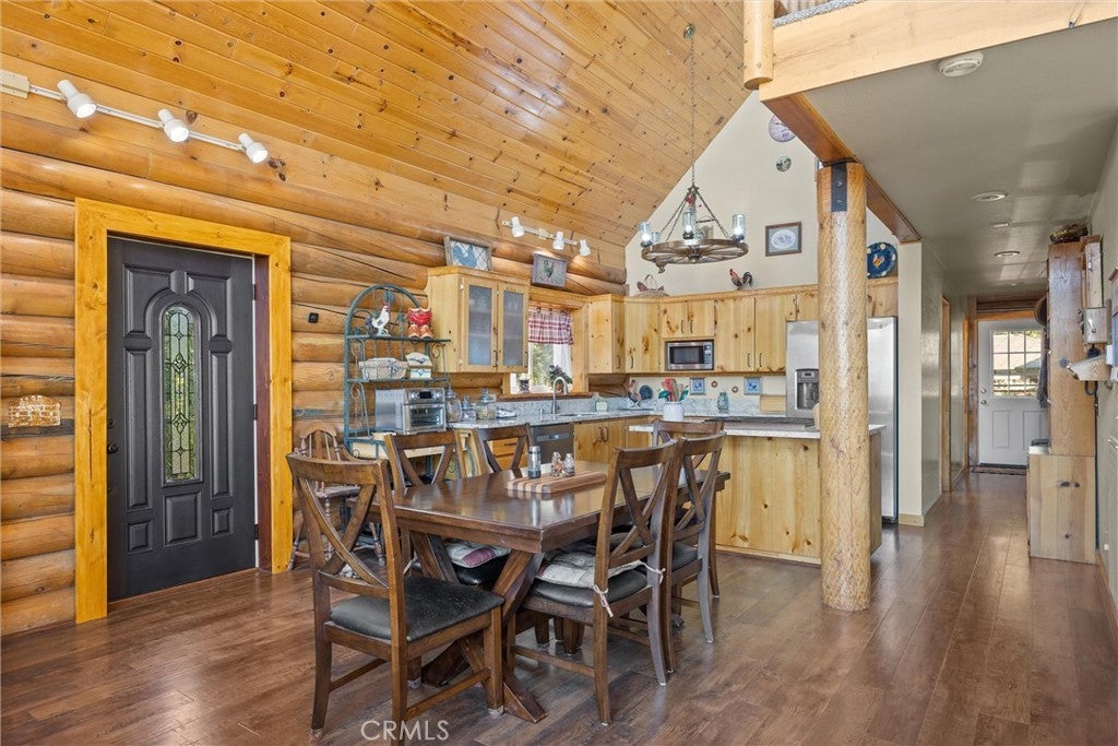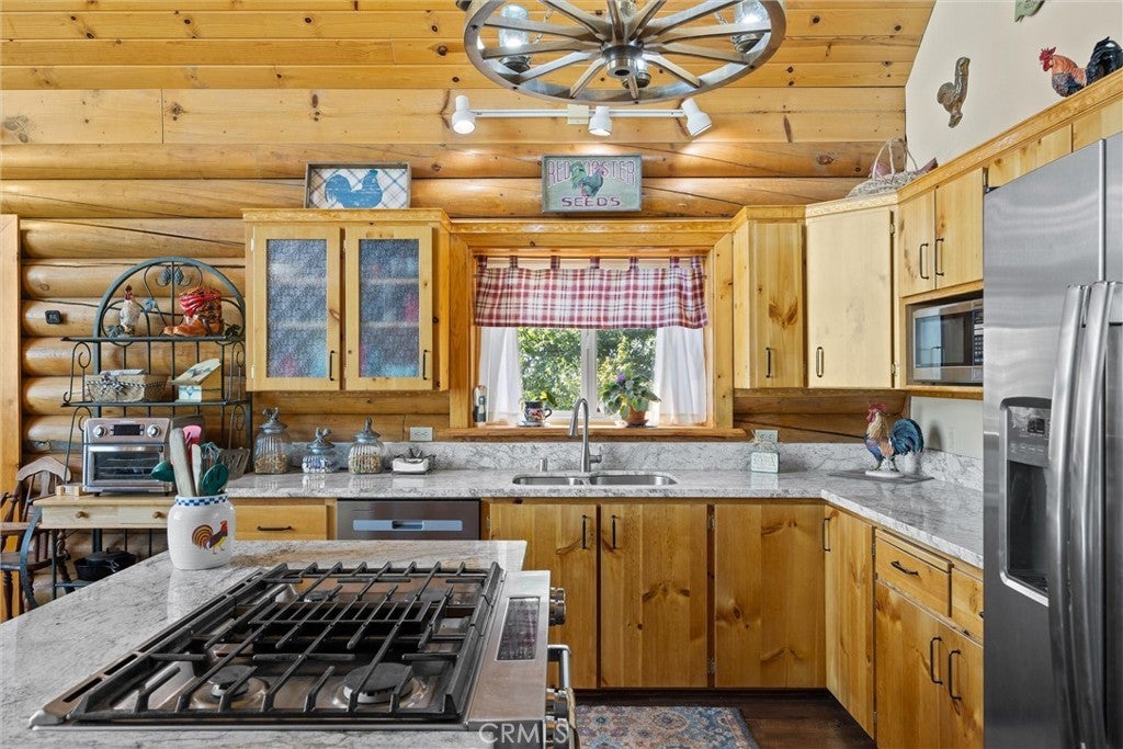 Fall in love with the breathtaking view, and experience the ultimate mountain retreat with this stunning, custom-built log home. Offering a unique blend of rustic charm and modern convenience, this fully fenced 5 acre property boasts a large shop, owned solar, three oversized horse stalls, and adjacent runs, chicken coop, dog kennel, and round pen. No expense has been spared in the renovation either, with new Decks and railings, new siding, new counter tops, new appliances, beautiful custom finish work, clean pest report, and much much more! Theres no question, whether you're an equestrian enthusiast, nature lover, or simply seeking a serene escape, this log home has it all.