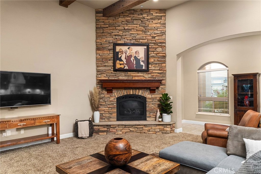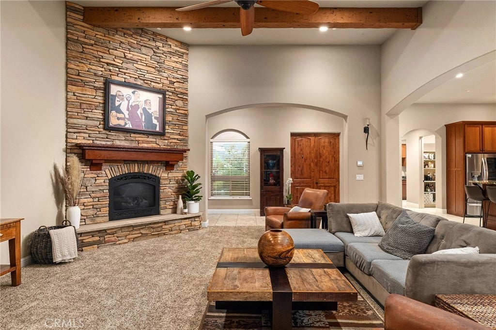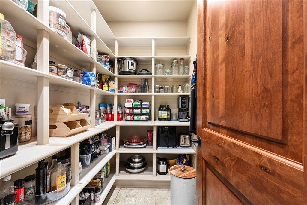 Beamed Ceilings, Breakfast Bar, Ceiling Fan(s), Crown Molding, Separate/Formal Dining Room, Granite Counters, High Ceilings, Open Floorplan, Pantry, Storage, Wired for Sound, Main Level Primary, Primary Suite, Walk-In Pantry, Walk-In Closet(s)