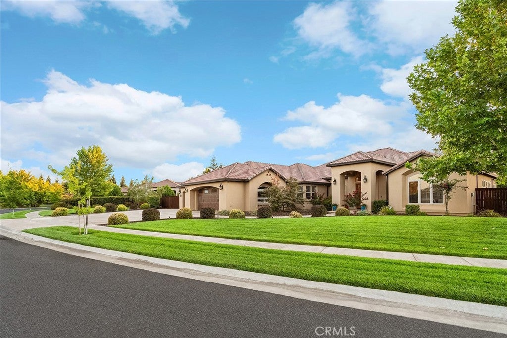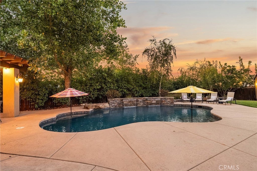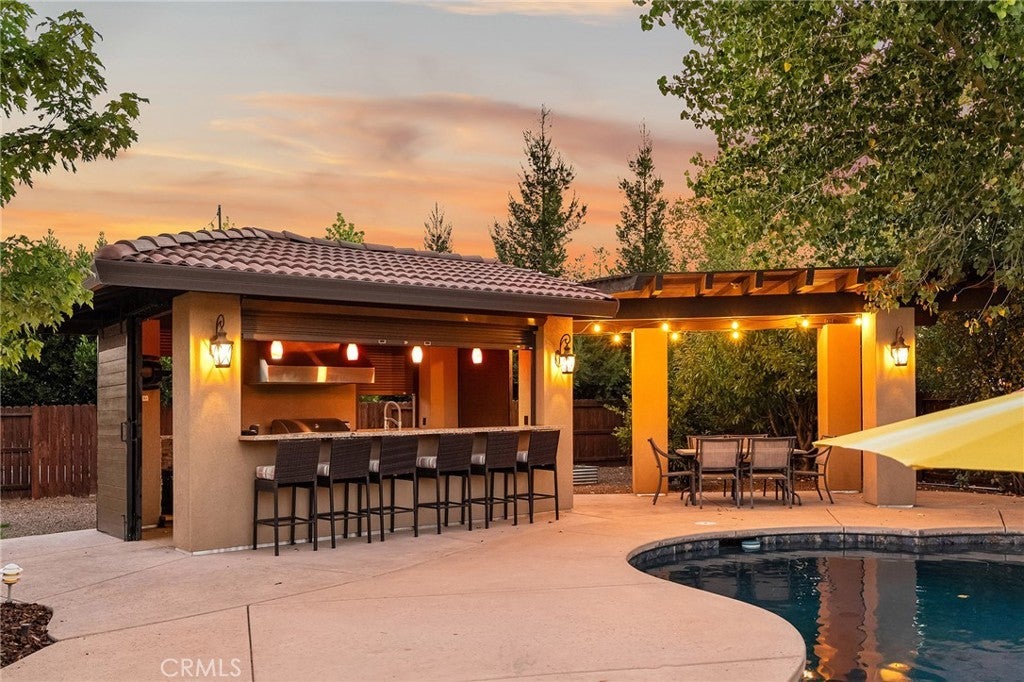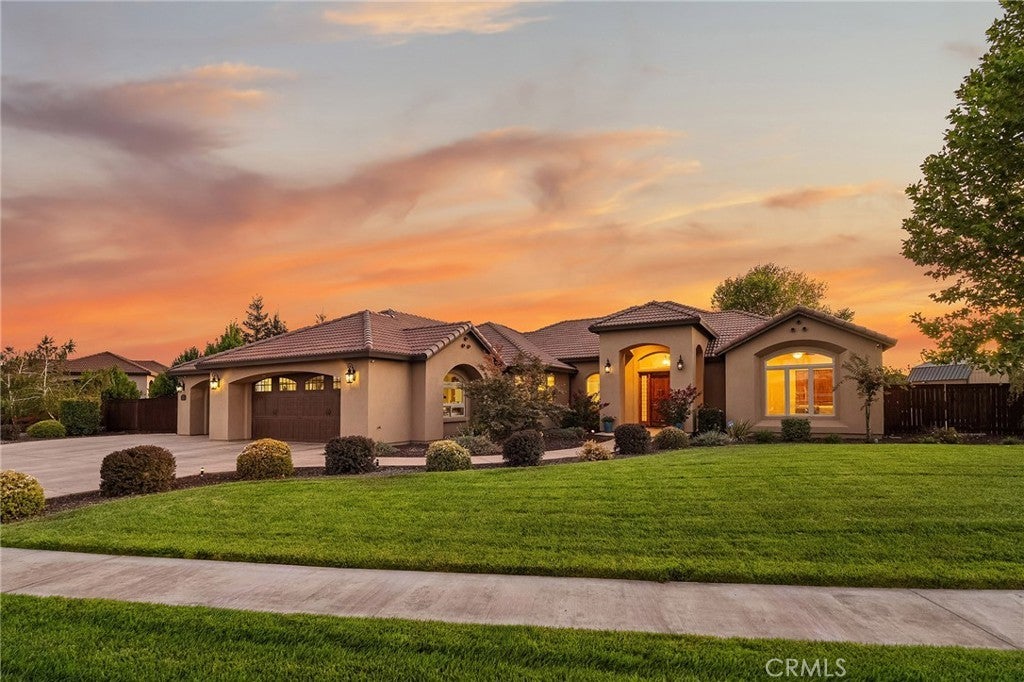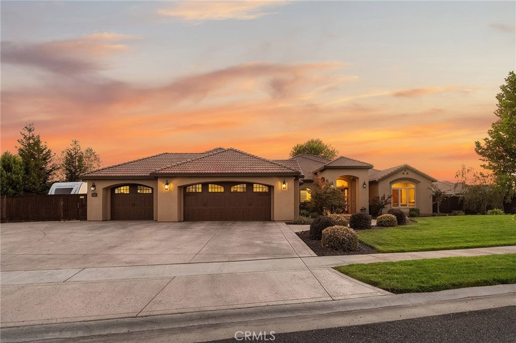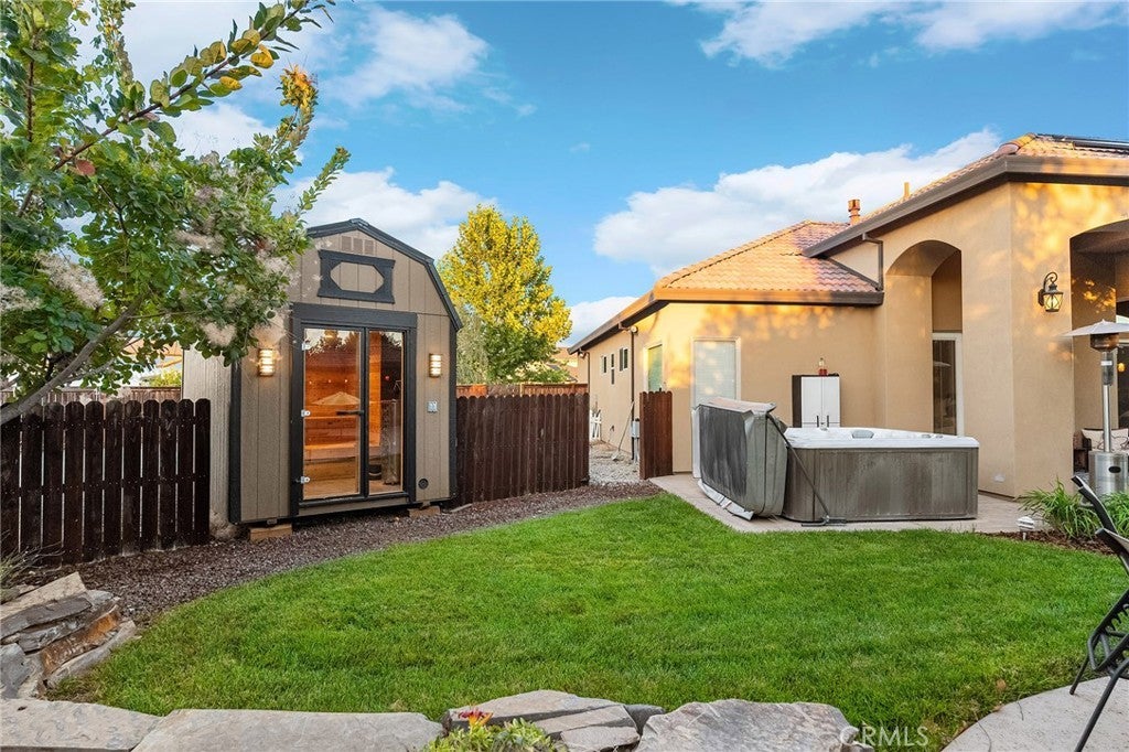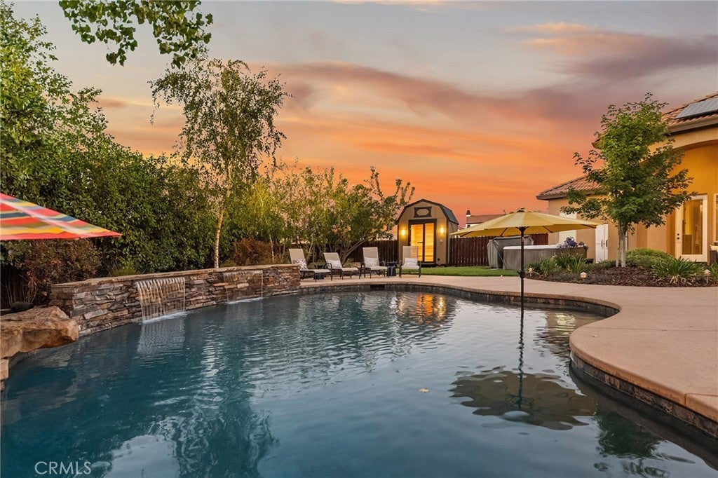 Your DREAM HOME awaits, in the prestigious Sierra Moon Subdivision! This luxurious Mediterranean-style home offers 4 bedrooms, 3 baths, and an expansive 3,264 sq ft of refined living space. Upon walking up to the home, you will be greeted by a massive rustic wood front door that opens up to a grand entryway with art niche. The open-concept design seamlessly connects the kitchen, dining, and great room, where rustic beamed ceilings and a dramatic stacked stone fireplace create a warm, inviting ambiance. The heart of the home is a gourmet chef’s kitchen featuring gorgeous granite countertops, all stainless-steel appliances, including a Kitchen Aid 6 burner gas stove! There is a large breakfast bar island, tons of prep space, and a massive walk-in pantry—perfect for entertaining or everyday culinary adventures. A private double-door study provides a quiet retreat, while the oversized laundry room offers abundant cabinetry and workspace. The split floor plan ensures privacy, with the Primary Suite and guest bed/bath on one side and two additional guest rooms with a shared bath on the other. You will love that the Primary Suite has quick access to the jacuzzi and pool area along with large walk-in closet, 2 separate vanities, oversized jacuzzi tub, and walk-in shower featuring 3 shower heads! Step outside to your PERSONAL RESORT: a sparkling pool with stacked rock waterfalls and umbrella-ready bench seating! Incredible outdoor kitchen with commercial-grade BBQ & hood, additional burners, flat top grill, sink, refrigerator, ice maker, with granite countertops creating 11 feet of full bar seating, and custom cabinetry. You won't believe the protective metal shutters and full sliding doors that will fully enclose & shield the whole space! Even a spot for your TV! Unwind in the 8-person Jacuzzi or huge 12 x 8 ft sauna that can hold up to 8 or 9 people! Certainly, a wellness center in your own backyard! Grow your own produce in the many raised garden beds conveniently hidden behind the kitchen. Don't forget the 36 panels of OWNED SOLAR to help with the bills! RV enthusiasts will appreciate the dedicated parking area with hookups and dump station. Need more room for more toys? Just take a look through the privacy gate, which is neatly graveled and ready to house much more! There is ample storage in the additional 10x16 ft. shed beyond the garage. This home truly has something for everyone and offers an unparalleled lifestyle of comfort, luxury, and functionality.