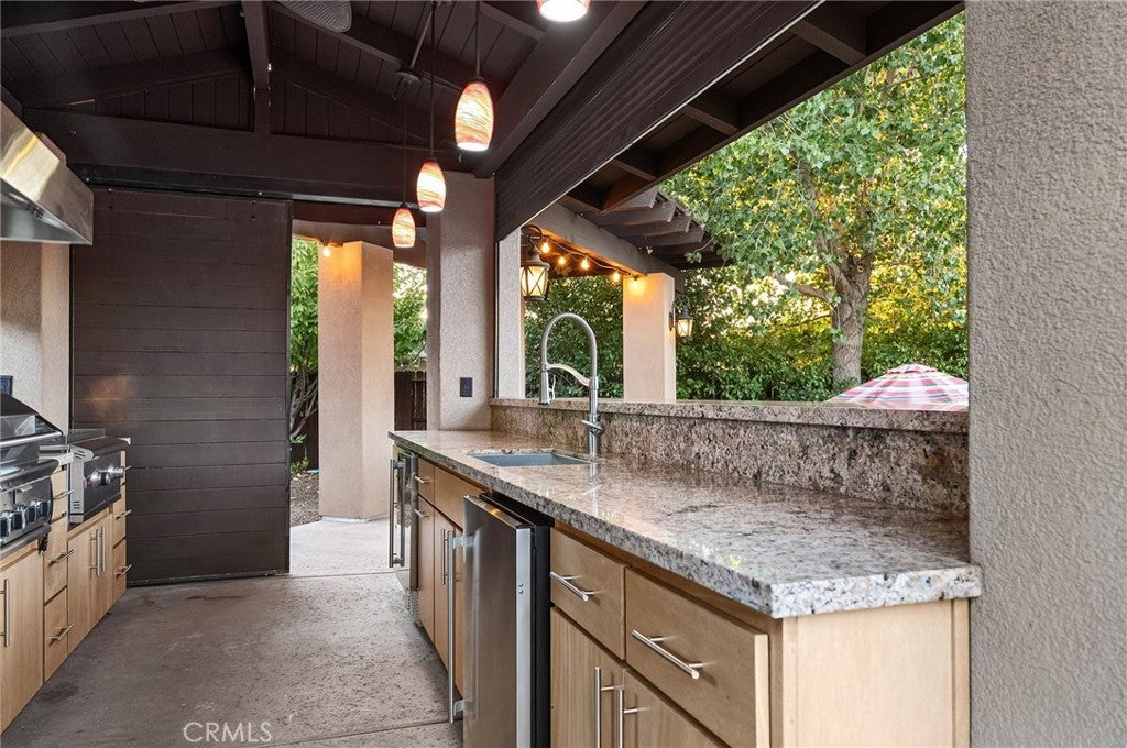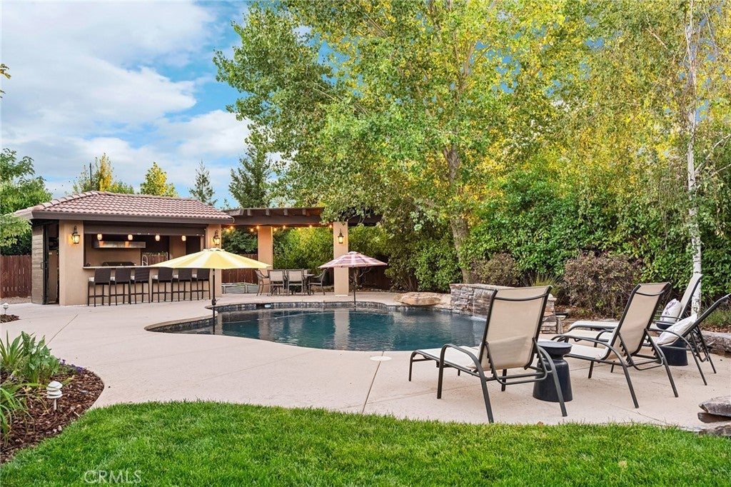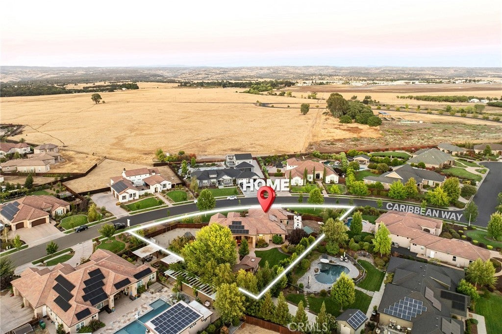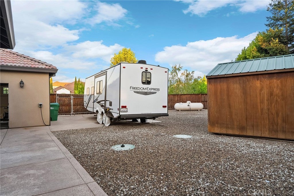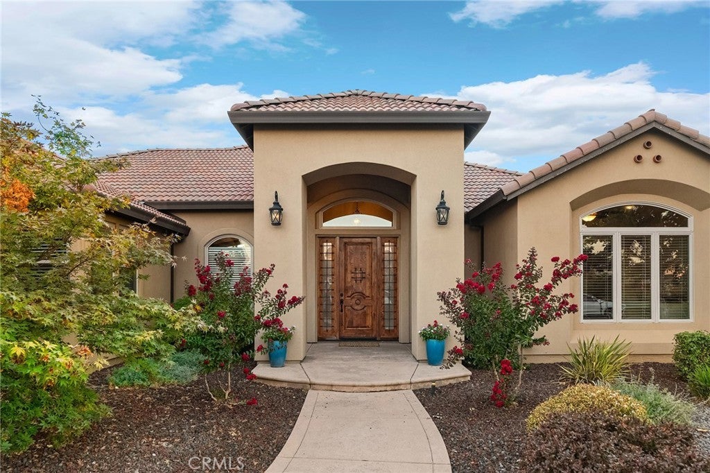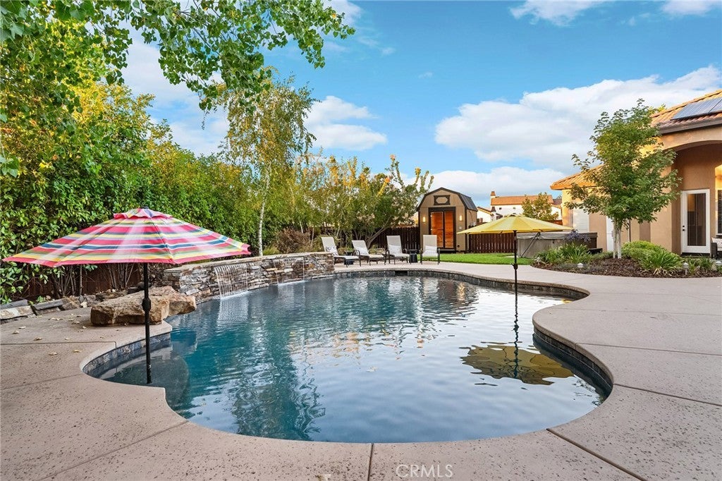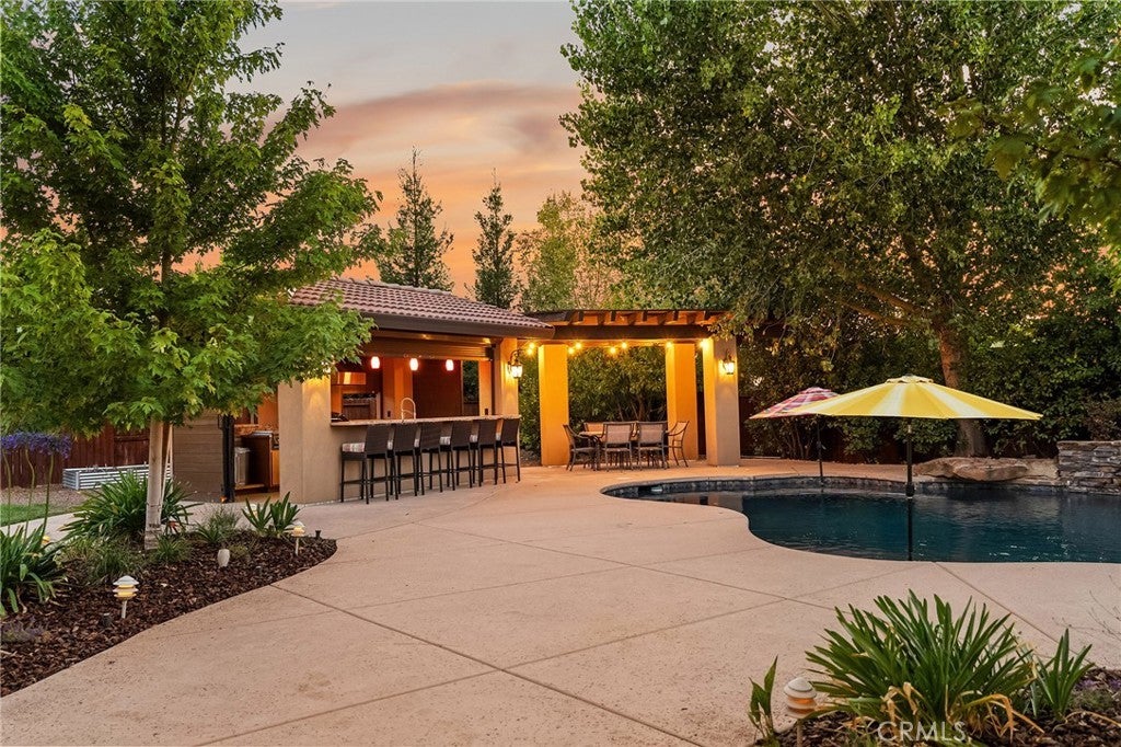 Your DREAM HOME awaits, in the prestigious Sierra Moon Subdivision! This luxurious Mediterranean-style home offers 4 bedrooms, 3 baths, and an expansive 3,264 sq ft of refined living space. Upon walking up to the home, you will be greeted by a massive rustic wood front door that opens up to a grand entryway with art niche. The open-concept design seamlessly connects the kitchen, dining, and great room, where rustic beamed ceilings and a dramatic stacked stone fireplace create a warm, inviting ambiance. The heart of the home is a gourmet chef’s kitchen featuring gorgeous granite countertops, all stainless-steel appliances, including a Kitchen Aid 6 burner gas stove! There is a large breakfast bar island, tons of prep space, and a massive walk-in pantry—perfect for entertaining or everyday culinary adventures. A private double-door study provides a quiet retreat, while the oversized laundry room offers abundant cabinetry and workspace. The split floor plan ensures privacy, with the Primary Suite and guest bed/bath on one side and two additional guest rooms with a shared bath on the other. You will love that the Primary Suite has quick access to the jacuzzi and pool area along with large walk-in closet, 2 separate vanities, oversized jacuzzi tub, and walk-in shower featuring 3 shower heads! Step outside to your PERSONAL RESORT: a sparkling pool with stacked rock waterfalls and umbrella-ready bench seating! Incredible outdoor kitchen with commercial-grade BBQ & hood, additional burners, flat top grill, sink, refrigerator, ice maker, with granite countertops creating 11 feet of full bar seating, and custom cabinetry. You won't believe the protective metal shutters and full sliding doors that will fully enclose & shield the whole space! Even a spot for your TV! Unwind in the 8-person Jacuzzi or huge 12 x 8 ft sauna that can hold up to 8 or 9 people! Certainly, a wellness center in your own backyard! Grow your own produce in the many raised garden beds conveniently hidden behind the kitchen. Don't forget the 36 panels of OWNED SOLAR to help with the bills! RV enthusiasts will appreciate the dedicated parking area with hookups and dump station. Need more room for more toys? Just take a look through the privacy gate, which is neatly graveled and ready to house much more! There is ample storage in the additional 10x16 ft. shed beyond the garage. This home truly has something for everyone and offers an unparalleled lifestyle of comfort, luxury, and functionality.