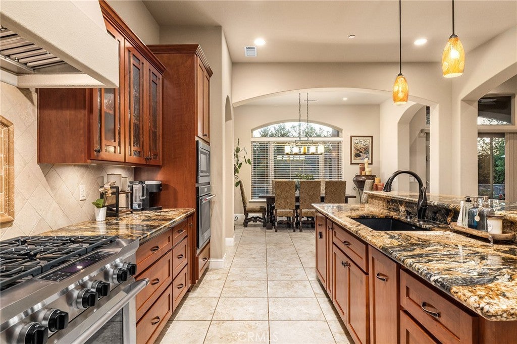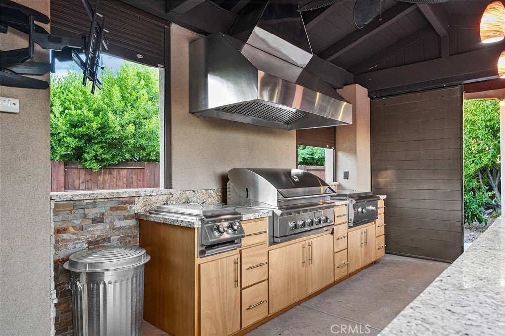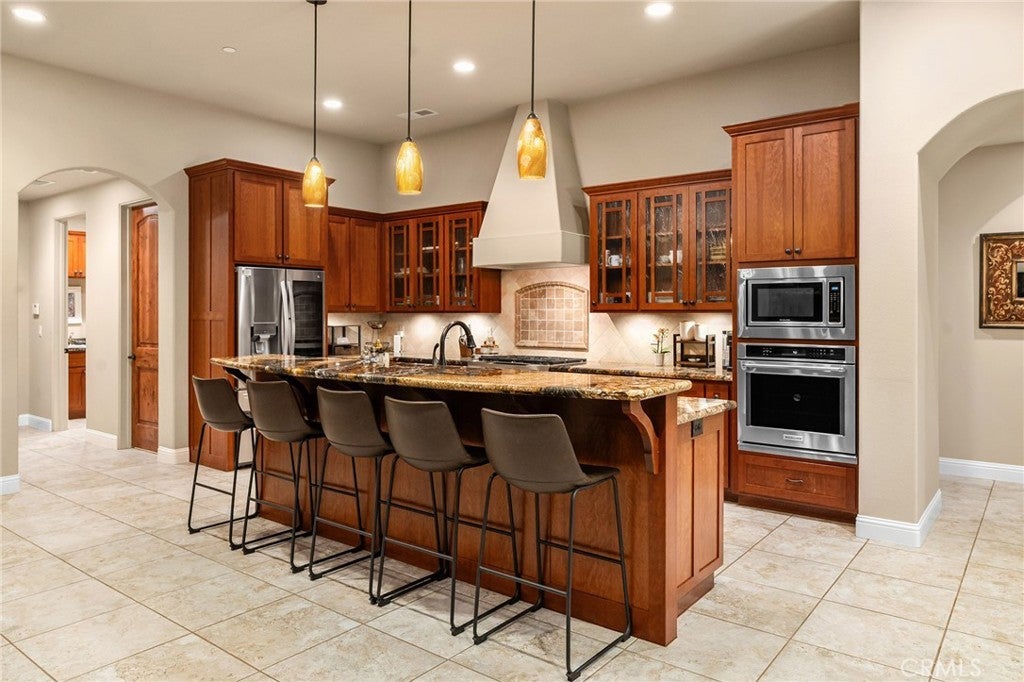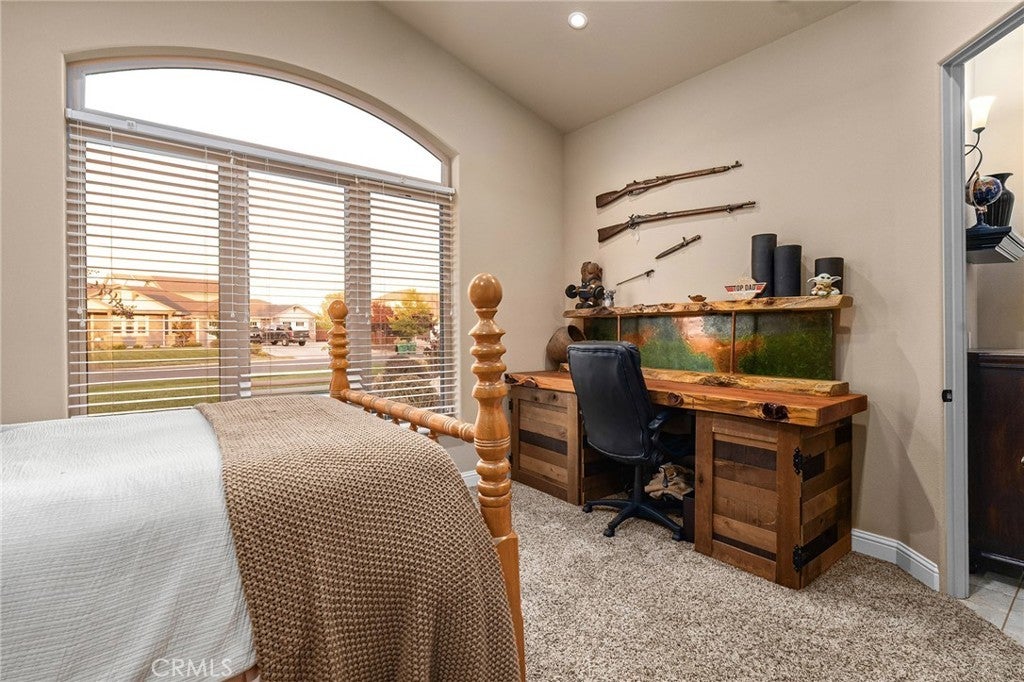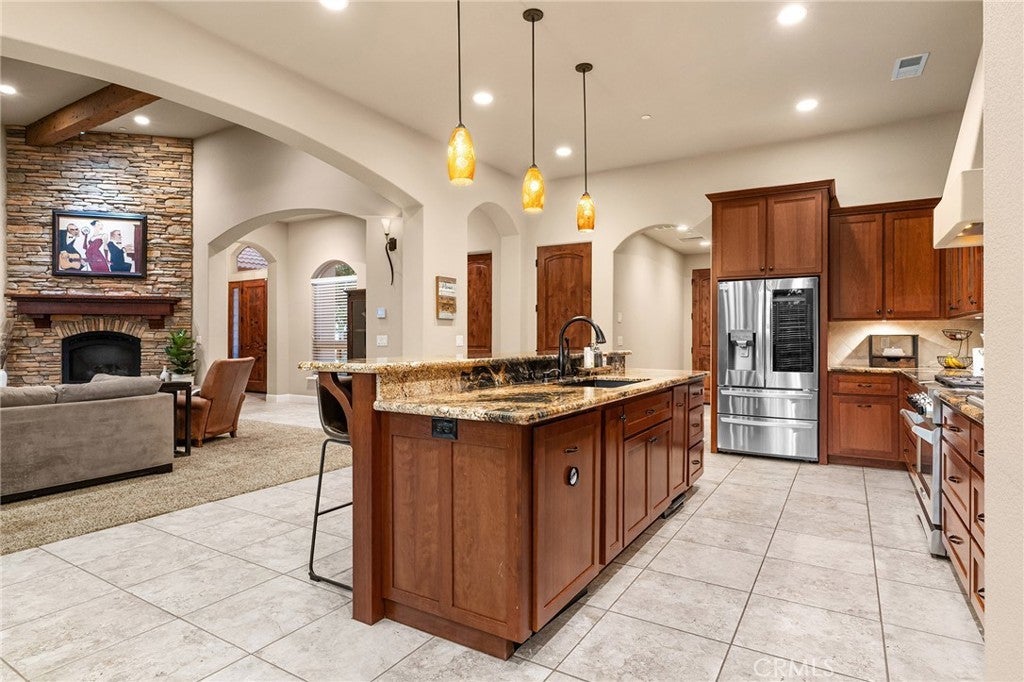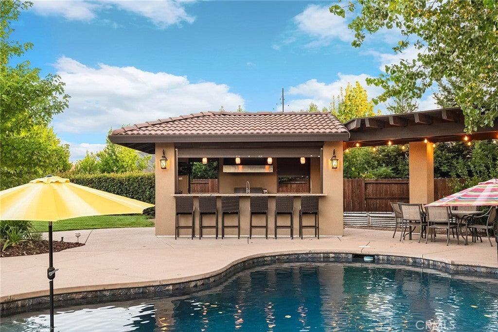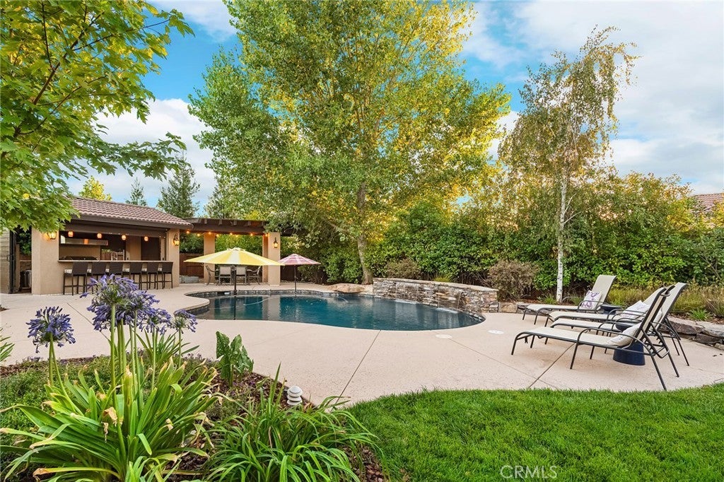 Your DREAM HOME awaits, in the prestigious Sierra Moon Subdivision! This luxurious Mediterranean-style home offers 4 bedrooms, 3 baths, and an expansive 3,264 sq ft of refined living space. Upon walking up to the home, you will be greeted by a massive rustic wood front door that opens up to a grand entryway with art niche. The open-concept design seamlessly connects the kitchen, dining, and great room, where rustic beamed ceilings and a dramatic stacked stone fireplace create a warm, inviting ambiance. The heart of the home is a gourmet chef’s kitchen featuring gorgeous granite countertops, all stainless-steel appliances, including a Kitchen Aid 6 burner gas stove! There is a large breakfast bar island, tons of prep space, and a massive walk-in pantry—perfect for entertaining or everyday culinary adventures. A private double-door study provides a quiet retreat, while the oversized laundry room offers abundant cabinetry and workspace. The split floor plan ensures privacy, with the Primary Suite and guest bed/bath on one side and two additional guest rooms with a shared bath on the other. You will love that the Primary Suite has quick access to the jacuzzi and pool area along with large walk-in closet, 2 separate vanities, oversized jacuzzi tub, and walk-in shower featuring 3 shower heads! Step outside to your PERSONAL RESORT: a sparkling pool with stacked rock waterfalls and umbrella-ready bench seating! Incredible outdoor kitchen with commercial-grade BBQ & hood, additional burners, flat top grill, sink, refrigerator, ice maker, with granite countertops creating 11 feet of full bar seating, and custom cabinetry. You won't believe the protective metal shutters and full sliding doors that will fully enclose & shield the whole space! Even a spot for your TV! Unwind in the 8-person Jacuzzi or huge 12 x 8 ft sauna that can hold up to 8 or 9 people! Certainly, a wellness center in your own backyard! Grow your own produce in the many raised garden beds conveniently hidden behind the kitchen. Don't forget the 36 panels of OWNED SOLAR to help with the bills! RV enthusiasts will appreciate the dedicated parking area with hookups and dump station. Need more room for more toys? Just take a look through the privacy gate, which is neatly graveled and ready to house much more! There is ample storage in the additional 10x16 ft. shed beyond the garage. This home truly has something for everyone and offers an unparalleled lifestyle of comfort, luxury, and functionality.