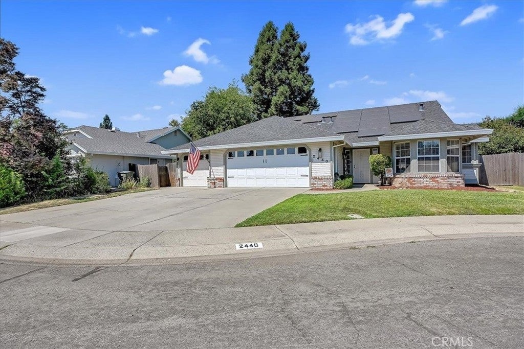 PRICE REFRESH - BEST VALUE In The Neighborhood! Welcome to this spacious and inviting home nestled on a quiet cul-de-sac in the desirable Northwest Yuba City area. Offering the perfect blend of comfort and functionality, this single-story residence features 3 bedrooms, 2 bathrooms, and 1,768 sq ft of bright, open living space. Step into the airy living and dining areas with high ceilings and an abundance of natural light. The family room boasts a charming brick fireplace and flows seamlessly to the covered backyard patio ideal for relaxing or entertaining. The spacious kitchen is equipped with stainless steel appliances, a cozy breakfast nook, and plenty of cabinetry for storage. The primary suite offers a peaceful retreat with a large closet and an en-suite bath featuring dual sinks and a separate shower. Additional features include a 3-car garage with a drive-through rear door, offering ample room for vehicles, storage, or hobby space. The backyard includes a fiberglass pool ready for your TLC to bring it back to its full potential. Plus, enjoy energy savings with a solar system already in place. Conveniently located near Stabler Lane area, with easy access to Highway 99, and just minutes from parks, schools, and shopping. Come explore the possibilities, all this home needs is your personal touch!