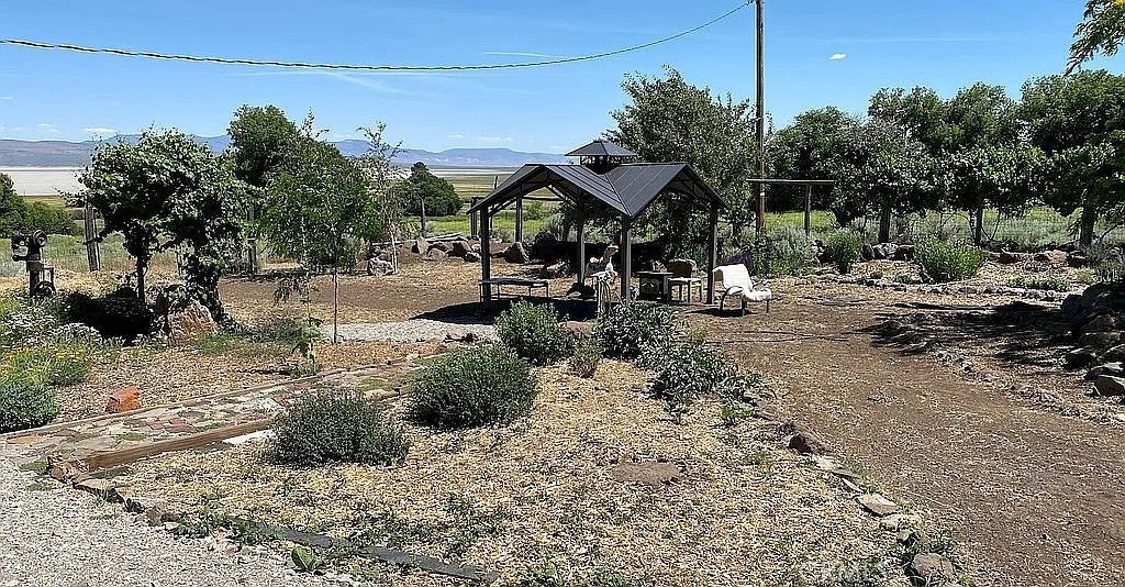 A natural HOT WATER WELL means the main house and guest house have hot water for endless showers and the guest house even has heated floors. If 2 houses aren't enough, there is room to build another home and it even has another septic system and well on the far side of this 5.25 ACRE PARCEL. In addition to the geothermal well which produces approx 15 gpm of water ranging from 103 to 126 degrees, there are also TWO COLD WATER WELLS and old irrigation ditches making this a gardener's dream complete with a big fenced garden to keep out the local mule deer and antelope. Garden has a gazebo too! Remodeled by professional restaurant owners, the kitchen in the 1670 sf main house is a chef's dream with custom range hood, concrete and butcher block counters and custom cabinets and a WINE CELLAR. Rich hardwood and elegant tile floors and all the lovely quirky details you would hope to find in a home built in the 1930s make this house inviting and functional. The guest house is fully self-contained (other than shared laundry) and newly finished and is 640 square feet with vaulted ceilings and looks out over Upper Lake with front row seats for the full moon rises and brilliant sunrises right from your King bed (most guest house furnishings are included with the sale). Both homes have metal roofs and concrete siding. There are many large shade trees, fruit trees and a stand of 16 Black Locust trees that have beautifully scented blossoms in spring and incredible hardwood. Whether you are looking for a sustainable homestead, an investment property to build another home on or to create a hot spring resort, this is a rare find. Possible seller financing. Buyer to investigate all aspects and uses to their satisfaction. Tax records show 3 beds, one bath and 1677 sf. Seller states 2310 sf living space with guest house and 3 beds plus office and 2.5 baths. 3 more out buildings and a shipping container with windows are included in the sale. Nestled on the Western most edge of the Great Basin near Lake City, California, this property has stunning views of the Hayes Mountain range in Nevada and backs to the Warner Mountains know for their pristine lakes and wilderness areas. Lake city sits near the middle of Surprise Valley, rich with wildlife, farmlands and famous hot spring resorts, excellent gem hunting, gold mines and a welcoming community. The 4 towns in Surprise Valley have formed a thriving little food hub and offer local meats, cheeses, breads, veggies and canned goods.