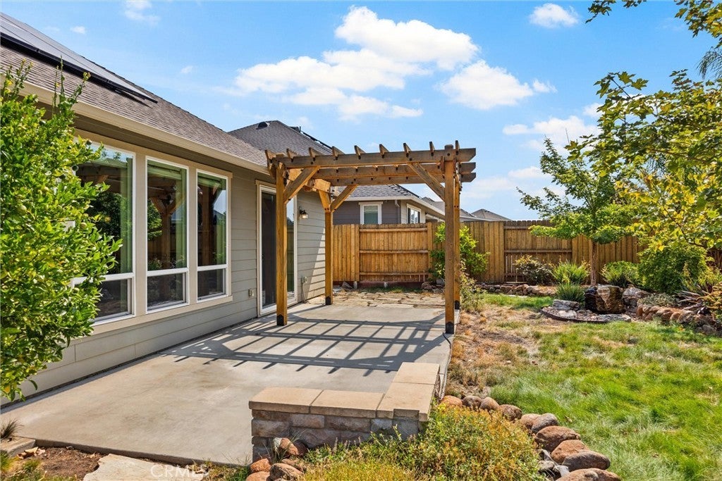 This premium lot offers an unparalleled opportunity to embrace the tranquility of nature. Imagine starting your day on the front patio, sipping your morning coffee as you take in the breathtaking panorama of the meadow stretching out before you, framed by the surrounding mountains. Watch the clouds drift lazily across the valley, painting ever-changing scenes in the sky. Beyond its serene setting, this property offers a prime location that caters to an active outdoor lifestyle. With Hancock Park, Wildwood Park, and Upper Bidwell Park all conveniently nearby, you'll have a wealth of recreational opportunities at your fingertips. Explore countless scenic walking and biking trails, perfect for leisurely strolls or invigorating runs. For the more adventurous, the rugged terrain offers exciting mountain biking experiences. Equestrian enthusiasts will appreciate the proximity to horseback riding trails. This home has been lightly lived in and feels like new. Large windows fill the space with natural light and offer views of the beautifully landscaped, low-maintenance yard. It boasts a highly desired open floor plan, perfect for entertaining and comfortable living. The great room features a gas fireplace, which is enjoyable from both the kitchen and dining areas. The kitchen is equipped with upgraded double ovens and a five-burner cooktop. A spacious laundry room adds to the home's convenience. This spacious home boasts a well-designed layout with 4 bedrooms and 3 baths, providing ample living space for families. With fall just around the corner, you'll surely enjoy the 2021 hot tub in your backyard. You will appreciate exceptional efficiency, with owned solar panels, 6-inch exterior walls for superior insulation and soundproofing, an owned water softener and filtration system, and a tankless on-demand water heater. The property includes a spacious 3-car garage with epoxy floors and ample storage space. This is more than just a home; it's a gateway to an enriched life filled with natural beauty and outdoor adventures. Please ask for supplements so you can review the solar contract and true-up. The lot premium on this property was $50,000.