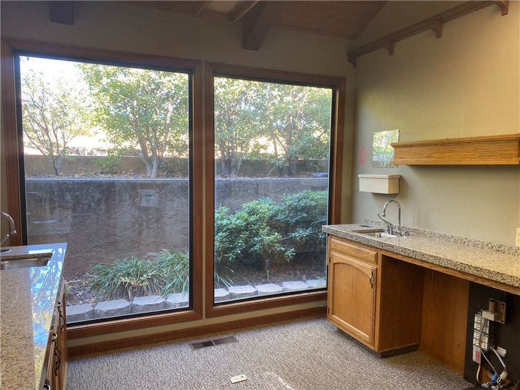 Spectacular Commercial Opportunity! Don’t miss your chance to own one of the most impressive professional office suites in town, located in a premier commercial complex with high visibility and excellent amenities. Currently configured as a dental practice, this versatile space could easily be adapted for a wide range of professional uses. The beautifully appointed interior features a spacious and welcoming waiting area with soaring vaulted ceilings, a prominent reception area, and multiple private offices and consultation rooms. The main level includes: • 10 well-designed operatory stations, most with views of serene, semi-private landscaped courtyards • A doctor's private office • Accessible restroom • X-ray station areas and dental laboratory room • Centralized supply and storage areas • Additional storage and flex rooms Upstairs, you’ll find a comfortable staff break room with a kitchenette and restroom, plus an additional private office space or potential apartment complete with a full bathroom and shower—ideal for extended use or future conversion. High-end finishes, including rich wood cabinetry and stone solid-surface counters, add warmth and professionalism throughout the suite. Additional highlights: • Generous square footage • Ample parking • Access to the complex’s prominent signage • Shared use of a ~1,200 sq. ft. common meeting room • Reasonable NNN rates This is a rare opportunity to secure a beautiful, turn-key space in one of the area's finest professional settings. Schedule your private tour today!