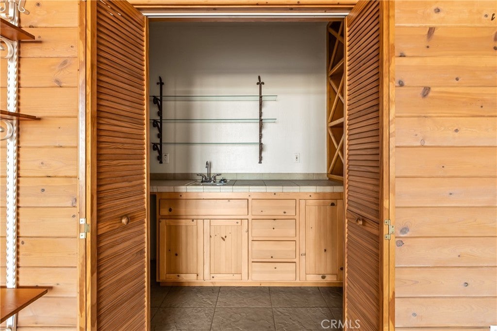 Beamed Ceilings, Wet Bar, Built-in Features, Ceiling Fan(s), High Ceilings, Open Floorplan, Storage, Tile Counters, All Bedrooms Down, Bedroom on Main Level, Main Level Primary, Workshop