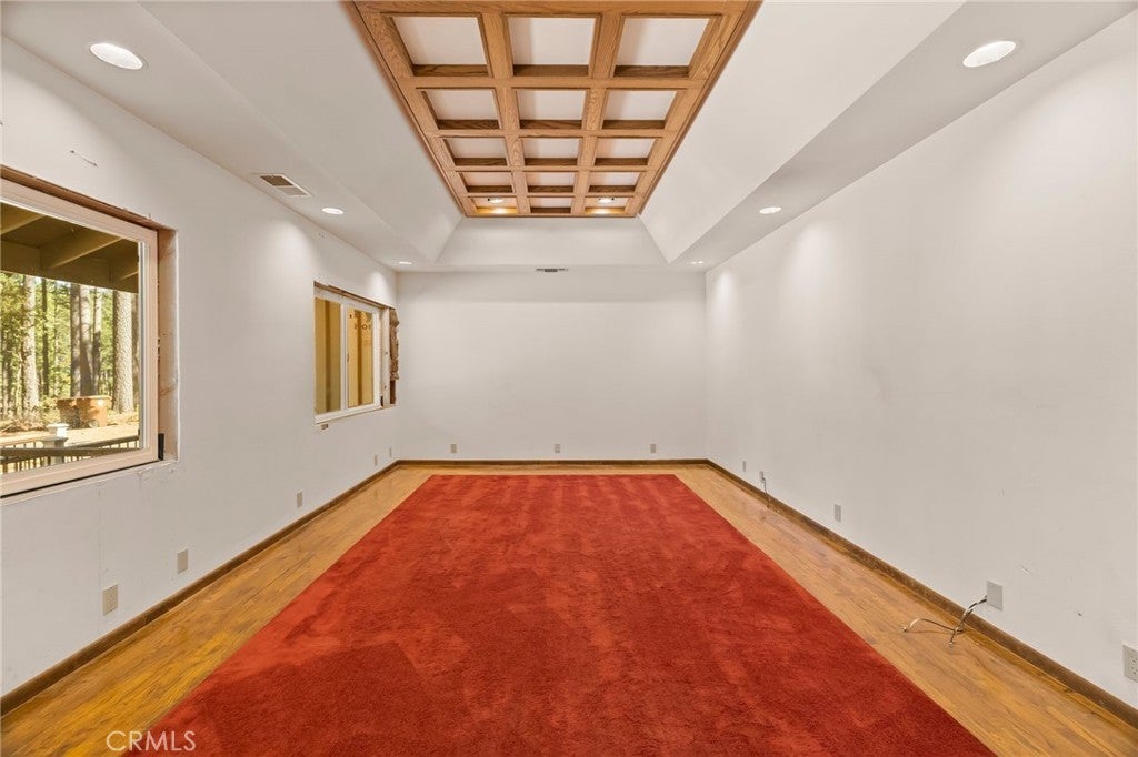 Ceiling Fan(s), Coffered Ceiling(s), Laminate Counters, Pantry, Primary Suite, Pull Down Attic Stairs, Recessed Lighting, Solid Surface Counters, Storage, Tile Counters, Unfinished Walls, Wired for Data, Workshop