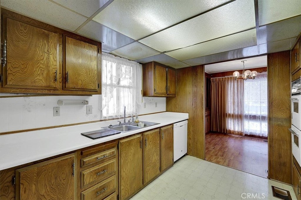 55 and older senior mobile home park awaits you! with a little elbow grease this 2 bedroom 2 bathroom mobile home could shine. Separate living and family rooms, formal dining room, central heat and air, dishwasher, gas stove top, double oven, covered patio, covered one car parking off street with a shed. Community features a pool and clubhouse! Buyer must qualify with the park