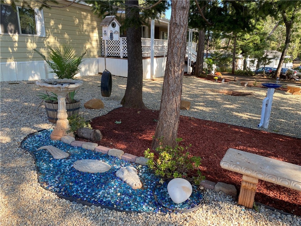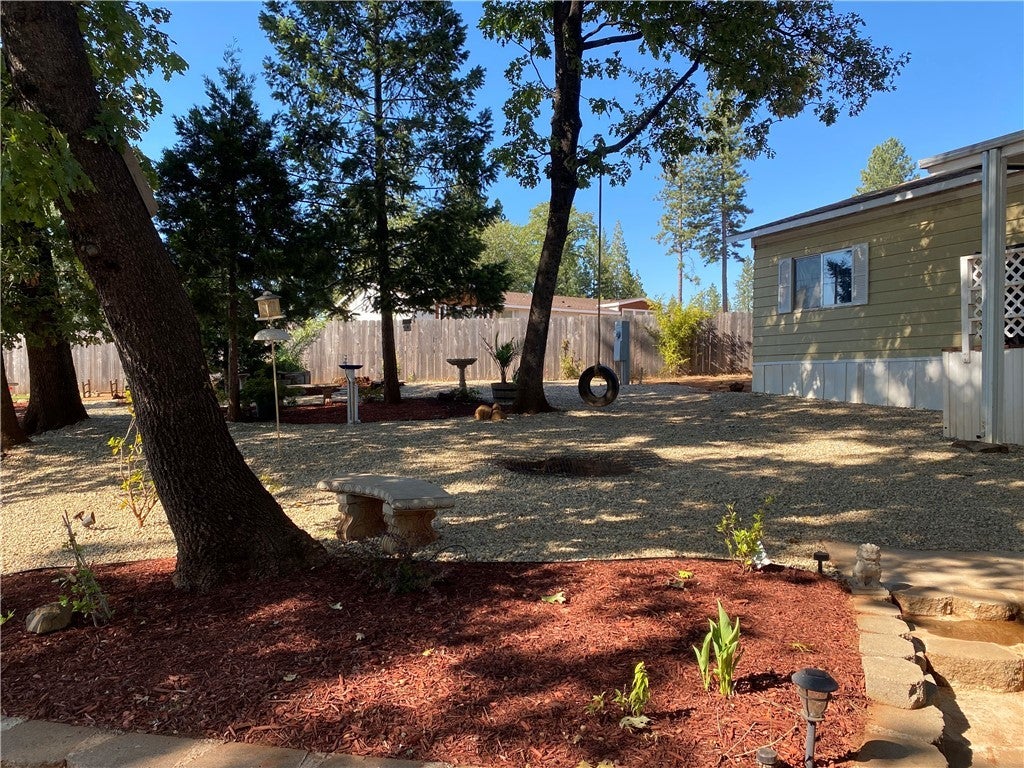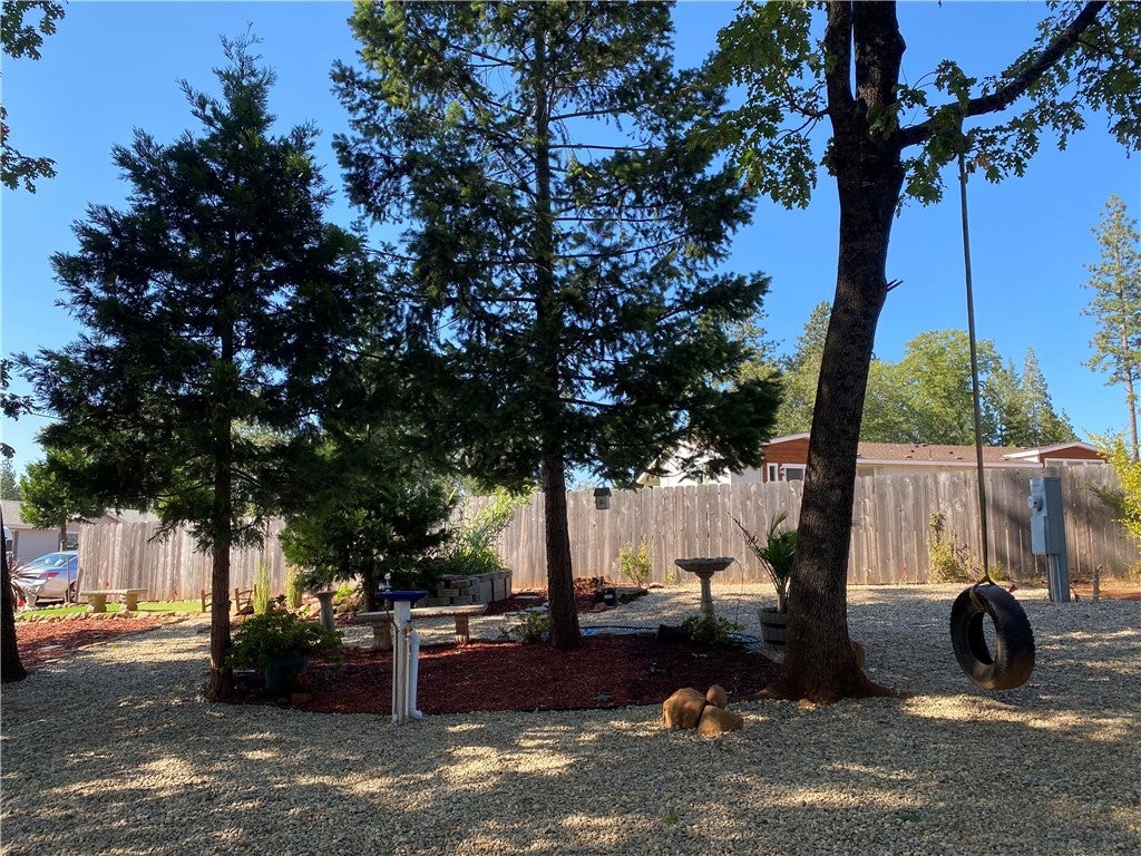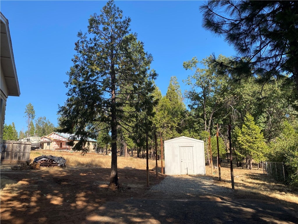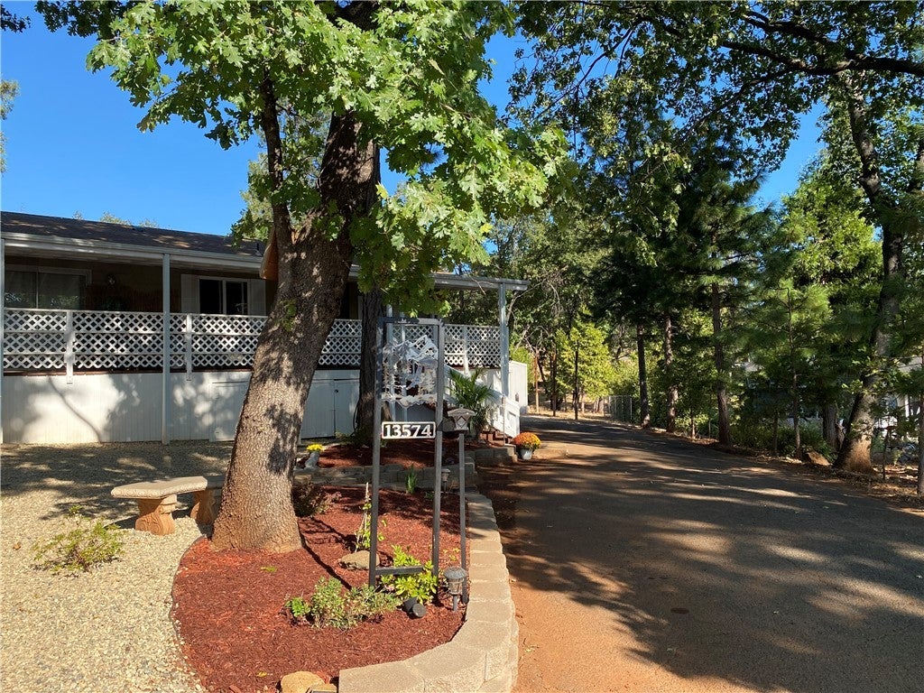 Charming Magalia Home in Paradise Pines! Don’t miss this affordable opportunity for homeownership in a desirable cul-de-sac setting within the Paradise Pines HOA, offering access to a pool, clubhouse, sport courts, hiking trails, and more! This inviting 2-bedroom, 2-bathroom home spans 1,440 SqFt on a .27-acre parcel with fresh landscaping that includes a peaceful creek bed and waterfall feature. Step inside to find a large living room plus a separate, spacious family room with a cozy woodstove that opens to the kitchen, featuring abundant cabinetry and newer counters. The primary suite includes a generously sized bathroom with both a tub and shower. The guest bedroom offers convenient access to a continental bath with a full-size shower. Enjoy the oversized covered deck with neighborhood views, perfect for relaxing or entertaining. Additional highlights include a laundry room with extra storage, a bonus storage area, and a HUGE detached shed for all your hobbies or projects. This home combines comfort, function, and community amenities—come see it today!