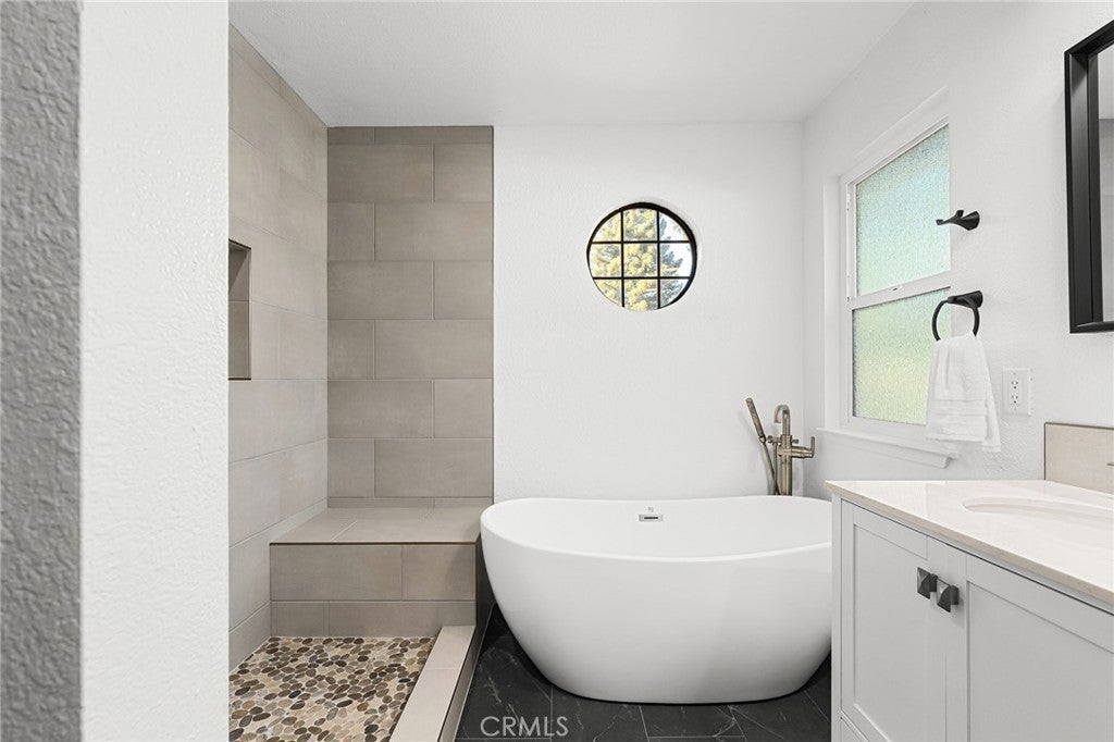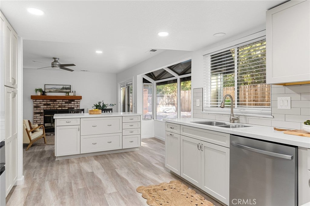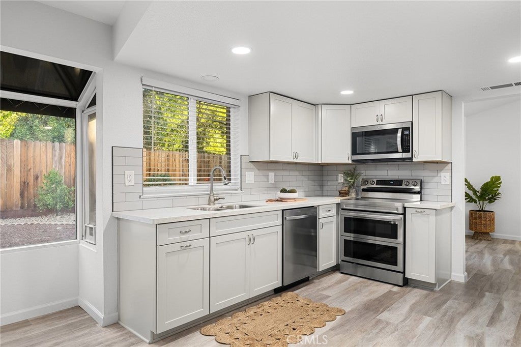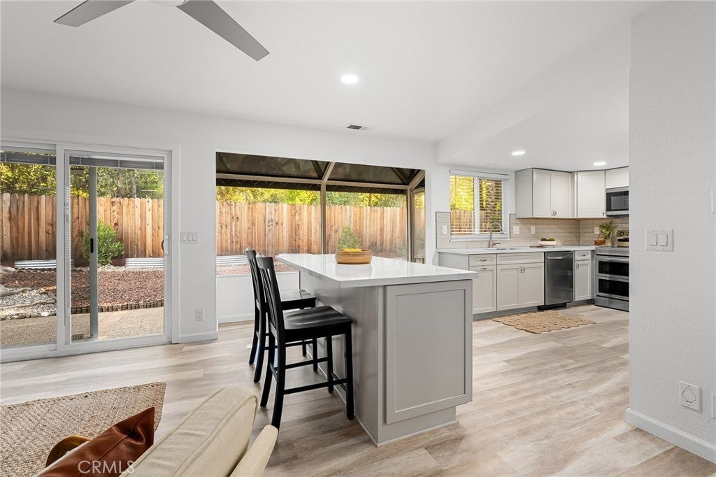 Holiday Special! Stunning Remodeled 4 Bedroom, 2.5 Bath Home with OWNED Solar and BONUS Room. Step inside this beautifully remodeled home and experience a bright, open entryway with vaulted ceilings that make a stunning first impression. This spacious property features 4 bedrooms, 2.5 bathrooms, and a versatile bonus room off the garage that can be used as a home gym, office, or playroom. The layout offers both a living room and a family room, providing plenty of space to relax and entertain. The family room features a cozy brick fireplace, while the separate dining room is ideal for gatherings and celebrations. The fully remodeled kitchen is a showstopper with newer cabinetry, updated lighting, newer appliances, a double sink, and a stylish backsplash, making it perfect for cooking and entertaining. The home also features newer LVP flooring, fresh paint, and ceiling fans throughout, creating a warm and inviting atmosphere. Both bathrooms have been tastefully renovated, including luxurious wetroom-style showers. The primary suite is a true retreat with a soaking tub, dual sink vanities, and a walk-in shower. Generous storage is found throughout the home for added convenience. Over $200,000 in upgrades have been invested into this property, bringing modern comfort, functionality, and style to every corner. Energy efficiency is a highlight with owned solar panels, newer windows, a new HVAC system, and a new water heater. Step outside to enjoy the beautifully landscaped front and back yards, a newer redwood fence for privacy, and full gutter protection. Additional upgrades include newer sliding glass doors, updated electrical in the bathrooms, and a spacious two car garage. Every detail has been thoughtfully designed to create a turnkey home that blends modern style with everyday comfort. With its quality updates and inviting spaces, this home is ready for you to move in and enjoy. Don't miss out!