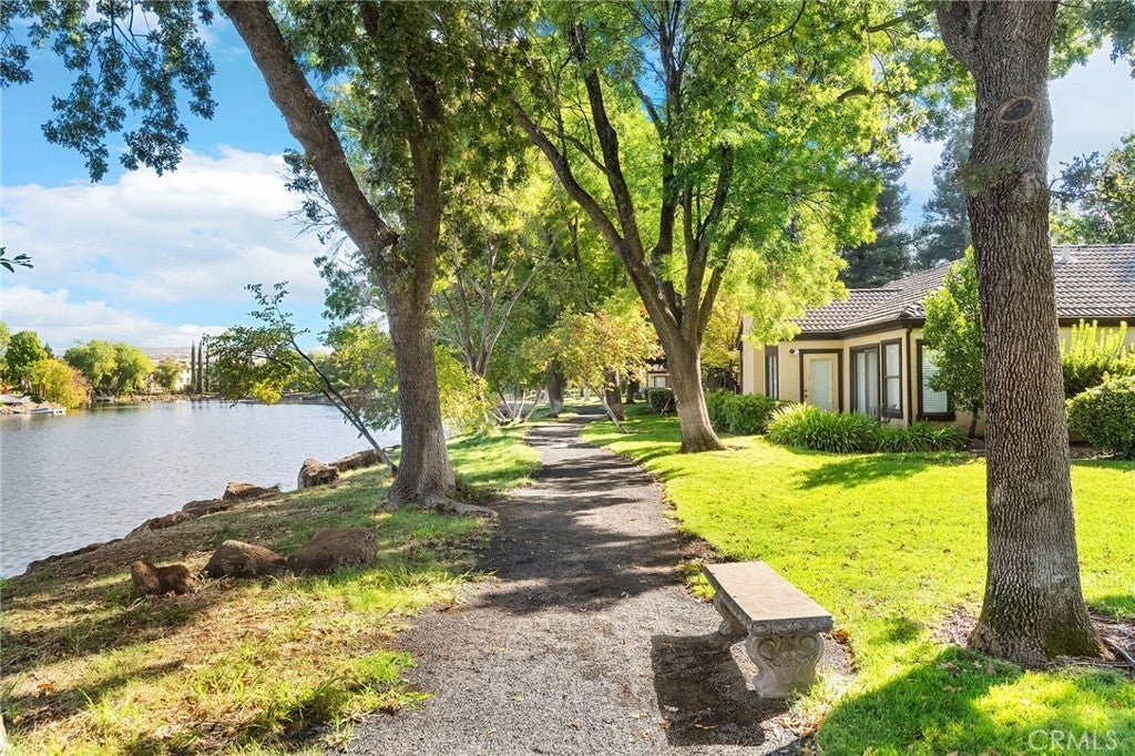 Lakefront End Unit with Terrific Views! This rare end-unit, single-story condo in Sierra Sunrise Village at California Park offers 2 bedrooms, 2 bathrooms, and 1,300 sq. ft. of living space with lakefront views and privacy—only one shared wall and no neighbor to block your view. Located at the end of the lake, you’ll enjoy sunsets, wildlife, and a peaceful trail around the water. The kitchen features newer stainless steel appliances, freshly painted cabinets, and easy-care laminate wood floors throughout, creating a bright and welcoming space. Sliders from the dining area open to a patio with serene lake views, perfect for relaxing or entertaining. The primary bedroom includes a walk-in closet, and the layout also offers a spacious guest bath, guest bedroom, linen and coat closets, and an in-unit laundry. Add kayaks or bicycles and enjoy all that Chico has to offer. Sierra Sunrise Village is a 55+ community with landscaped grounds, lake access, a dock, tennis courts, and daily security patrols, making this an exceptional place to downsize, retire, or enjoy a tranquil lakefront lifestyle.