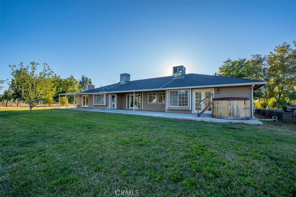 This beautifully remodeled 3,500 sq. ft. home offers versatile living with five bedrooms, including two master suites ideal for in-laws or multi-generational living. County records reflect four bedrooms, but the flexible layout provides an additional room to suit your needs. The south wing features a brand-new, two-zone HVAC system installed in January 2024, while the north wing’s system was replaced in July 2022, ensuring year-round comfort. Energy efficiency is enhanced with an owned 40-panel, 13kV solar system. The home underwent an update in March 2024, including the installation of 1,100 sq. ft. of authentic Saltillo tile, with an additional 2,000 sq. ft. of tile stored in the garage for future use. Outdoor living is unmatched, with over 1,000 sq. ft. of concrete patio space in the backyard, a cedar hot tub, and more than 30 established fruit trees including fig, prune, apricot, cherry, mulberry, Asian pear, and a variety of citrus. The fully fenced property, complete with a powered gate, offers privacy and security. A two-car garage provides convenience and ample storage. This move-in ready home blends thoughtful upgrades, modern efficiency, and timeless charm, creating a rare opportunity to enjoy comfortable indoor living and abundant outdoor amenities.