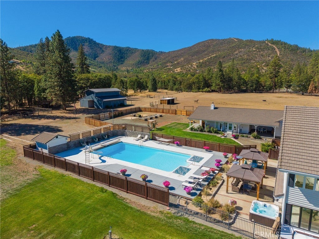 Experience the true "Northern California" lifestyle from the serenity of this extraordinary estate. Offering a perfect blend of elegance, comfort, convenience and functionality this home showcases a completely reimagined interior with timeless craftsmanship, an abundance of natural light and expertly curated rooms. The primary suite offers a cozy corner fireplace and vaulted, exposed beam ceiling which leads into the stunning primary bathroom complete with dual sinks, sauna, soaking tub and walk-in shower. As you continue on, the ultimate showstopper is the luxurious walk-in closet, that rivals the size of many bedrooms. A 1500 sq. ft., ADA compliant casita was thoughtfully constructed in 2020; meticulously designed with 2 bedrooms, 2 bathrooms, full kitchen and its own 2 car garage creating the ideal separate living space for multigenerational living or a luxury retreat for weekend guests. Both homes center around a stunning outdoor gathering area complete with sparkling pool, slide, diving board and hot tub. Solar panels are an added bonus. Plus potential for a pickleball court! Whether you're a seasoned equestrian or simply dreaming of peaceful rural living near the base of majestic Mt. Shasta, this property offers everything you need with a spacious horse barn including two stalls, tack room, and plenty of hay storage. A seasonal creek and scenic walking or riding trail winds through the property, ideal for trail rides or relaxing strolls. Make an appointment today for a private viewing!