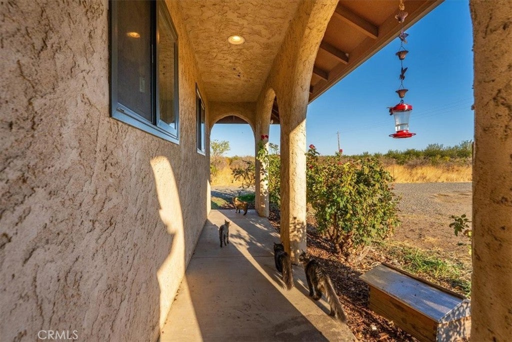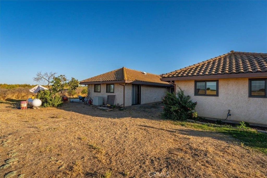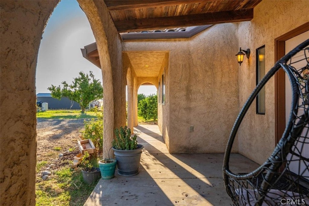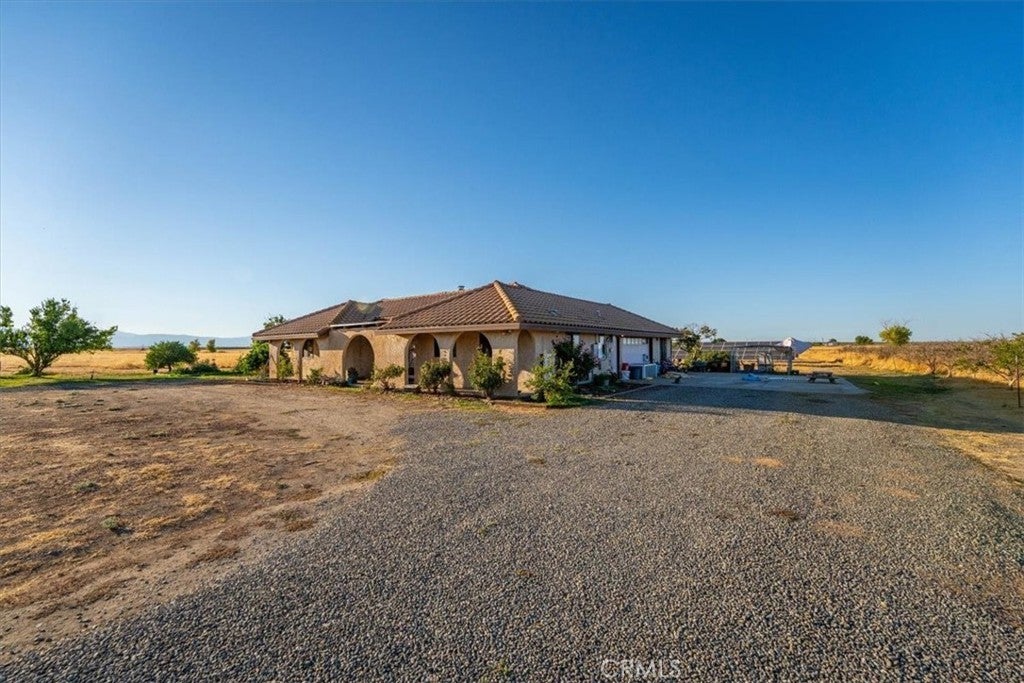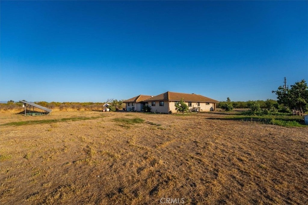 Spanish-Style Home on Almost 20 Acres! This charming Spanish-style home features classic arches, a tile roof, and a warm, inviting feel. The family room has beautiful exposed beam ceilings and a cozy wood stove—great for relaxing or gathering with friends and family. The large primary bedroom offers plenty of space and comfort. Outside, you’ll find just under 20 acres with room for animals, gardens, orchards, or whatever you can dream up. A variety of fruit trees including orange, lemon, lime, avocado, grapefruit, pear, pomegranate and persimmon already established. Owned solar and a Tesla battery add to the efficiency of this home as well as newer windows. Sale will include two 9.91 parcels. Whether you're looking for space to spread out or a peaceful place to call home, this property has a lot to offer.