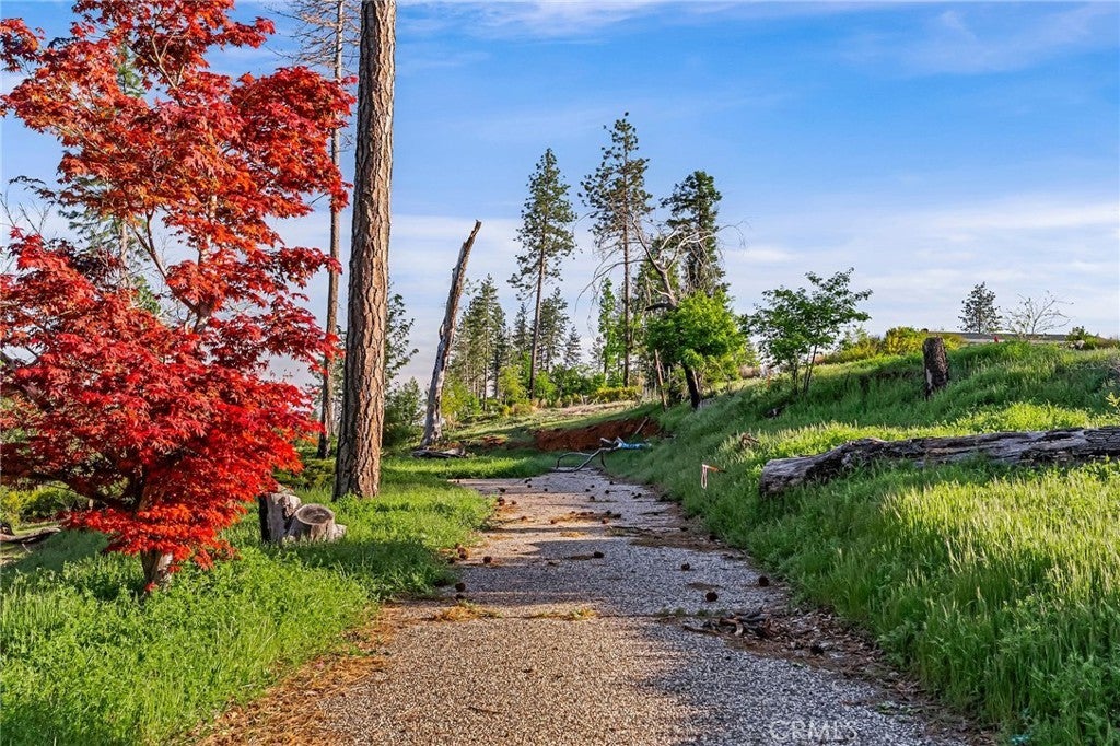 PRIVATE & END OF LANE SETTING for this .75-acre LOT IN THE HEART OF PARADISE!! PID WATER IS STILL ACTIVE and PG&E has natural gas & electric all underground now and waiting at the front of the property for connecting to your new home. This property offers a lovely, treed view as well as well as some existing decorative landscape pieces and the driveway still in place. This location is ideal for its serenity, yet only 2.5 miles to town amenities like shopping, dining and the post office. It also provides a quick access to Skyway and only 12 miles to Hwy 99 in Chico for such an amazingly easy commute with all the benefits of living in a small-town community! This location is also just minutes to Lake Oroville Marina with great fishing, boating, skiing, swimming & amazing year-round water recreation options! Plus, a short drive to Paradise Lake, DeSabla Lake or the Feather River for additional outdoor recreation like fishing, hiking & gold panning!