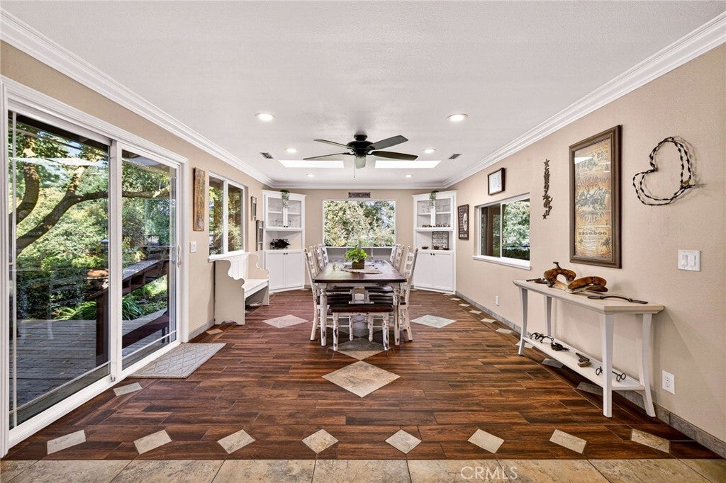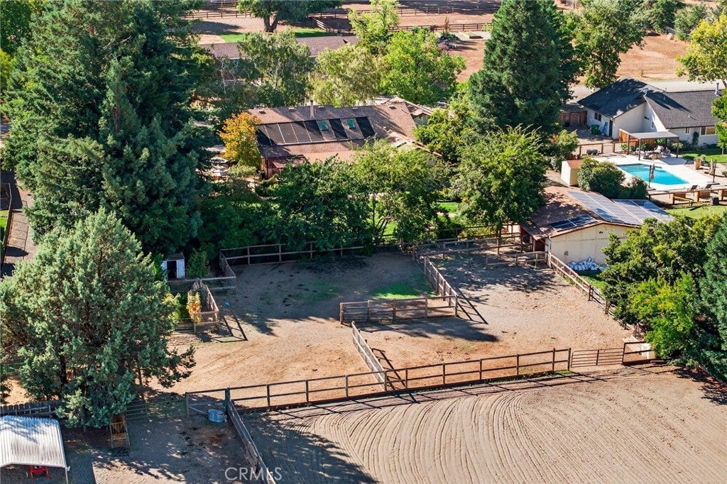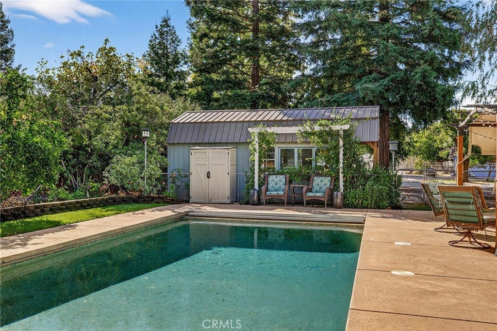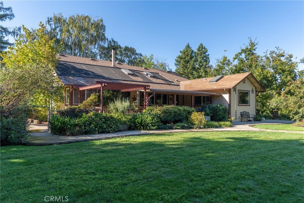 Tucked in the countryside just minutes from town, Roseanna Ranch is where modern comfort meets peaceful country living. This stunning 2.04-acre property has been lovingly renovated and designed for those who dream of wide-open spaces, horses in the pasture, and sunsets over the arena. The beautifully remodeled farmhouse spans approximately 2,100 sq. ft. with 4 bedrooms and 2 bathrooms, offering the perfect blend of rustic charm and modern sophistication. Inside, Italian tile flows throughout the main living spaces, luxury vinyl plank flooring accents the bedrooms, and custom wood flooring adds character to the first floor. The spacious living room features a vaulted knotty pine ceiling with skylights that fill the home with natural light, while an efficient Heat Tech wood stove adds cozy ambiance. The kitchen is a showpiece with quartz/Cambria countertops, stainless steel appliances (new in 2019 & 2023), a garden bay window, and a dining room addition with skylights and built-in china cabinets. The primary suite includes a walk-in shower, a walk-in closet, and elegant finishes. Updates include new doors and windows, crown molding, a whole-house vacuum, fan, Culligan water softener, filtration system, and a new HVAC unit. Step outside and fall in love with the fully fenced and gated acreage, featuring manicured lawns, redwood, birch, crepe myrtle, and maple trees surrounded by colorful perennials and blooming roses. A solar-heated pool with a large patio area provides the perfect setting for entertaining, while raised garden beds and a fenced orchard offer a touch of farm-to-table living. For equestrian lovers, this property is a dream come true. The two-stall barn features paddocks, a tack room, hay storage, a large farm sink, a full bathroom with hot water, electric fans, and washer/dryer hookups. A 110’x120’ riding arena with sprinklers and excellent footing sits beside a half-acre pasture with irrigation and RV or trailer storage. There’s also a chicken coop, fenced garden, and space for tractors and equipment. A 12’x24’ detached studio with split HVAC, insulation, and electric is perfect as an art studio, office, or guest space. With 40 owned solar panels on the barn, a new well pump and casing (2023), and Byers LeafGuard gutters, this property offers beauty, efficiency, and peace of mind. Roseanna Ranch is more than a property; it’s a lifestyle of comfort, connection, and country charm just minutes from town and local schools.