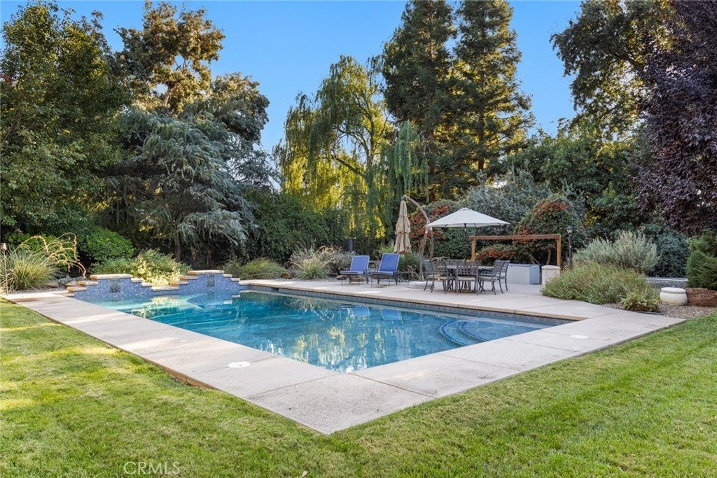 Exceptional North Chico home on an oasis like 1.48-acre parcel. Featuring 3beds/3baths plus office or 4th bed, custom wood craftsmanship and built ins throughout, gourmet kitchen with island, and a huge 24'x39' family room with wet bar. Enjoy formal living and dining, a spa like master suite and a cozy wood-burning fireplace. Outside offers lush landscaping with an in-ground 20x40 salt water pool, outdoor shower, expansive patio, two raised garden bed areas, chicken coop, and plenty of RV parking. The 12x13 shop features both vaulted and covered concrete storage. Includes 3-car garage and 13.7KW solar system w/ generator hookup. A rare blend of craftmanship, comfort, and outdoor living. This property truly has it all! Check it out.