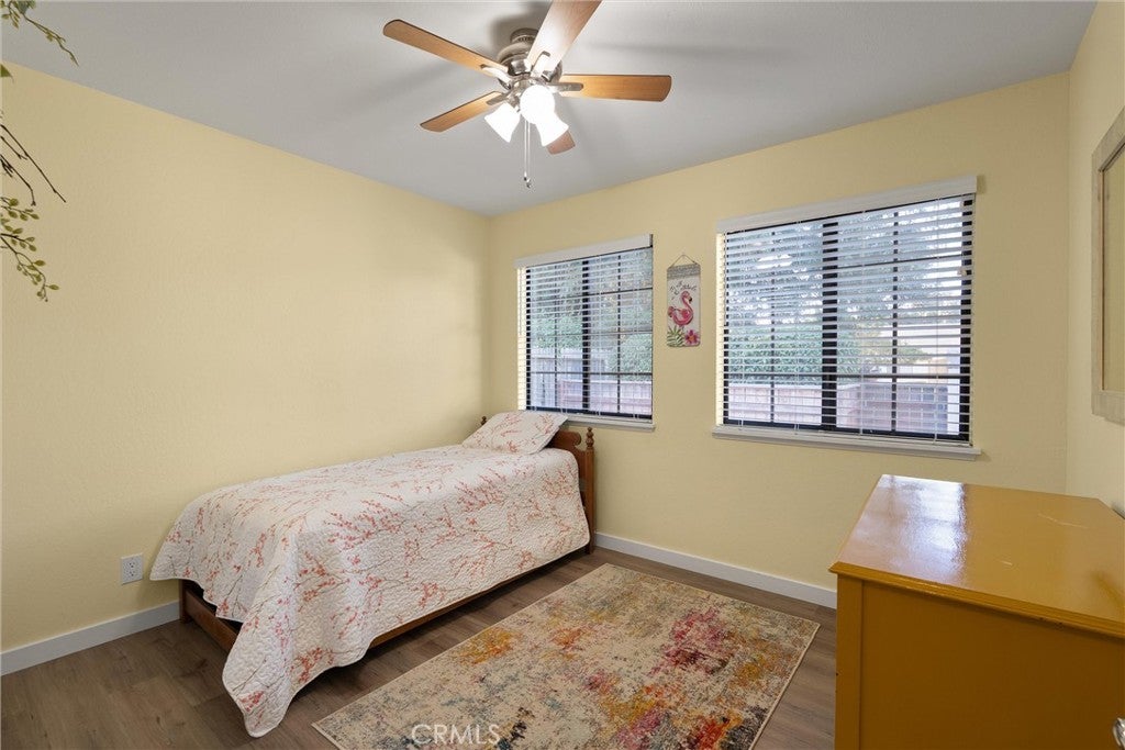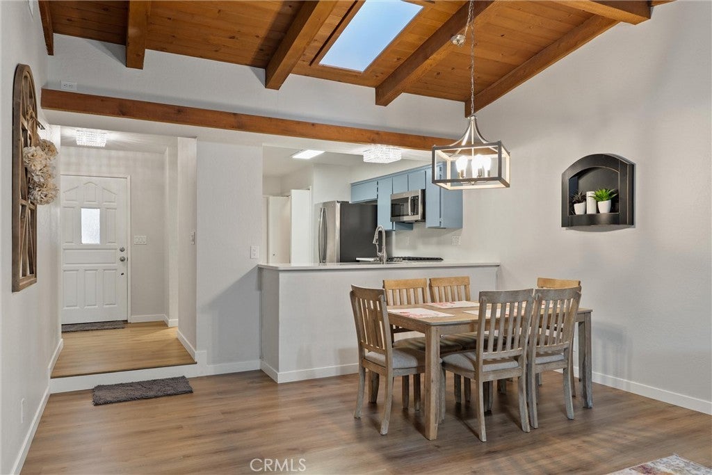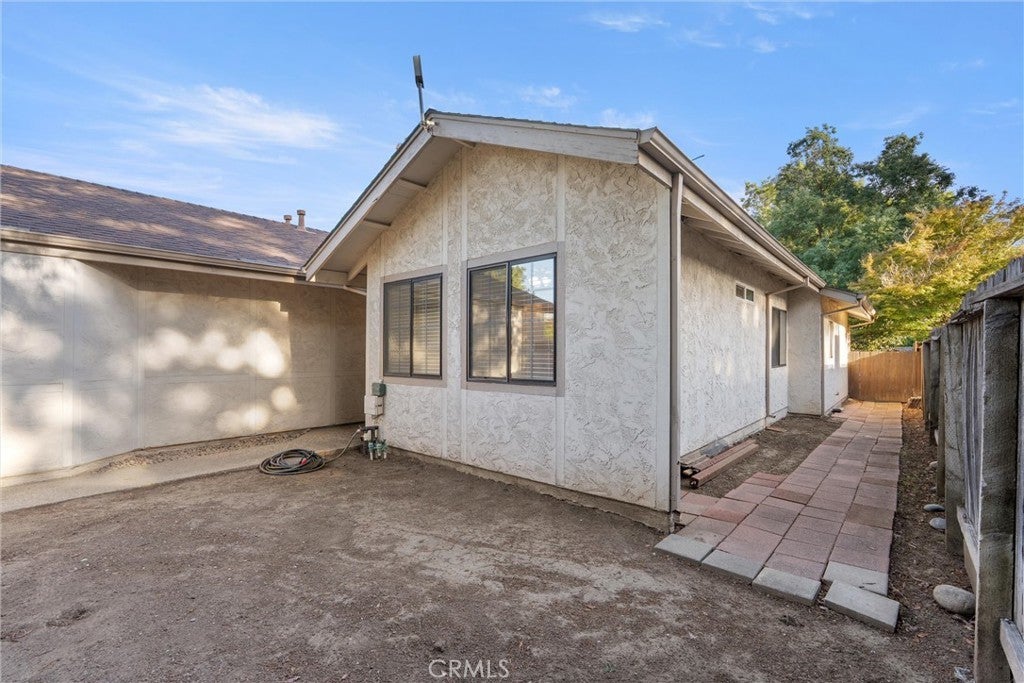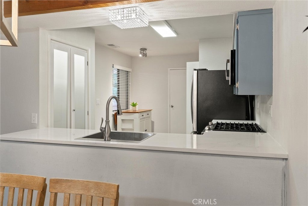 Step into this rare find — a single-story condo that lives like a single-family home, sharing only one wall and offering both a front yard and a spacious, fully fenced backyard with mature citrus trees. Monthly HOA dues are a mere $150! Inside, you’ll find a wood beam cathedral ceiling with tongue-and-groove detail and exposed beams that add warmth and character. A brick wood-burning fireplace anchors the living room, creating a cozy focal point with views of the private backyard through large sliding doors. The kitchen blends farmhouse charm with modern touches: quartz countertops, plenty of workspace, and a 5-burner gas range that makes it a dream for home cooks. Matching stainless appliances — refrigerator, microwave, and dishwasher — plus frosted-glass pantry doors and space for a breakfast nook or rolling island make this kitchen both stylish and functional. The primary suite enjoys a separate entrance from the guest bedrooms, offering privacy and flexibility — ideal for roommates, guests, or working from home. Down the hall, the two guest bedrooms share a nicely remodeled bath featuring a granite countertop and tile-wrapped shower/tub enclosure. Additional highlights include laundry hookups with electric dryer connection, a 1-car attached garage, and thoughtful details throughout. The private backyard is larger than you’d expect for a condo — perfect for gardening, pets, or relaxing under the trees. Between the sunny front yard, enclosed backyard, and single-level floor plan, this condo offers the comfort and independence of a home with the ease of condo living. Enjoy cathedral ceilings, a brick fireplace, and modern finishes in a peaceful setting that’s close to everything Chico has to offer. It’s a rare combination of space, privacy, and character — all wrapped into one inviting package.