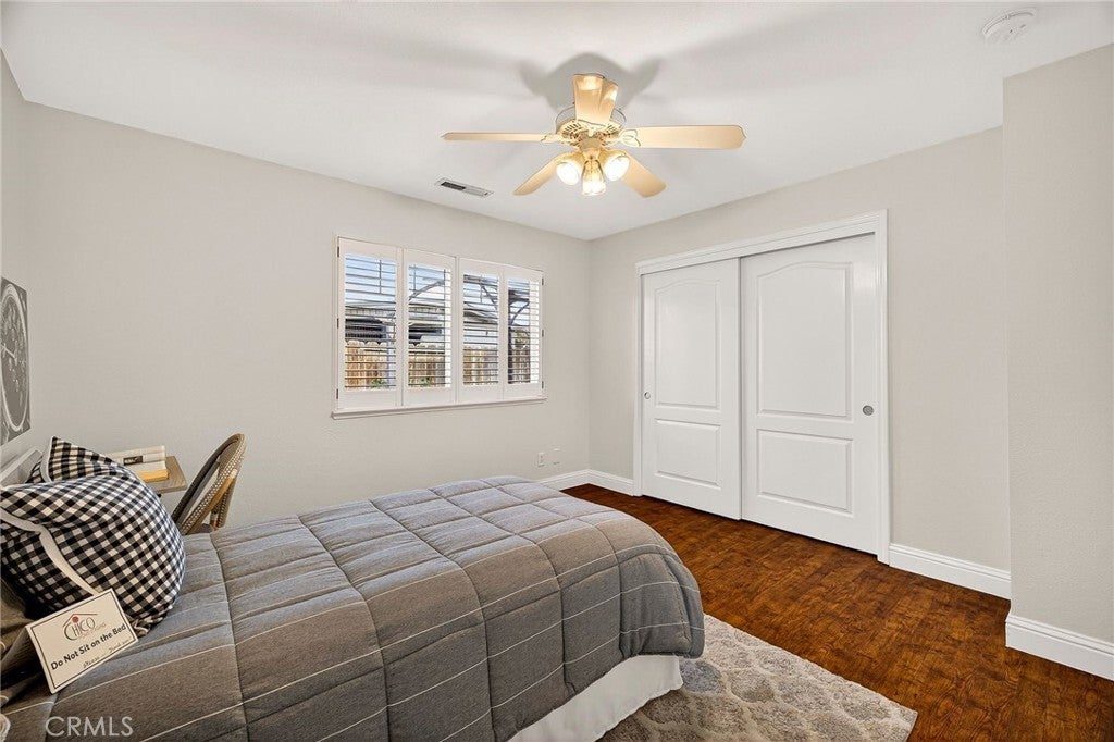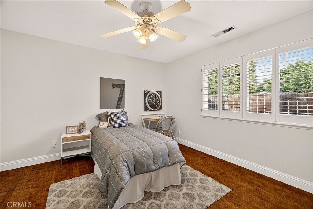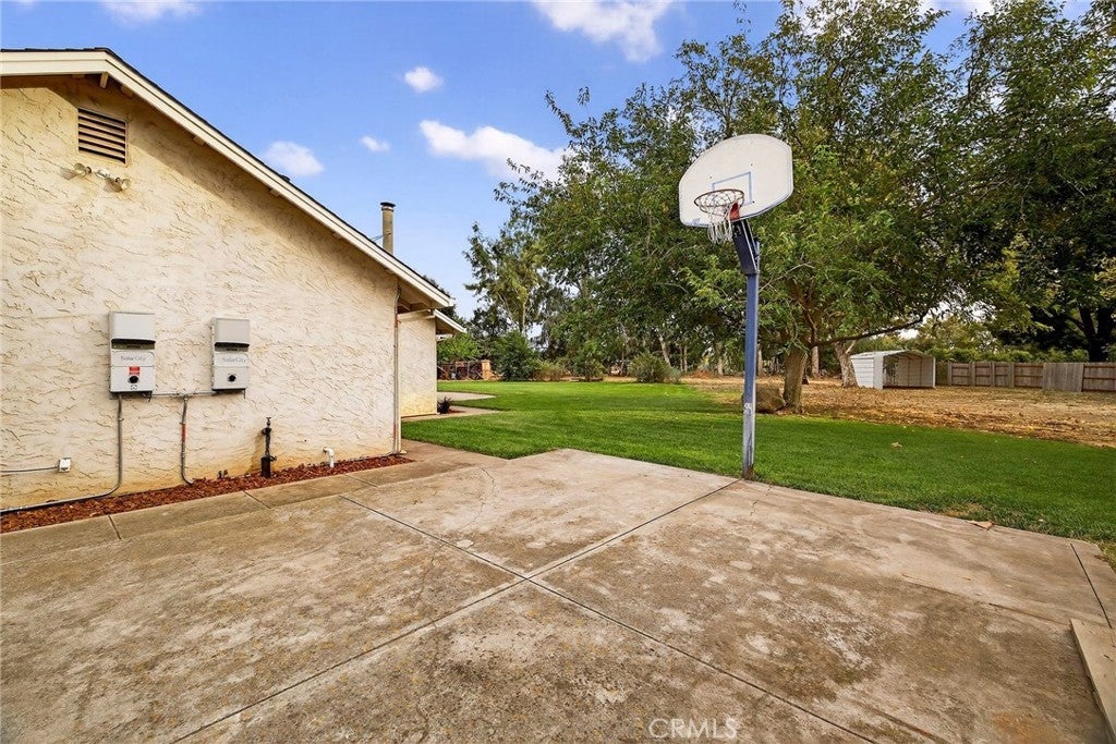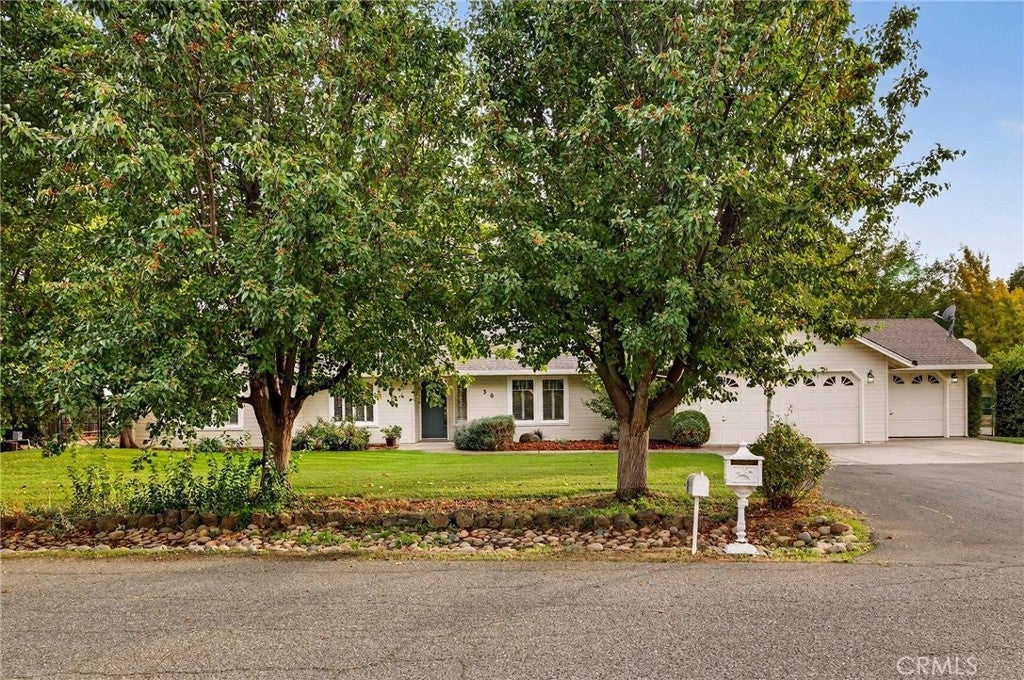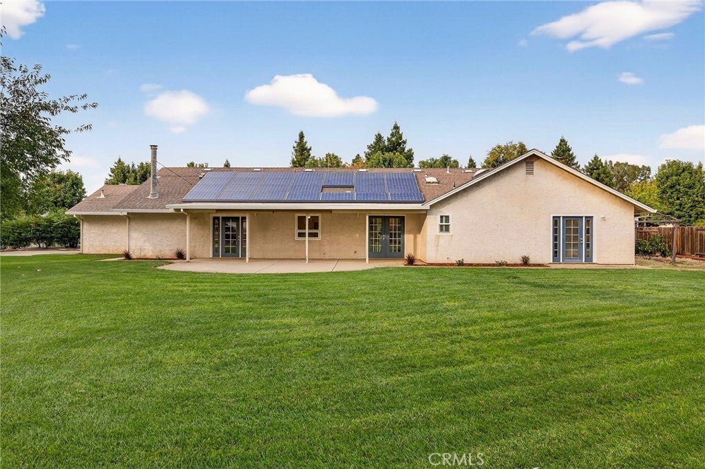 Located on the north side of Chico on a cul-de-sac, this spacious ranch-style home is nicely updated and ready for a new owner. As you step into the home, you are welcomed by a spacious living room with vaulted ceilings, vinyl wood type flooring, and French doors that lead to the backyard. The gourmet kitchen includes quartz counters, a breakfast bar, stainless steel appliances, and a gas convection oven. This home is perfect for entertaining with an open family room off the kitchen with a free-standing wood stove and views of the backyard. The primary bedroom has its own private access to the back patio, and the primary bathroom has dual sinks, quartz counters, and dual shower heads in the walk-in shower. Other amenities include a separate dining room, a 3-car garage, spacious bedrooms, an indoor laundry room with a utility sink, ceiling fans, a whole-house fan, dual sinks in the main bathroom, leased solar panels, and a storage shed. The backyard is fully fenced, featuring RV access, fruit trees, and a nicely sized covered patio perfect for entertaining or relaxing. Check out this amazing home before it sells! You won't be disappointed.