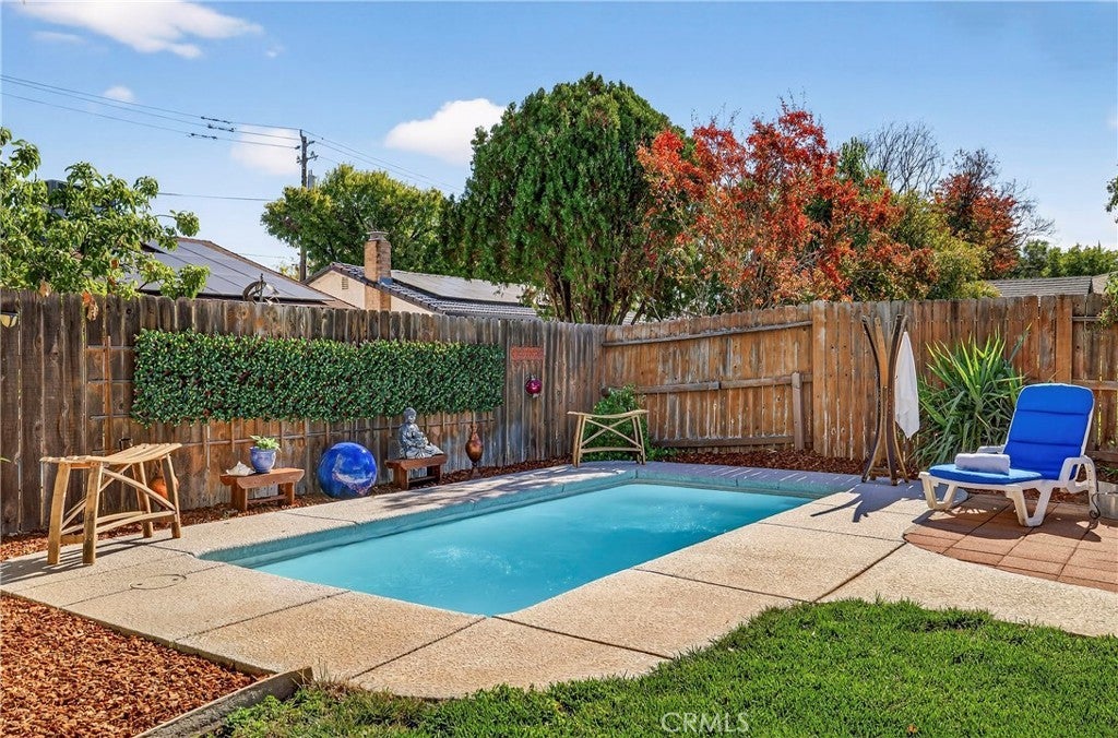 Welcome to La Casa Court—a peaceful cul-de-sac with no through traffic, perfect for families seeking both privacy and convenience. This charming 3-bedroom, 2.5-bath home features impressive soaring ceilings, spacious living areas, and an abundance of natural light. The formal living room, with elegant tile flooring and a cozy gas fireplace with mantel, provides an inviting space for both relaxation and entertaining.The home offers two large living spaces, perfect for multiple uses, from family movie nights to more formal gatherings. The functional kitchen, tucked in the corner for added privacy, provides a functional layout with plenty of storage and counter space. A spacious dining area adjoins the kitchen, creating a seamless flow for mealtime and entertaining. A spacious laundry room with ample storage and a convenient half bath complete the main floor. Upstairs, the private primary suite offers dual closets and an en-suite bath. Two additional bedrooms share a well-maintained second bath, offering plenty of space for family or guests. Step outside to the beautifully landscaped backyard with a covered patio and in-ground pool—perfect for enjoying all four seasons. There’s also space for your own vegetable or fruit garden, adding a personal touch to this outdoor haven. Located just minutes from Bidwell Park and within walking distance of Pleasant Valley High School, Marigold Elementary, and Bidwell Junior High, this home offers a prime location for families. Plus, it’s close to shopping, dining, and other amenities for added convenience.Don’t miss the opportunity to own this well-maintained home in a family-friendly neighborhood—it’s the perfect place to create lasting memories!