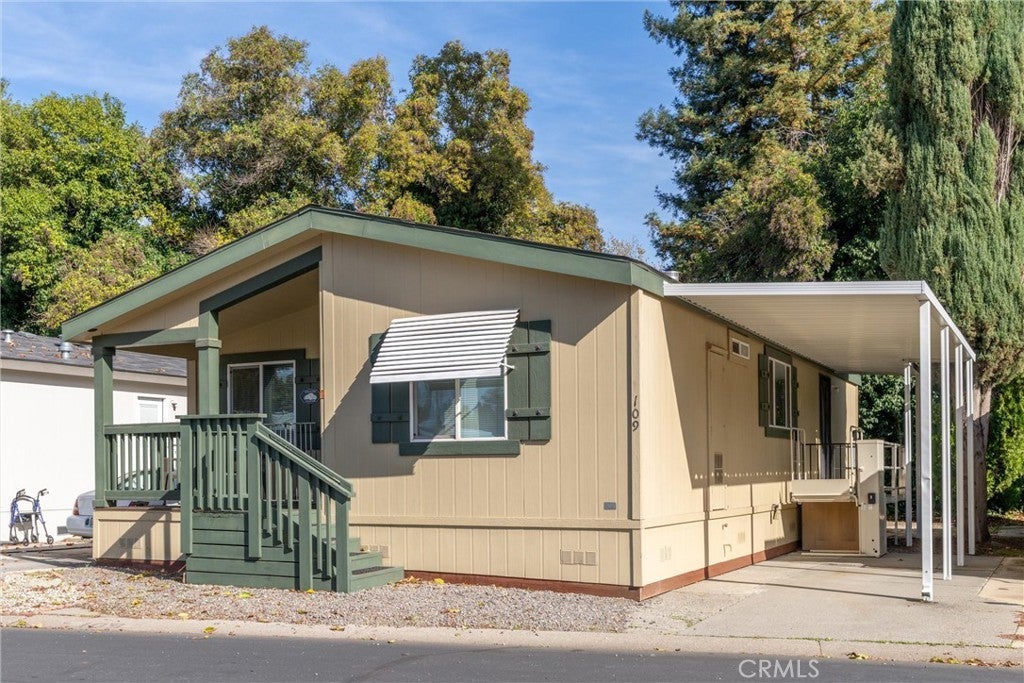 Welcome to 567 East Lassen Avenue Double Wide mobile home Space #109, located in the desirable Almond Grove 55+ Community. Built in 2019, this beautifully maintained turnkey home offers approximately 1,144 sq. ft. with 2 bedrooms and 2 bathrooms. Step inside to a bright open floor plan featuring a spacious living and dining area that flows effortlessly into a stylish kitchen with custom cabinetry, gas stove, microwave, and plenty of counter space—perfect for cooking and entertaining. This home has been thoughtfully designed for comfort and convenience with a newer roof, HVAC system, and a wheelchair-accessible lift. Enjoy the added benefits of a covered carport, storage shed, and low-maintenance landscaping. All major appliances are included—refrigerator, washer, dryer, and freestanding freezer—making this home truly move-in ready. Residents of Almond Grove enjoy a wonderful community atmosphere with access to a clubhouse, in-ground pool, and beautifully maintained common areas—ideal for gathering with friends and family. Conveniently located near shopping, dining, and public transportation, this property offers the perfect blend of modern comfort, active living, and peaceful surroundings in one of Chico’s most sought-after senior communities.