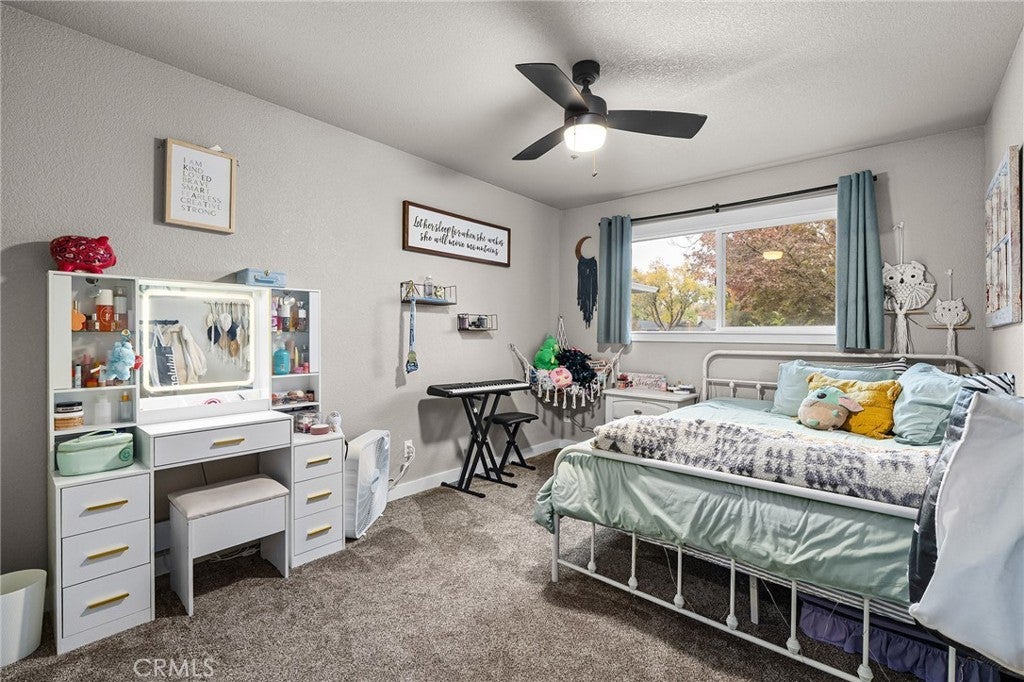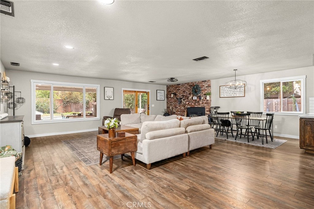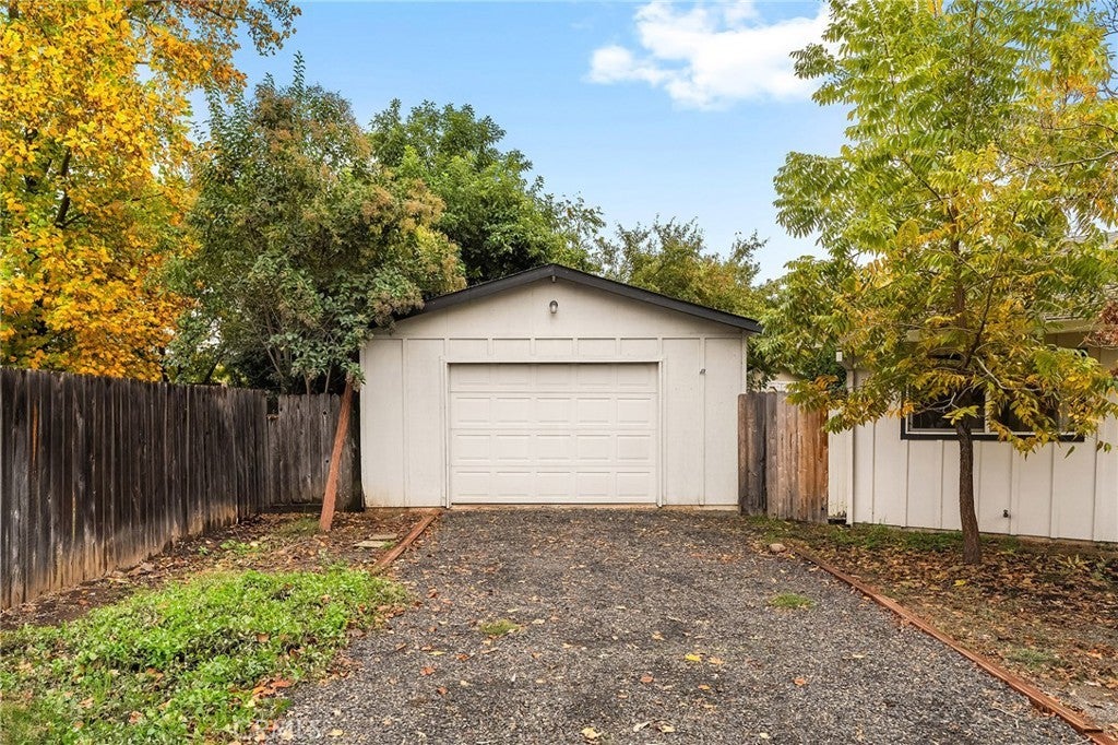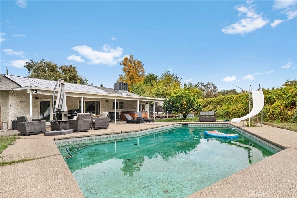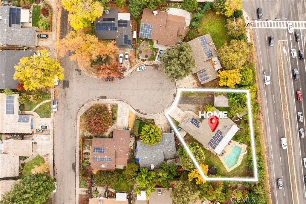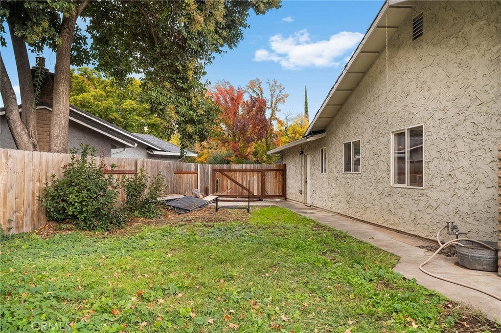 Nestled on a cul-de-sac just blocks from Lower Bidwell Park, this beautifully updated 4-bedroom, 3-bath home with an office offers the perfect blend of comfort, functionality, and charm. Over the past few years, nearly every surface has been refreshed — from new drywall, texture, and paint throughout to all-new lighting, fixtures, and appliances. Step inside to an inviting, well-designed floor plan with the bedrooms privately situated on one side and the main living spaces on the other. The spacious living room features warm laminate flooring, a classic brick fireplace, and abundant natural light with easy access to the backyard. The kitchen offers generous counter space, new appliances, and a large granite single-basin sink. The bathrooms have been stylishly updated with new tile and double sinks in both the hall and main bathroom, while three of the four bedrooms feature new plush carpet. Behind the scenes, the home has received major system upgrades including a new HVAC system, tankless water heater, added insulation, and solar panels with a new inverter for energy efficiency. The backyard is an outdoor retreat — complete with a large covered patio, mature fruit trees, a spacious lawn, and an in-ground pool with a slide for summer fun. A detached secondary garage with a roll-up door makes an ideal workshop, complemented by an additional storage shed. Located just minutes from Chico’s parks, trails, schools freeway access, and downtown, this move-in ready home truly checks all the boxes!