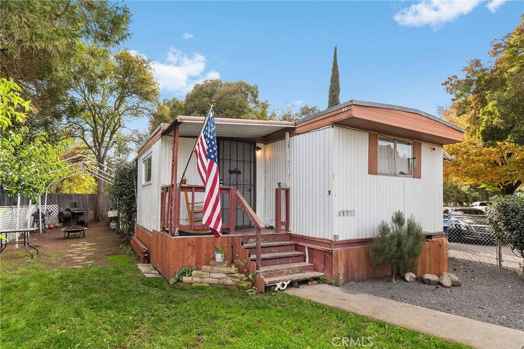 Welcome to 3156 Esplanade, Space 207, an inviting home in one of Chico’s most conveniently located family parks. With quick access to the freeway, minutes to shopping, dining, and local amenities, and one of the larger lots in the community, this 2-bedroom, 1-bathroom home offers the perfect blend of comfort, convenience, and outdoor space. Set on an oversized lot with lush green yard space and a fully fenced perimeter, this property gives you room to spread out, whether you’re gardening, relaxing outdoors, or creating a play area. Even better, the home backs to open space, giving you added privacy with no rear neighbors. Inside, the functional layout makes the most of its 720 sq. ft. High ceilings create an airy feel, and the home flows effortlessly from the front living area to the kitchen and down the hall to the bedrooms. Each space feels welcoming, practical, and easy to make your own. This all-ages family park offers amenities that enhance everyday living, including a community pool, open grassy areas, and shared spaces perfect for outdoor enjoyment. And with this home located just around the corner from the pool and common area, you’re close to everything while still tucked into your own peaceful corner of the park. Whether you’re looking for an affordable first home, a low-maintenance lifestyle, or a cozy space with room to enjoy the outdoors, Space 207 delivers comfort, convenience, and one of the best lot locations in the park. Come see why this one stands out.