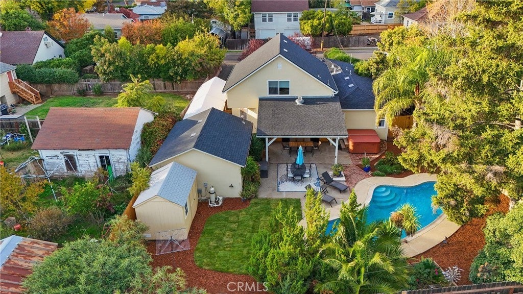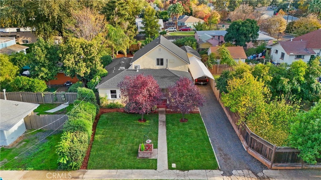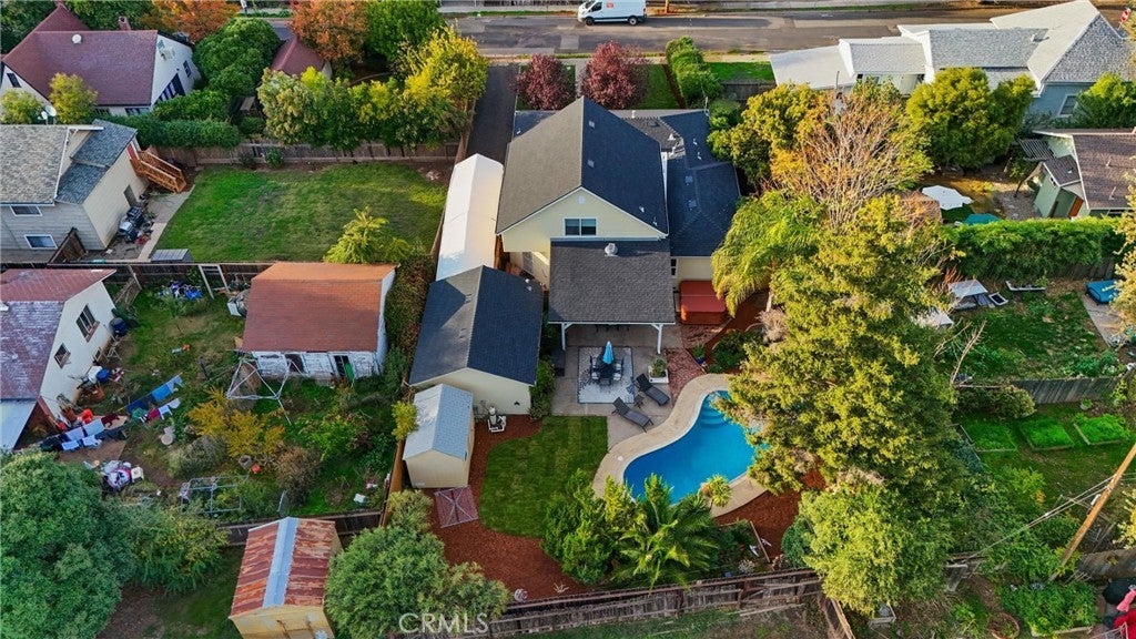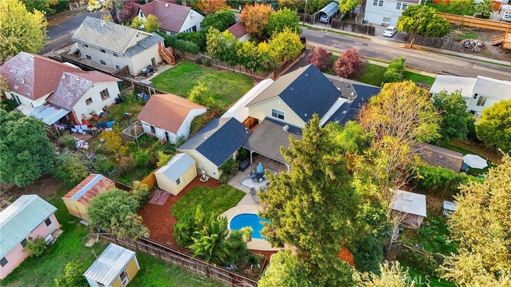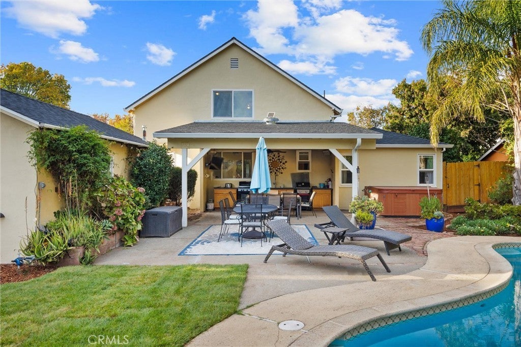 Welcome to this beautifully updated 4 bedroom, 3 bathroom Chico home located in the wonderful Barber district. From the inviting front porch to the remodeled kitchen and original hardwood floors in the dining room and bedrooms, this home blends timeless character with many recent updates. Inside, you’ll love the extra-large living area and the remodeled kitchen. There is an upstairs bonus room (possible 4ht bedroom!) with its own bathroom. Step outside and discover your very own summer sanctuary built for entertaining! Enjoy a covered patio with a full outdoor kitchen featuring a stove, BBQ, deep sink, TV, speakers, and ceiling fan. Cool off in the inground gunite pool (refinished 3 years ago), unwind in the spa, rinse off in the outdoor shower, or relax by the waterfall feature with plenty of seating for family and guests. The backyard also includes raised garden beds, a lawn area, side yard, shed, sprinklers, and an oversized one-car garage equipped with a utility sink, washer, dryer, shelving, and workspace—plus a long driveway offering plenty of off-street parking. Conveniently located near downtown, restaurants, shopping, and more, The home has just had a brand new roof as well as landscaping with an automatic irrigation!