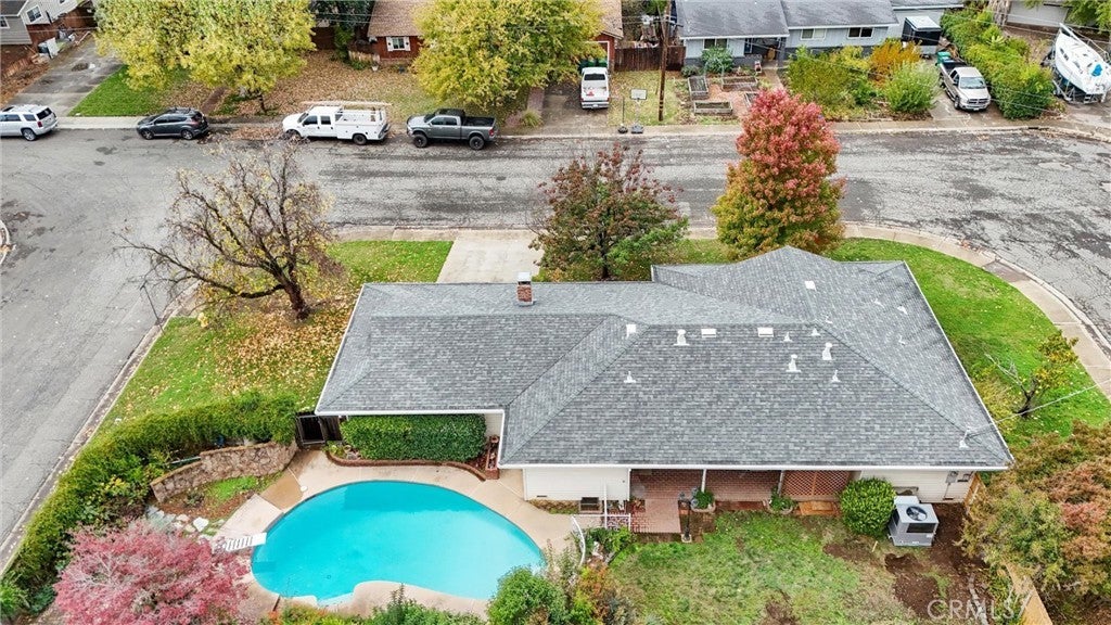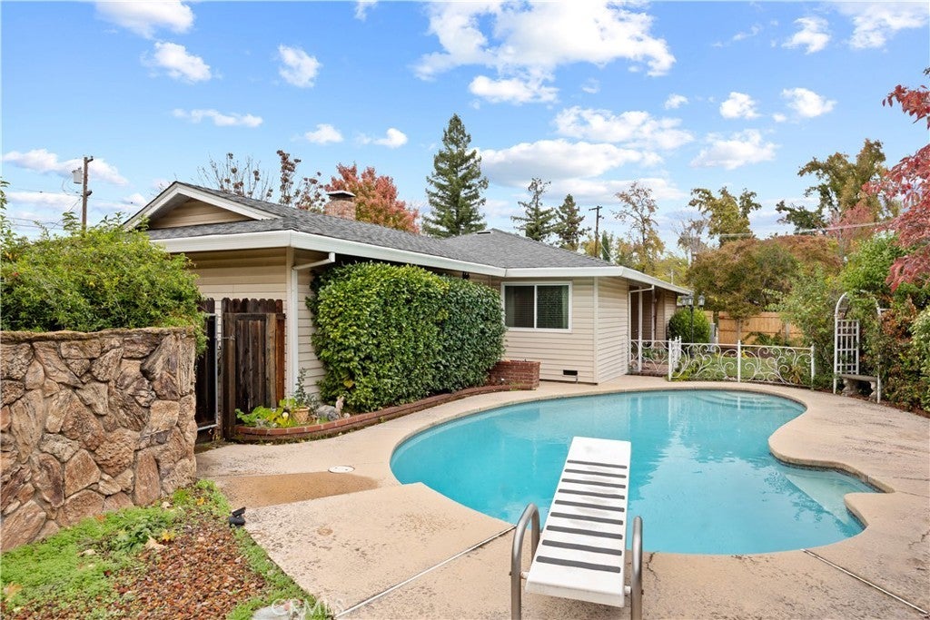Welcome home to a cozy warm fireplace in the Winter and a sparkling pool for those hot Summer days! This lovely 3 Bed - 2 Bath home sits on a corner lot with a large front yard and mature trees, hedges & flower beds. Kitchen has new granite counters, a breakfast nook and a great view of the backyard & fenced pool oasis. The sunken living room harkens back to yester-year when folks sat around a hearth near the fireplace backed by a rock wall. If it's not really a fireplace kind of day, the 3 year old HVAC and dual pane windows, will have you covered. Primary bedroom opens to ensuite bath with vanity and wide vanity and walk-in Shower. The large Dining room with extra living space opens to the back covered brick patio. Back yard is divided between yard & pool. Both spaces have beautiful landscaping, showing much care & design. Pool deck was well planned with spaces for lounging or feasting. Sturdy rock walls add beauty while hiding the pool equipment. Indoor Laundry Room opens to the kitchen and back patio. There's a workbench and storage in the 2 Car Garage. Located on a Circle with 2 culdesacs, this is a destination street, near schools, shopping and restaurants. You owe it to yourself to see this one.
