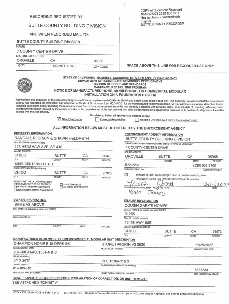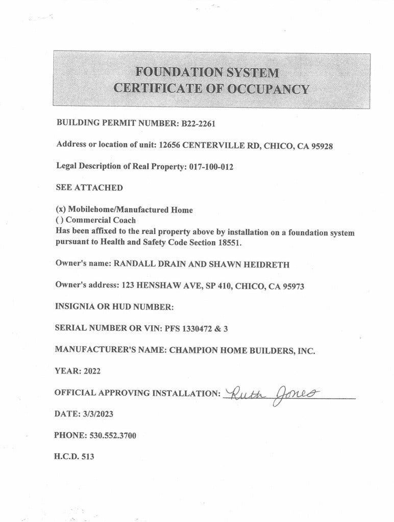 Would you like to live with peace and serenity, dramatic views and the sound of a creek everyday...? What if the 1 acre property also included a beautiful 2 year old, 3 Bedroom, 2 Bath home, secure storage building, deer-protected fenced garden and a very cool "cabin" that could make an awesome guest quarters or man-cave..? If that sounds like peace on earth, you must see 12656 Centerville Road in Chico's highly desired Butte Creek Canyon..! The home was built in 2022 in an indoor facility of the same materials that all houses include so it was not subject to weather conditions during construction. It was placed on the property in 2023 after the Camp Fire claimed the original house. The home has a permanent foundation system that allows it to have the same long-term conventional financing that on-site built homes qualify for. The 3 bedroom, 2 bath home is beautiful with an open efficient floor plan that even provides a walk-in closet for every bedroom. The spacious "cooks delight" kitchen features stainless steel appliances and a farm-style sink, numerous beautiful cabinets and countertops. You will enjoy that the grounds are well-maintained with a "cabin" that was once habitable and has received e lot of repairs but also has more needed with some materials on-site. Look at the photos and then call your favorite Chico real estate agent for a showing and maybe be in your new beautiful home for Christmas or a wonderful spring..! Property is 7.6 miles or 15 minutes from the Raley's on Notre Dame Blvd.