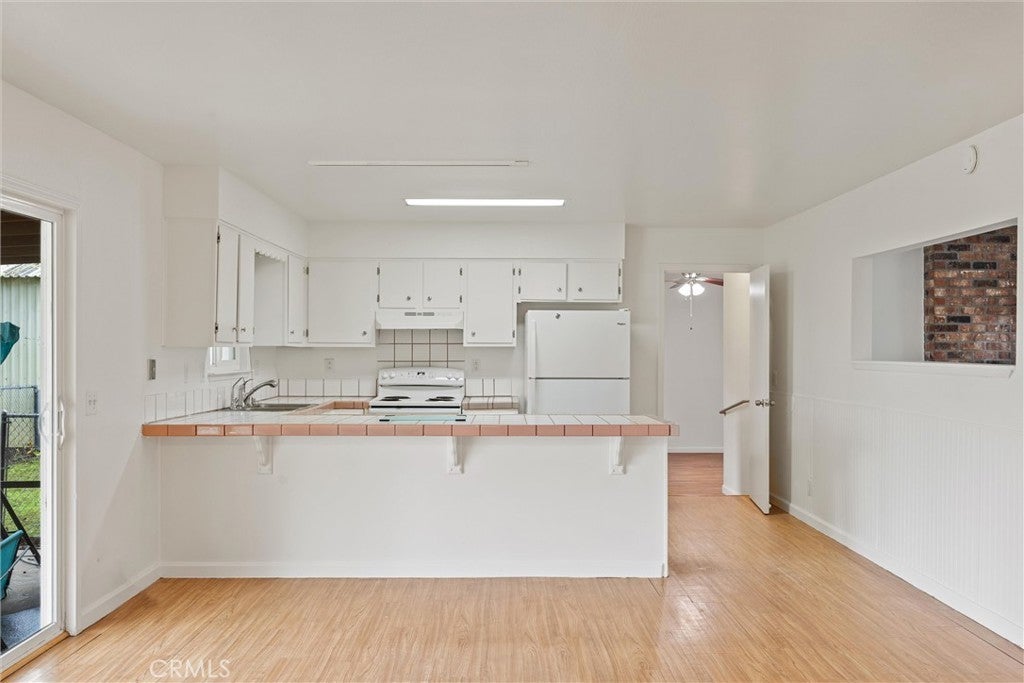 Breakfast Bar, Ceiling Fan(s), Separate/Formal Dining Room, Tile Counters, Primary Suite, Chair Rail