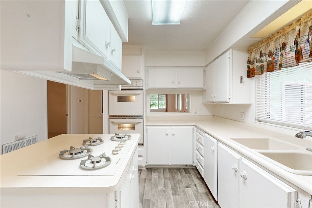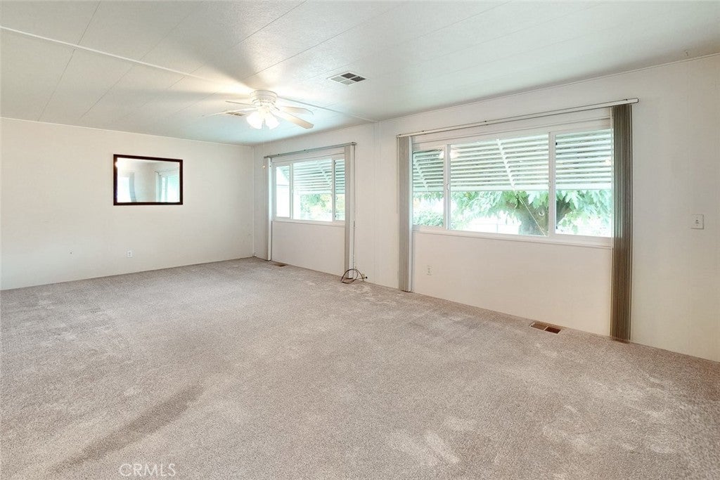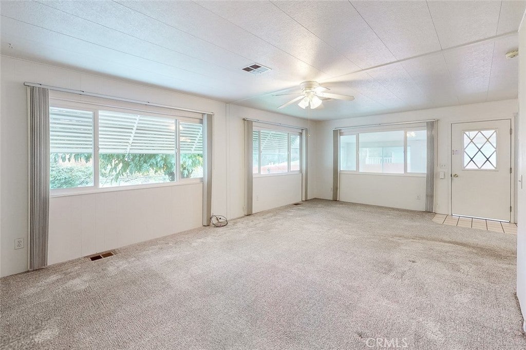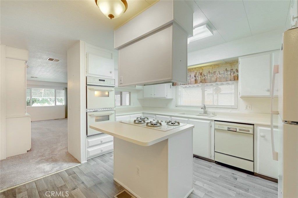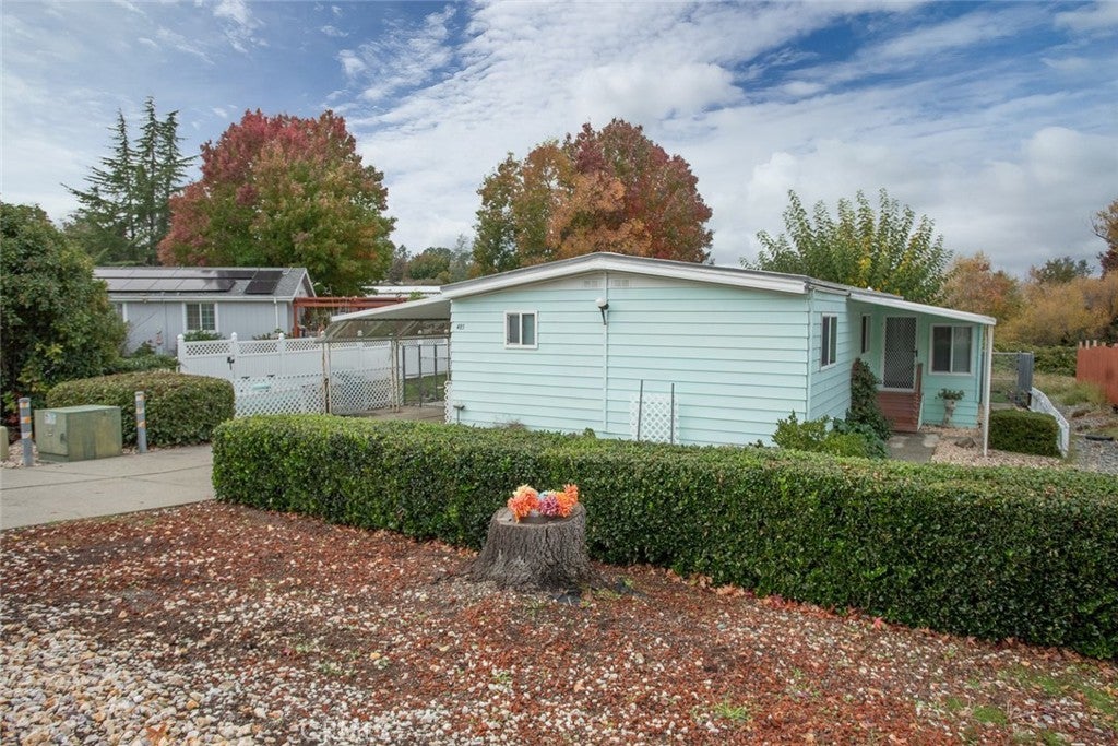 Get ready to fall in love with this exceptionally clean 2-bedroom, 2-bathroom manufactured home, securely set on a 433A foundation in the desirable Kelly Ridge area of Oroville! This home is ready for its next owner with big-ticket upgrades already handled! You'll stay comfortable year-round thanks to the HVAC system replaced in 2022 and the new water heater installed in 2023. Step inside and enjoy the fresh feeling of new living room carpet from 2023 paired with beautiful, new luxury vinyl plank flooring in the kitchen, hall, and laundry areas. Plus, peace of mind comes with knowing all the plumbing was replaced in 2011, and the home features double-pane windows throughout for energy efficiency. The foam roofing is approximately 11 years old. The kitchen is a chef's dream, boasting tons of storage, including a walk-in pantry, a gas range, double ovens, and all appliances, including the dishwasher and refrigerator, are ready to go. You'll also appreciate the separate indoor laundry room, complete with a washer, electric dryer, and extra storage space. The large living room is flooded with natural light, and the dining room features charming built-ins and a convenient pass-through window to the kitchen. The large primary bedroom offers abundant built-in storage and a generous closet, along with an ensuite bathroom featuring a walk-in shower. A second, well sized bedroom, sits off the kitchen. An added bonus is the sunny, enclosed sunroom off the living room, with double-pane windows—a perfect spot to relax! Outside, this clean property is fully fenced, and there is a spacious, covered, attached carport. This space is fantastic, offering two separate storage sheds and a handy little workshop with power! Best of all, the backyard provides a lovely view out to the former golf course, now enjoyed as the local frisbee golf course. Don't miss the chance to own this wonderful, turn-key property!