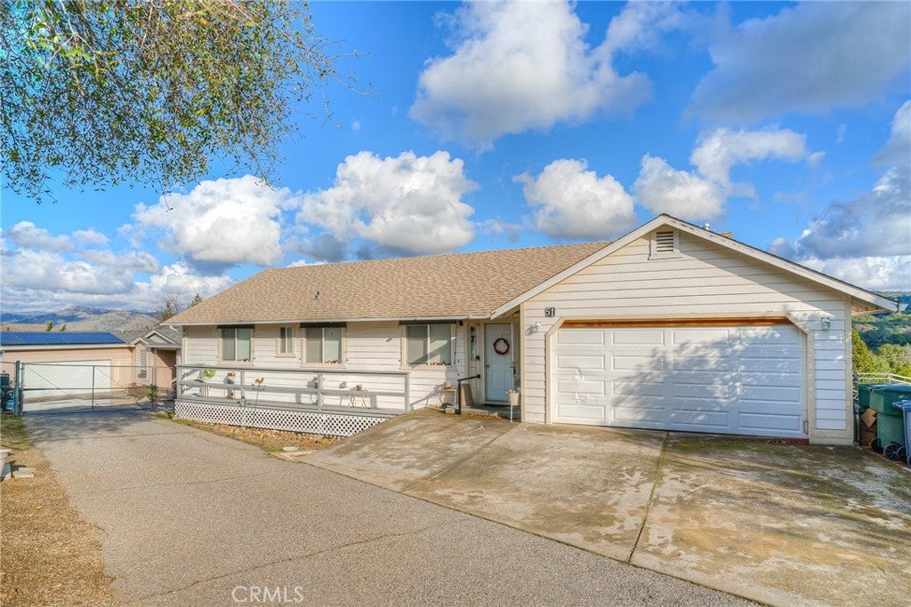 Comfortably positioned just above Lake Oroville, this inviting three-bedroom home enjoys filtered lake views along with scenic vistas of the surrounding hills. Thoughtfully designed with an open floor plan, the home offers a sense of space and connection without feeling oversized or formal—ideal for both everyday living and entertaining. The welcoming living room is oriented toward the front of the home, while the spacious family room opens to the rear outdoor living area. From here, a sliding glass door opens to the upper rear deck, with steps leading from there down to a second deck and the backyard beyond. This fully fenced area offers the perfect space for relaxing, dining, or hosting gatherings. Centrally located, the kitchen features a practical and efficient layout with ample cabinetry, including convenient pull-out storage, and flows seamlessly into the living, dining, and family rooms. The private owner’s suite includes its own bathroom with a walk-in shower and direct access to the rear deck, creating a peaceful retreat with outdoor connection. Additional highlights include central heating and air conditioning, solar power, and an exceptional location offering easy access to Lake Oroville and the area’s abundant recreational opportunities such as boating, fishing, hiking, biking, horseback riding, and camping.
