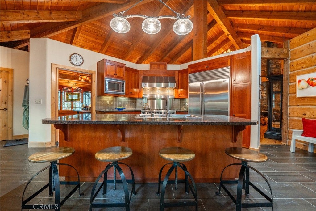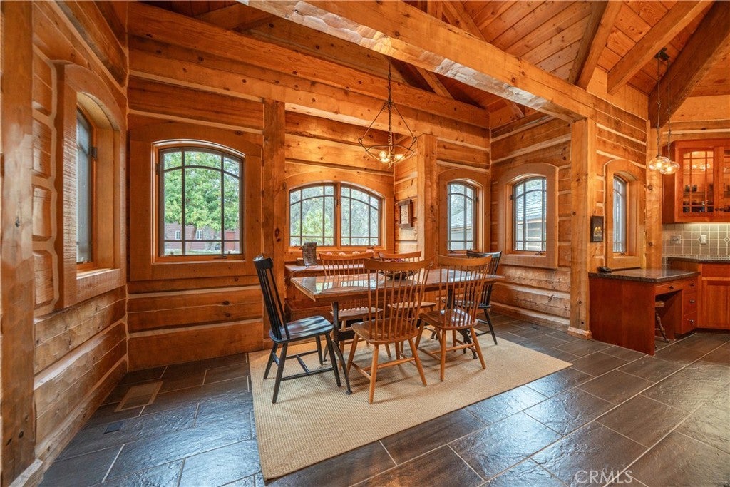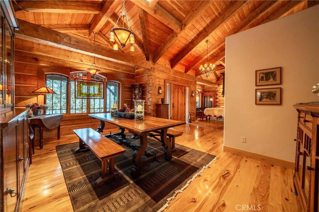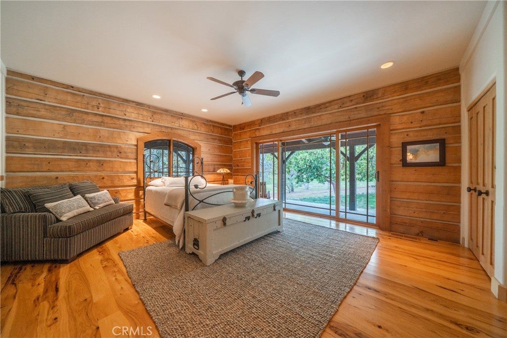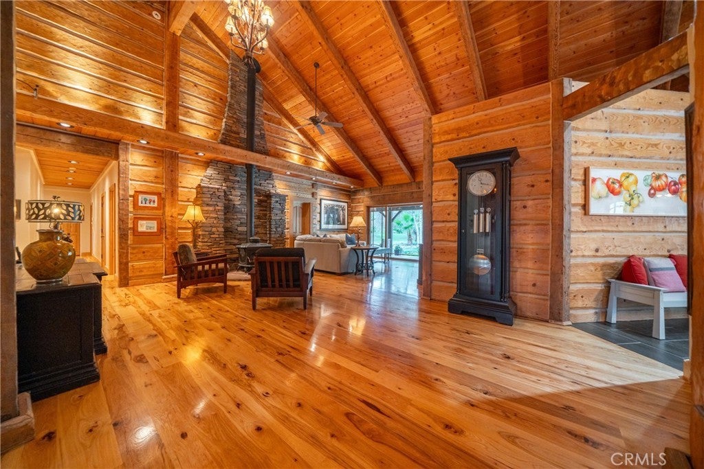 Incredible Custom Hand-Hewn Log Home on 5 Private Acres Prepare to be amazed by this one-of-a-kind, custom-built hand-hewn log home that perfectly blends rustic charm with modern elegance. *Scan the QR code (picture #2) to experience a 3D Virtual Tour!* Featuring 12-foot walls and soaring 25-foot ceilings, this architectural masterpiece offers a warm yet luxurious atmosphere throughout its nearly 3,500 sq. ft. of living space. Inside, you'll find hickory plank hardwood floors, granite countertops, and a commercial-grade chef's kitchen equipped with premium appliances. The stone hearth wood-burning fireplace creates a stunning focal point in the great room, while arched windows fill the home with natural light and showcase views of the surrounding landscape. With 4 spacious bedrooms—each featuring at least one wall of exposed logs—and 3.5 beautifully appointed bathrooms, this home offers both character and comfort. Step outside to enjoy the full wraparound covered porch, perfect for relaxing or entertaining. The in-ground gunite pool, garden boxes, and built-in fire pit make outdoor living exceptional. A poured concrete driveway and sidewalks are finished with natural, wavy edges and etched twig-and-leaf details for a custom artisan touch. Additional highlights include a Metal Class A fire-rated roof, detached 4-car garage, detached metal shop, and walking paths throughout the property. Every inch of this home reflects craftsmanship, creativity, and care. This absolute stunner and truly one of a kind was featured in Log Home Design magazine and found a spot in Redding, California's AAUW prestigious annual home tour.