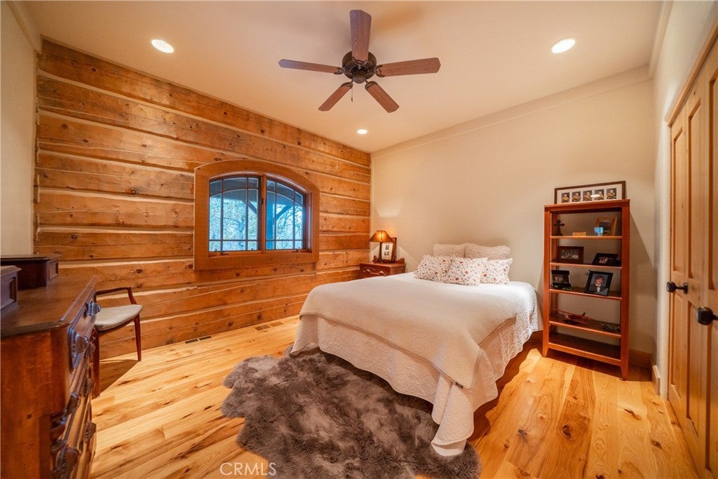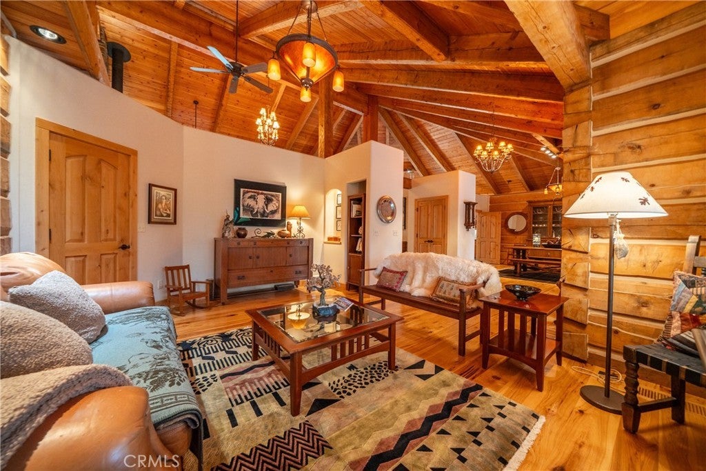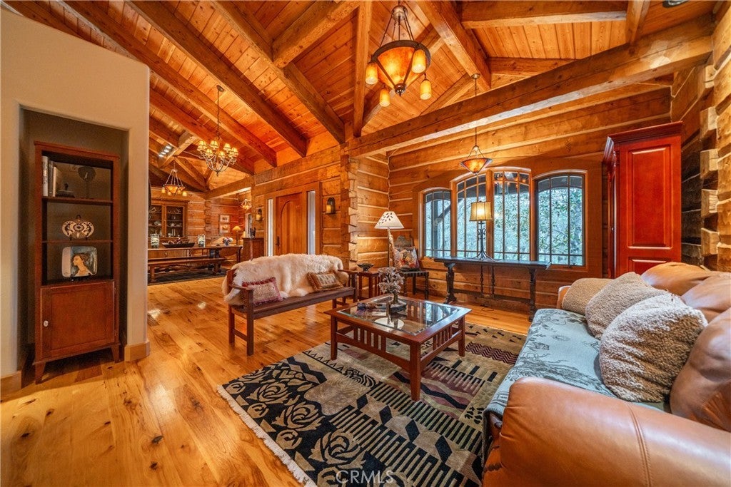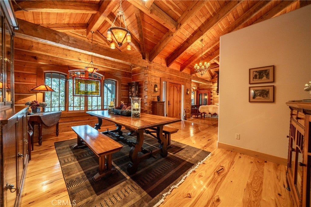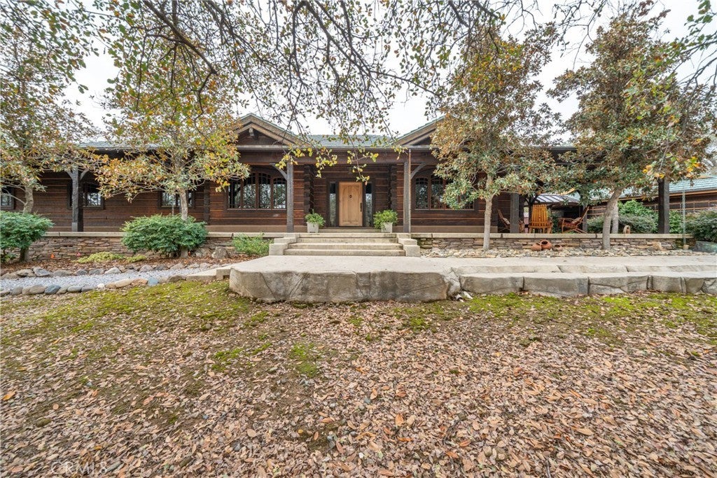 Incredible Custom Hand-Hewn Log Home on 5 Private Acres Prepare to be amazed by this one-of-a-kind, custom-built hand-hewn log home that perfectly blends rustic charm with modern elegance. Featuring 12-foot walls and soaring 25-foot ceilings, this architectural masterpiece offers a warm yet luxurious atmosphere throughout its nearly 3,500 sq. ft. of living space. Inside, you'll find hickory plank hardwood floors, granite countertops, and a commercial-grade chef's kitchen equipped with premium appliances. The stone hearth wood-burning fireplace creates a stunning focal point in the great room, while arched windows fill the home with natural light and showcase views of the surrounding landscape. With 4 spacious bedrooms—each featuring at least one wall of exposed logs—and 3.5 beautifully appointed bathrooms, this home offers both character and comfort. Step outside to enjoy the full wraparound covered porch, perfect for relaxing or entertaining. The in-ground gunite pool, garden boxes, and built-in fire pit make outdoor living exceptional. A poured concrete driveway and sidewalks are finished with natural, wavy edges and etched twig-and-leaf details for a custom artisan touch. Additional highlights include a Metal Class A fire-rated roof, detached 4-car garage, detached metal shop, and walking paths throughout the property. Every inch of this home reflects craftsmanship, creativity, and care. This absolute stunner and truly one of a kind was featured in Log Home Design magazine and found a spot in Redding, California's AAUW prestigious annual home tour.