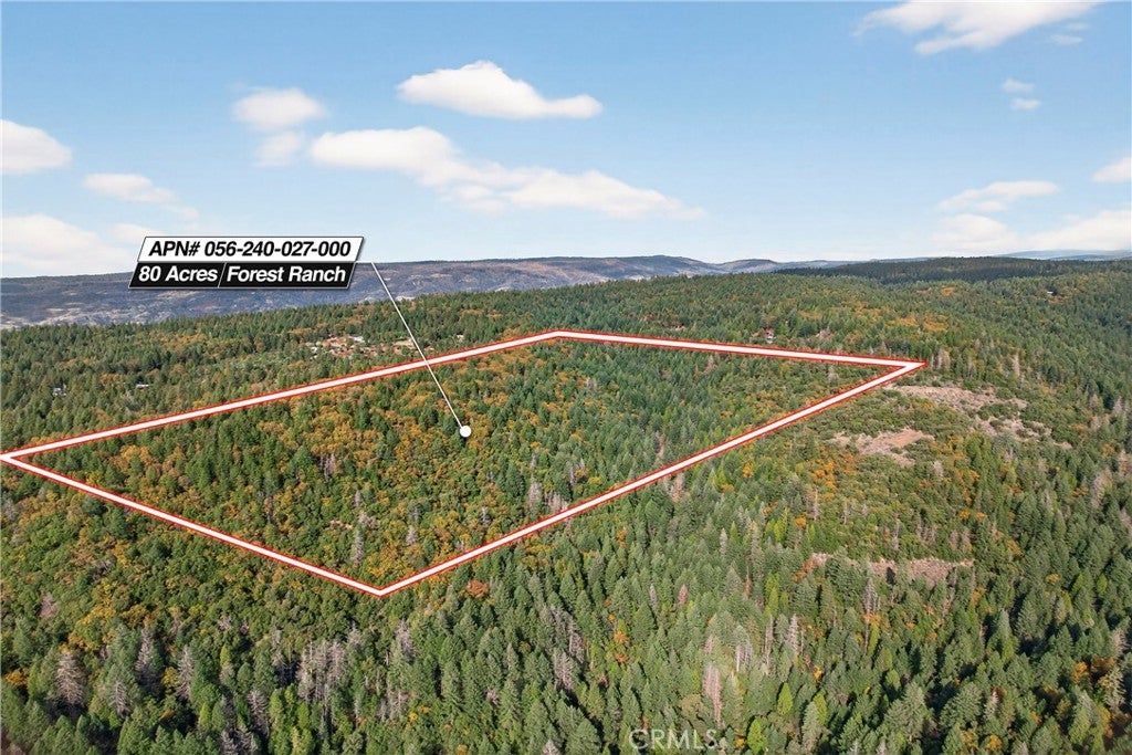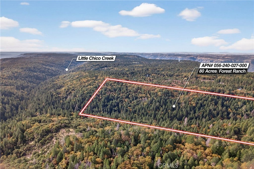 Peaceful Forest Ranch setting just 20 minutes from Chico, with cooler summer temperatures, sunny days above the valley fog in winter, and that mountain-community charm. This 80-acre parcel combines accessible terrain with complete privacy. Enter the property on to roughly ten-acres of gently sloping ground with several options for building sites, before dropping into a forested canyon with a seasonal creek winding through. Bordered on two sides by Sierra Pacific Industries timberland and on the others by five-acre parcels, you’ll have both elbow room and a buffer of open space. Selective tree clearing could reveal sweeping views toward the Sierra foothills. Access is via a private dirt road with an easement across the neighboring parcel. PG&E power runs nearby on adjoining land. Whether you’re dreaming of an off-grid home, your custom mountain retreat, or long-term land investment, this property offers a rare mix of space and seclusion with proximity to town.