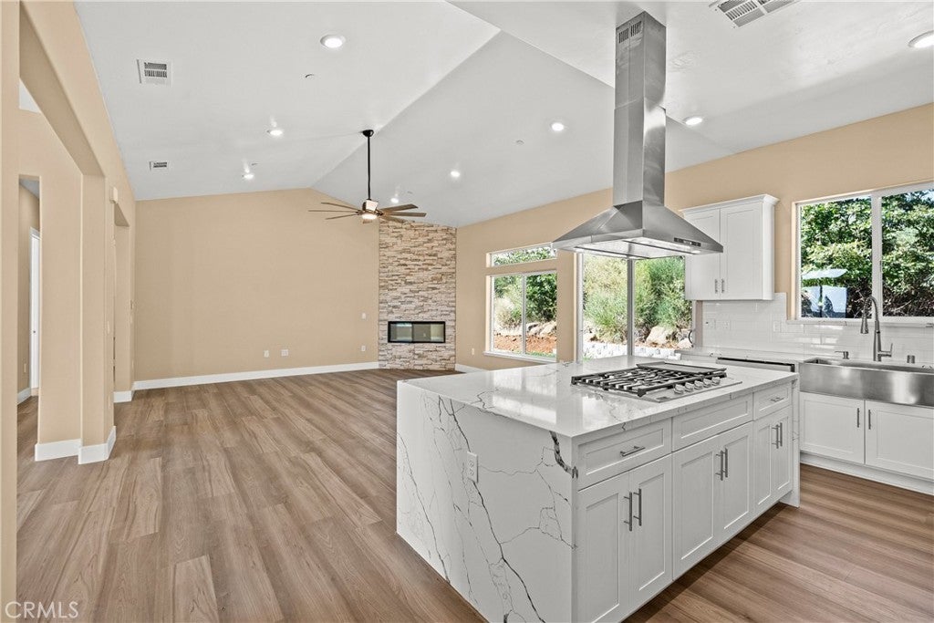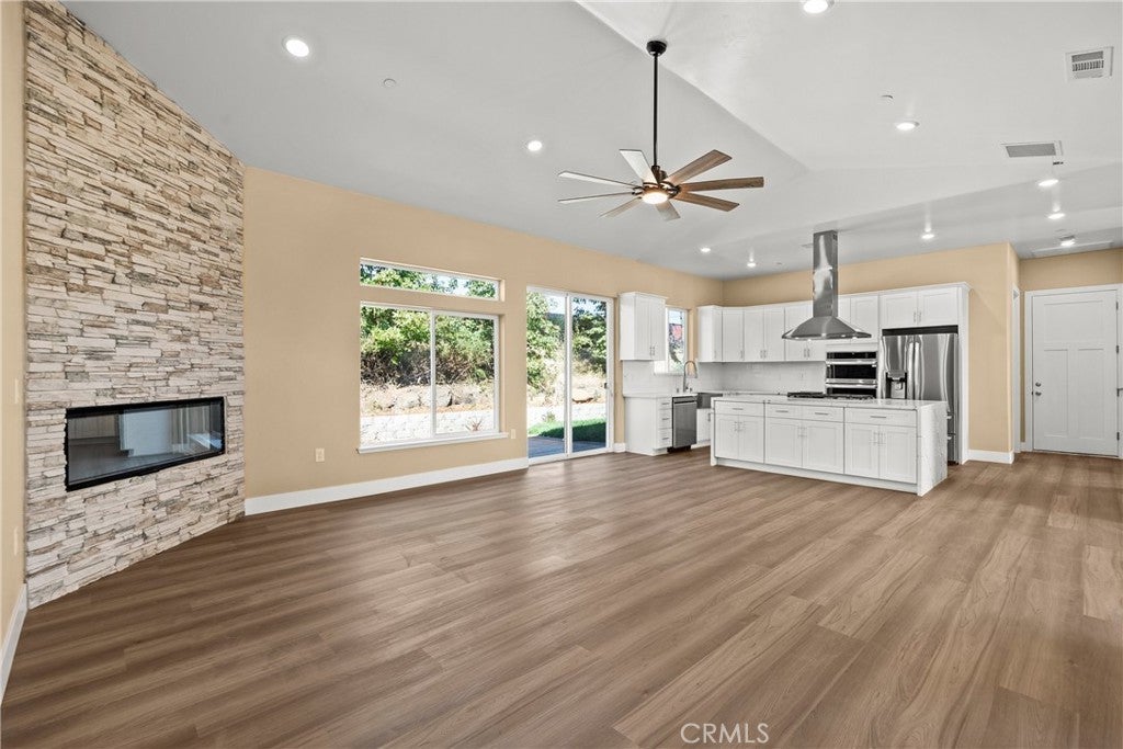 Welcome to the home in the location you've been waiting for! Tucked back on a quiet cul-de-sac of conforming homes with OWNED SOLAR, this home is sure to impress. Through the double front doors, you are greeted into the foyer which includes a coat closet to the left, and formal dining area to the right, then leads you into the open and airy living area. The living area features a vaulted ceiling, modern ceiling fan, a cozy electric fireplace with floor to ceiling stone detail, and a large slider leading to the low-maintenance backyard. The gourmet kitchen features quartz countertops with a waterfall island, LG stainless steel appliances, a gas cooktop, walk-in pantry, and farmhouse sink. This sought after split floor plan, provides a private primary suite that contains a walk-in closet, and attached bathroom that includes a dual sink vanity, soaking tub, and step-in shower. On the same end of the home is a half bathroom, and large laundry room with tons of cabinet and counter space. At the other end of the home are the 2 guest bedrooms, and guest bathroom. Additional features include a whole house fan, 2 car garage, exterior stamped concrete and so much more!