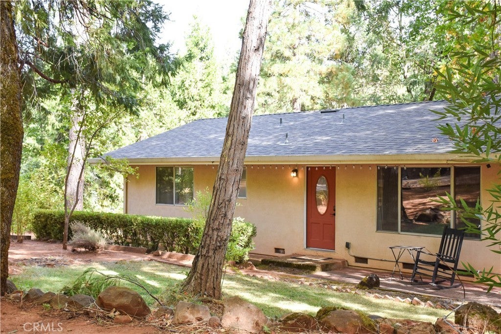 This inviting updated home offers peaceful mountain living just 12 miles from Chico! With .59-acres, the property sits among mature trees with garden space and offers a spacious retreat where you can relax or entertain while enjoying the fresh mountain air. Newer roof, flooring, lighting, and fresh paint are just some of the many upgrades! Modern smart home amenities include combo front door lock and a Smart Nest thermostat to adjust your central heating and A/C temperatures remotely. Upon entering, the living room offers cozy charm, featuring a gas stove and updated luxury vinyl plank flooring. The dining area has the perfect blend of indoor and outdoor living, with sliding glass doors opening to the unique rooftop patio, perfect for entertaining! The kitchen has been updated with granite countertops, as well as freshly painted cabinets and walls. The laundry room features plenty of storage with floor to ceiling cabinets. 3-bedrooms + PLUS Bonus room = options! Do you need a home office, craft room, book nook, or extra guest space? Make it your own! More French doors open from the bonus room to the rooftop patio, inviting the outdoors in to make this bonus room a creative, inviting workspace. The large primary bedroom features extra room for a separate seating area next to another set of French doors that open to the rooftop patio! The primary suite overlooks the peaceful forest and garden views of the back yard. Downstairs you will find two large bedrooms, both with ample closet storage! The 1 car garage has been recently updated with concrete epoxy flooring, and fresh paint. It is such a stunning workshop that it could even be an optional gym or game room. The driveway extends to the rear of the house, allowing vehicle access from the front to back of the property. This provides plenty of space for additional RV/boat parking. Additional storage units include a shipping container and garden shed, neatly placed at the rear of the garage, easily accessible from the garden. Enjoy the perfect blend of privacy and convenience and a layout designed for comfort. Don’t miss out on the opportunity to call this home your own, schedule a showing today!