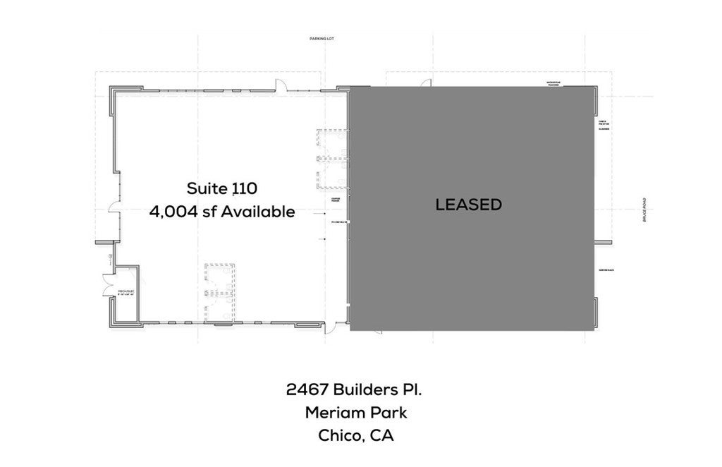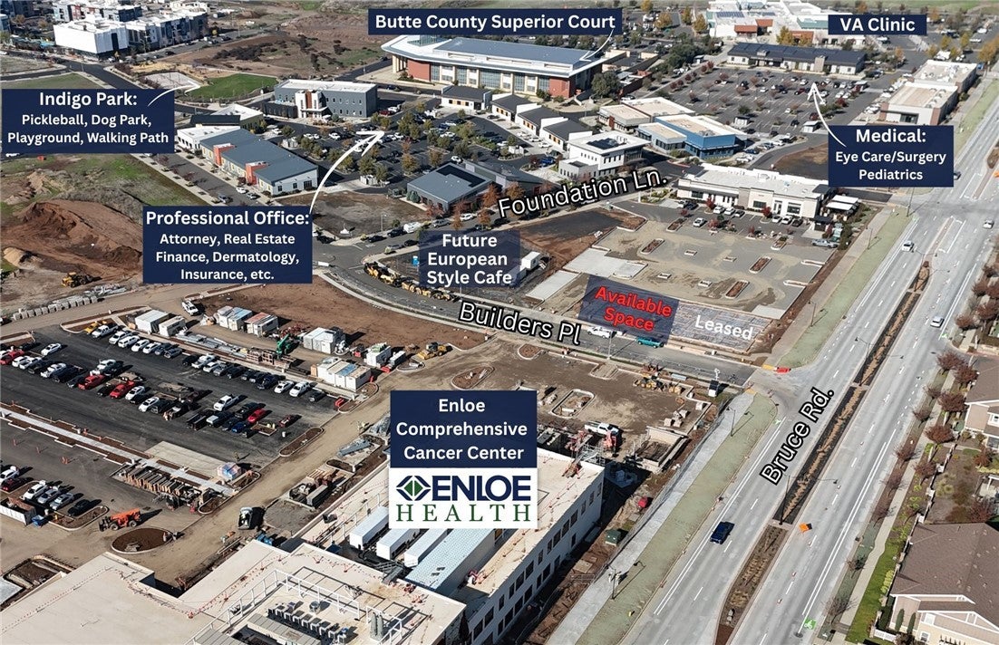 Brand New Office Space – Delivering June/July 2026. Secure 4,004 sq. ft. of premium office space in the heart of Meriam Park’s thriving commercial district. Suite 110 will be located directly next to Mid Valley Title once they move into their newly leased space. The building is also adjacent to a planned European café and highly visible from Bruce Rd., just north of the new Enloe Cancer Center opening in 2026. This one-story Class A building is currently under construction and offers excellent exposure, modern architecture, and convenient parking. Tenants who commit early can customize their interior layout, with a flexible floor plan ideal for private offices, conference rooms, or open-concept designs. Surrounded by other established businesses—including medical, financial, real estate, and more—this is an exceptional opportunity to position your company in Chico’s most dynamic master-planned community. Highlights: • New 8,000 SF building – Suite 110 is 4,004 SF • Visible from Bruce Rd. near the upcoming Enloe Cancer Center • Target delivery: June/July 2026 • Modern, high-quality construction • One-story accessibility • Strong neighboring tenant mix • Ideal for medical or professional office